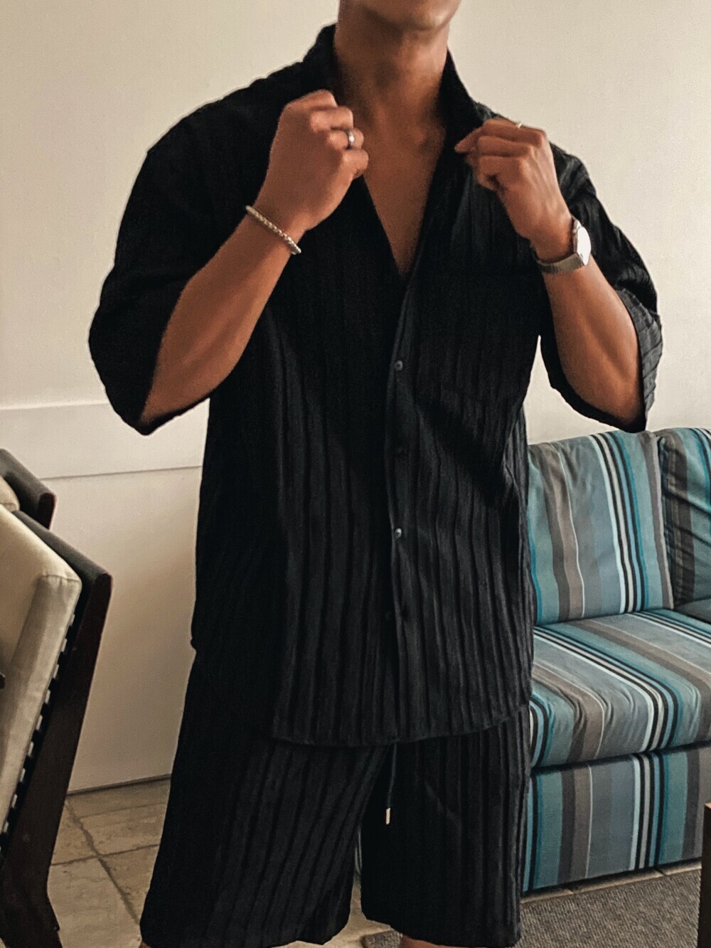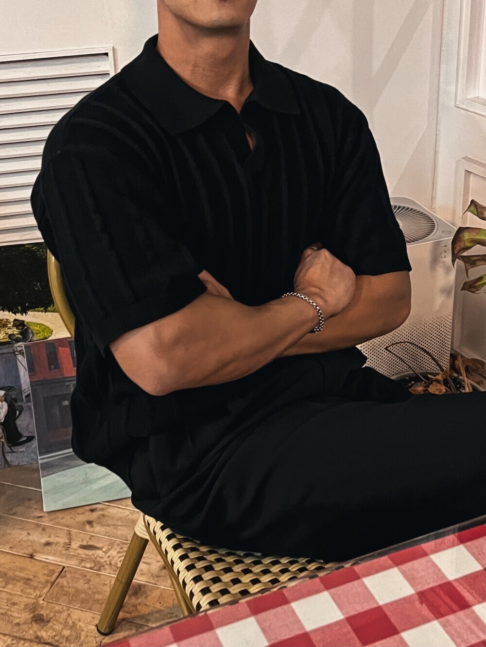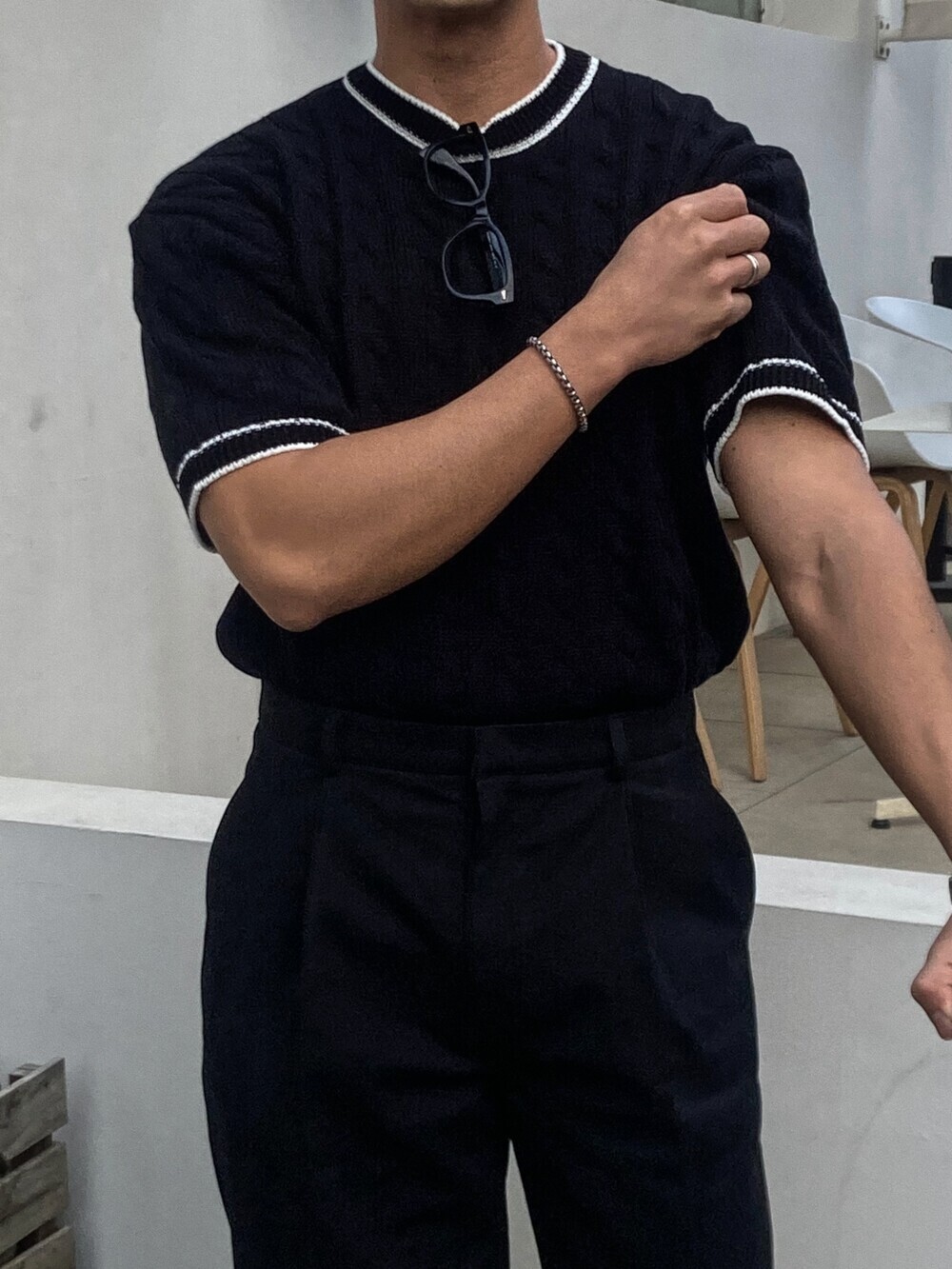 9. 로에라 플리츠 반팔 셔츠 (검정) - 19,000 won