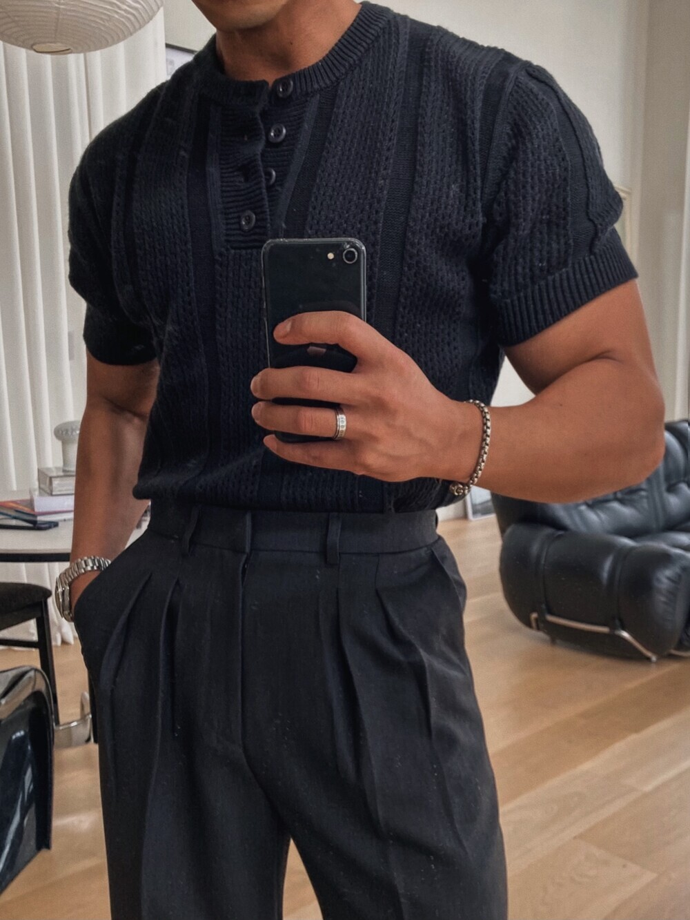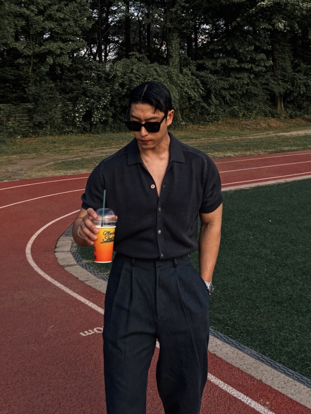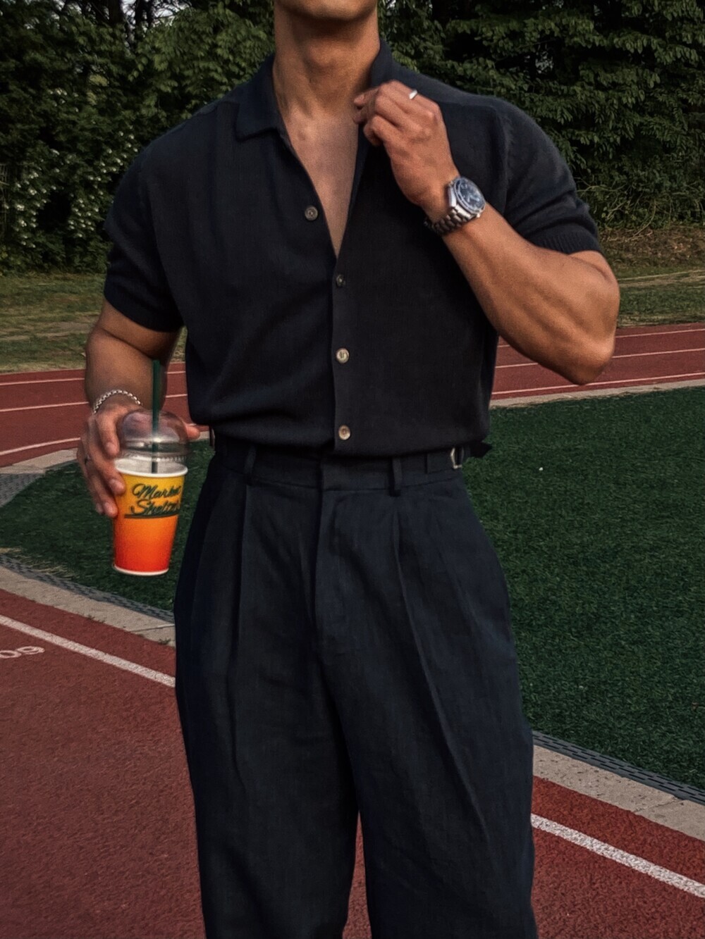 9. 로에라 플리츠 반팔 셔츠 (검정) - 19,000 won