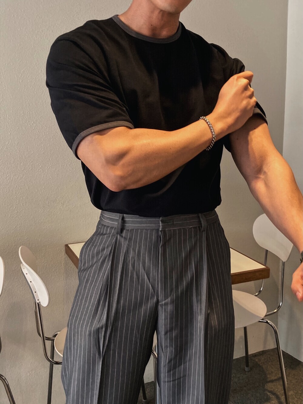 70. 유스 스트라이프 비조 슬랙스 (차콜) - 25,000 won