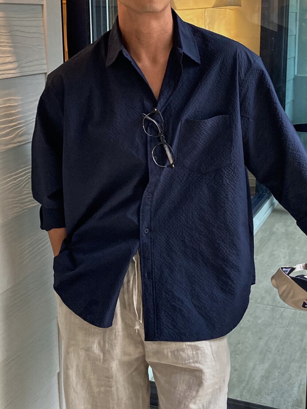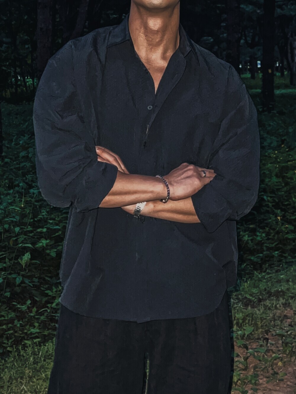 15. 모글 시어서커 셔츠 (아이보리,네이비,검정) - 29,000 won