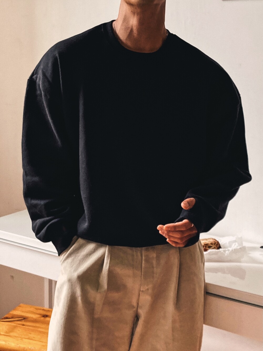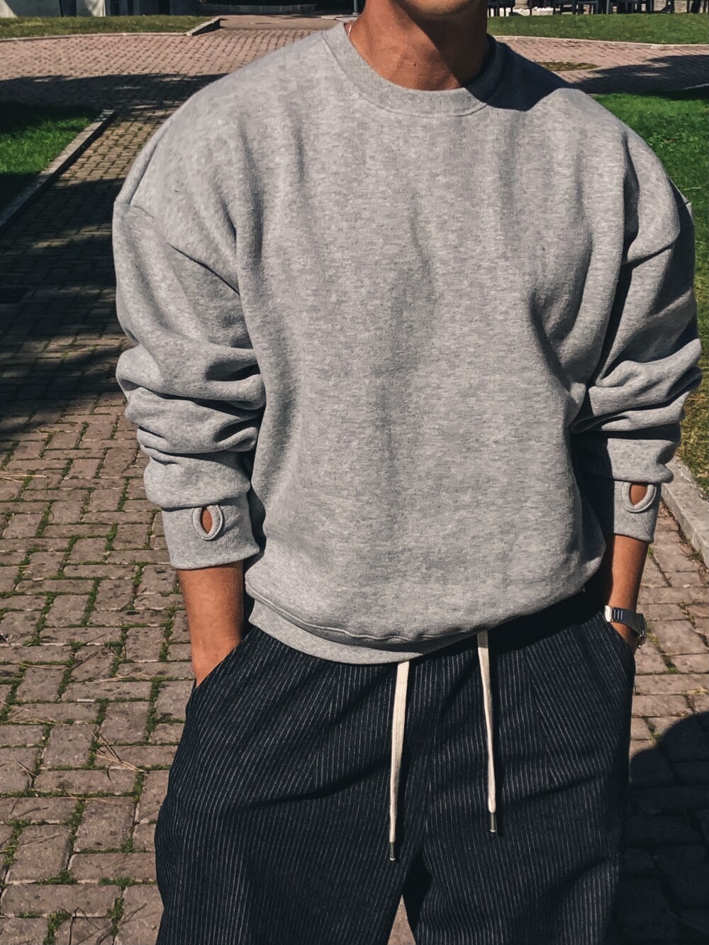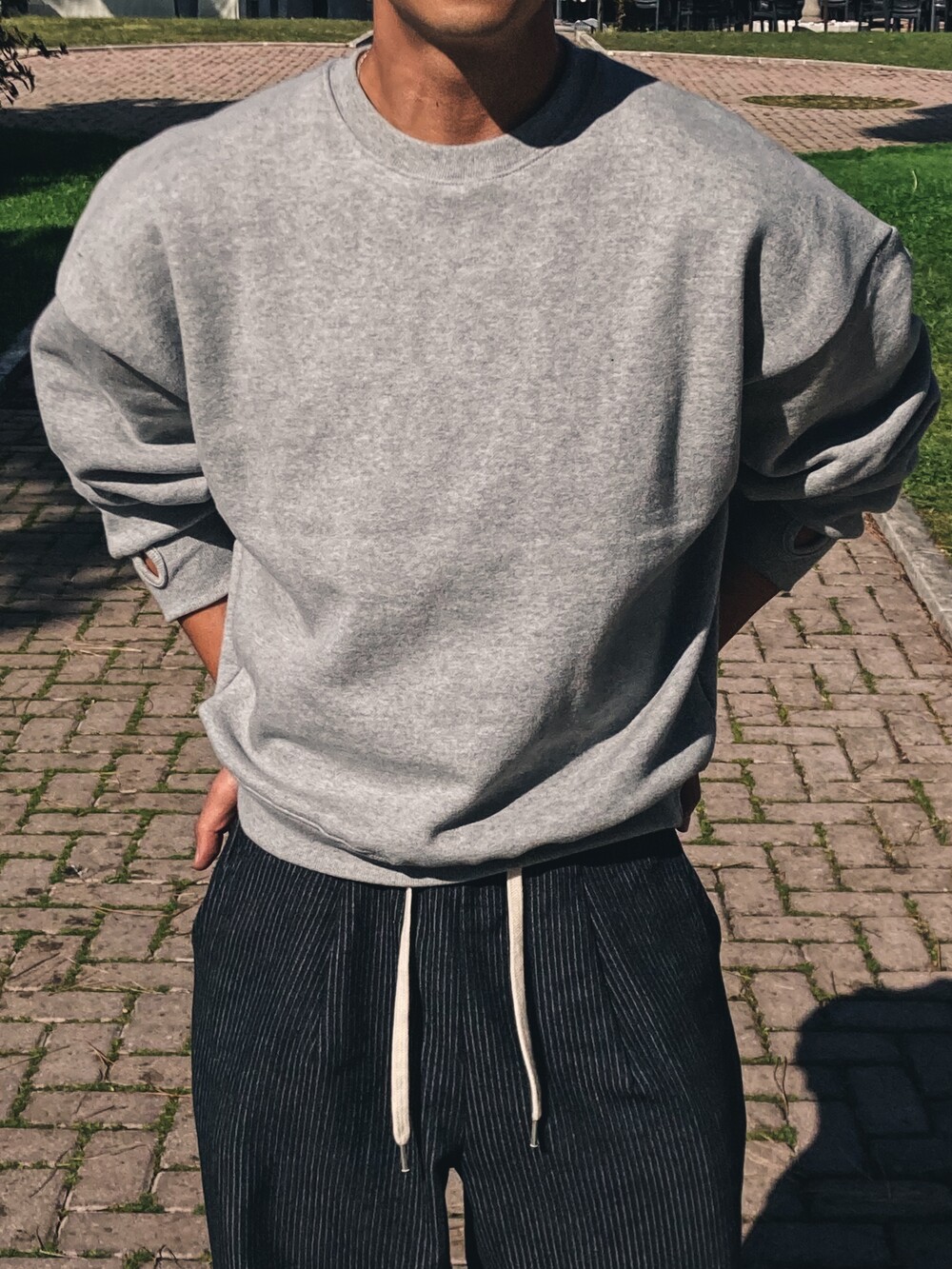- 크롭 기장의 오버핏 맨투맨