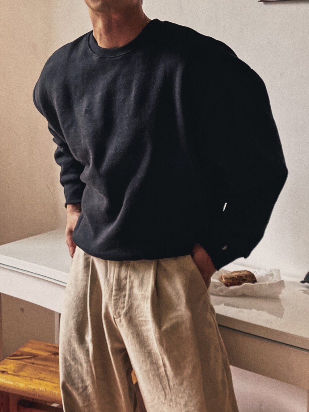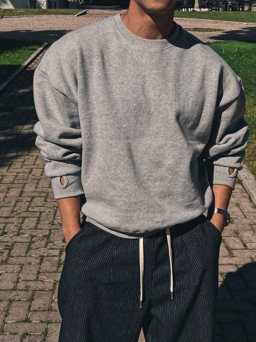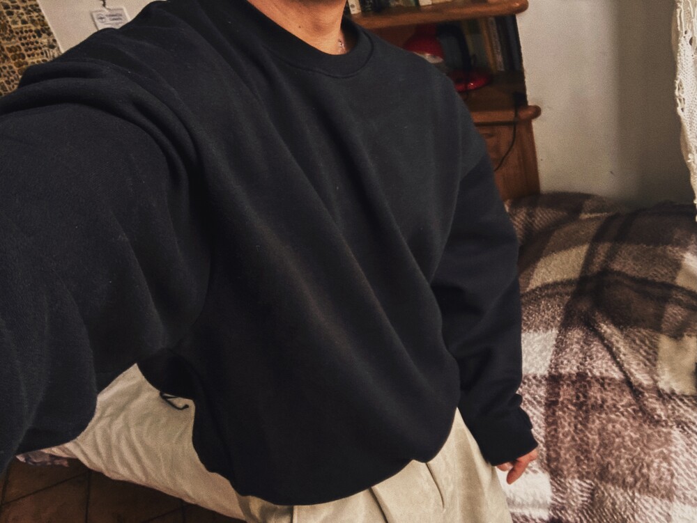 - 크롭 기장의 오버핏 맨투맨