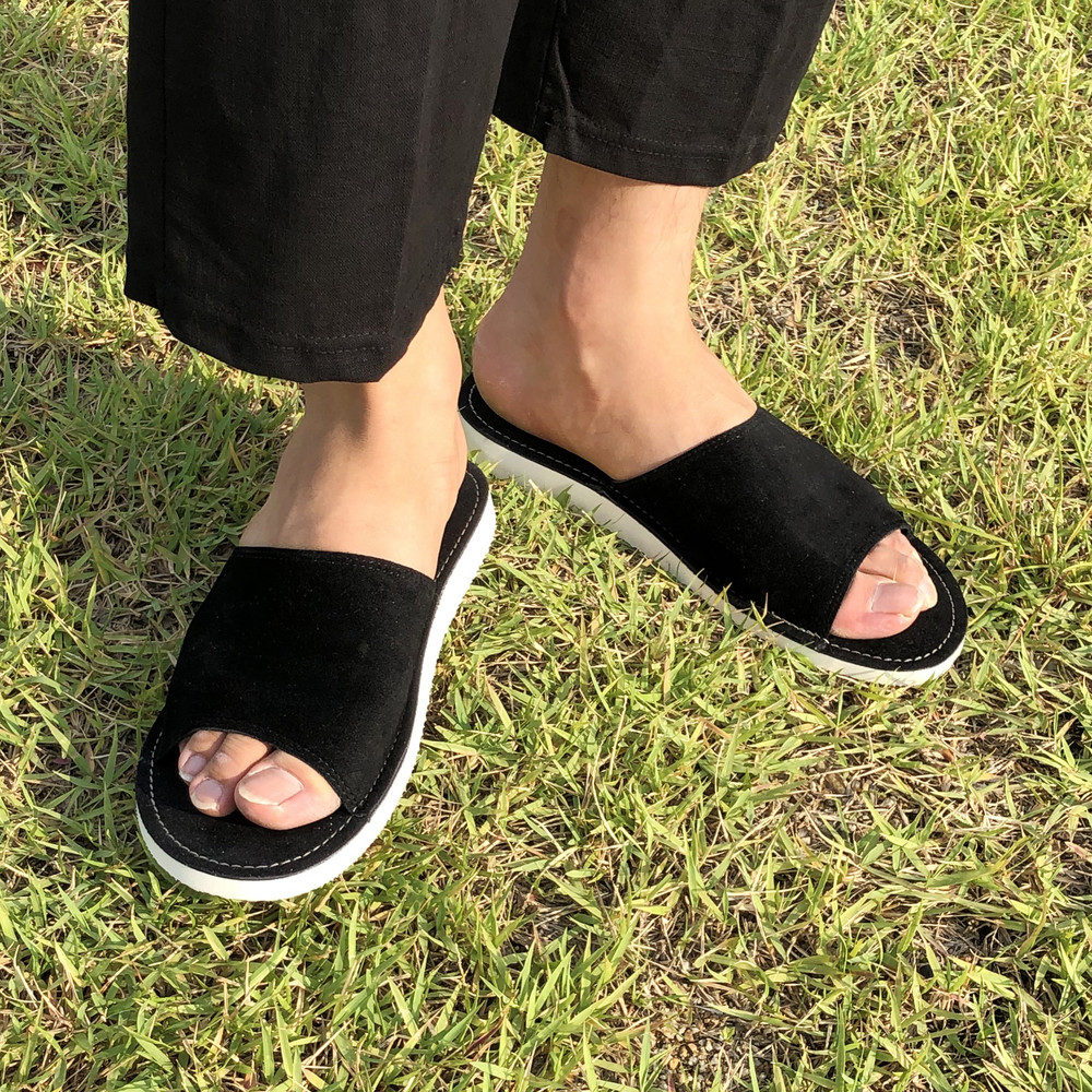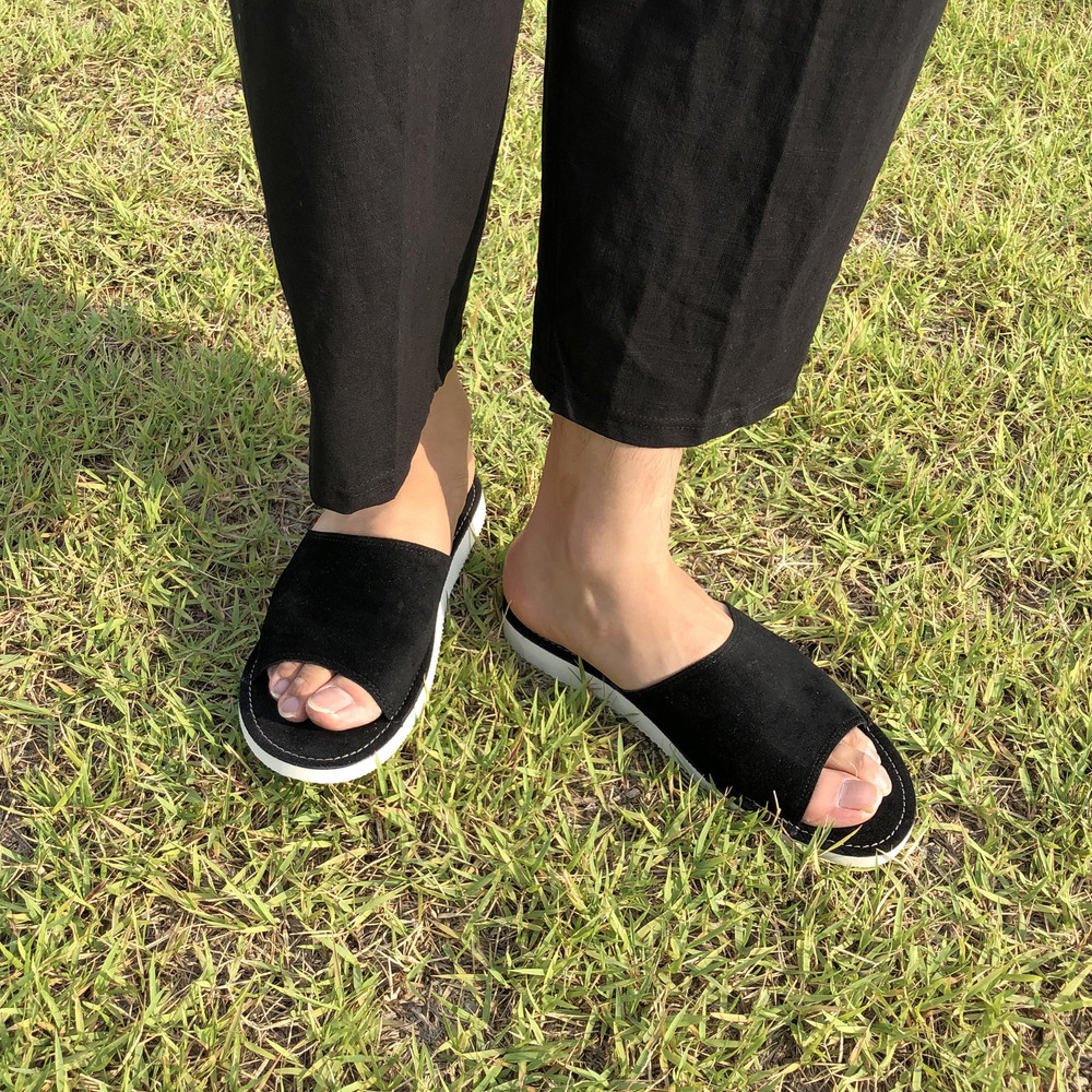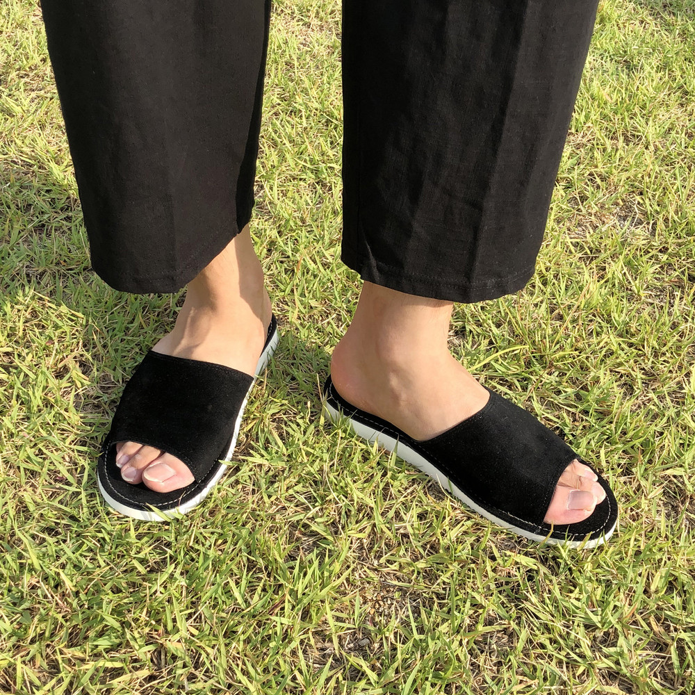 마감라인이 너무 예뻐서 검정색 슬리퍼임에도 포인트가 너무 잘 살아있는 슬리퍼에요