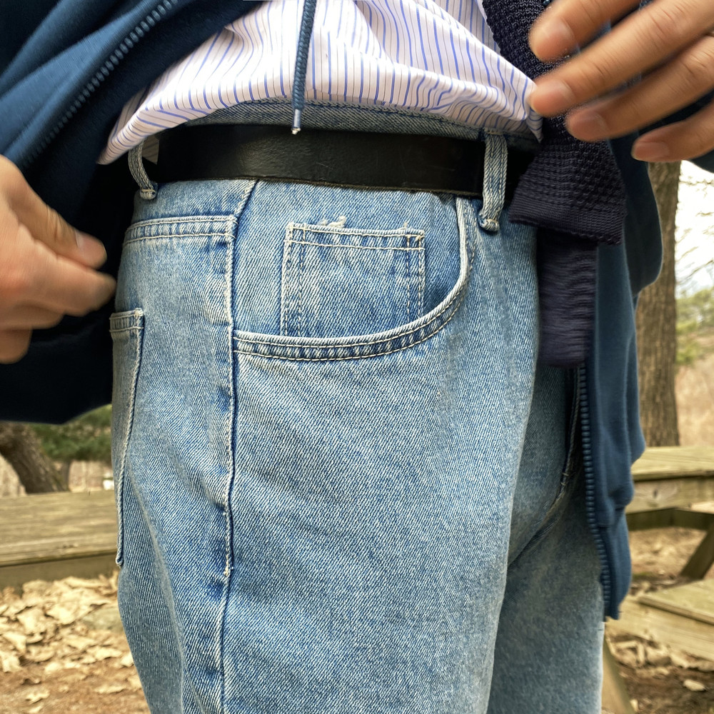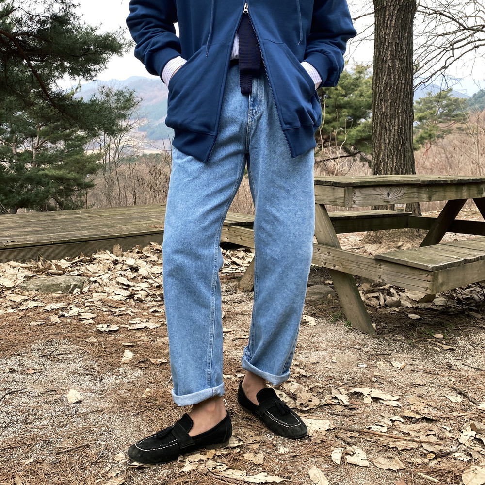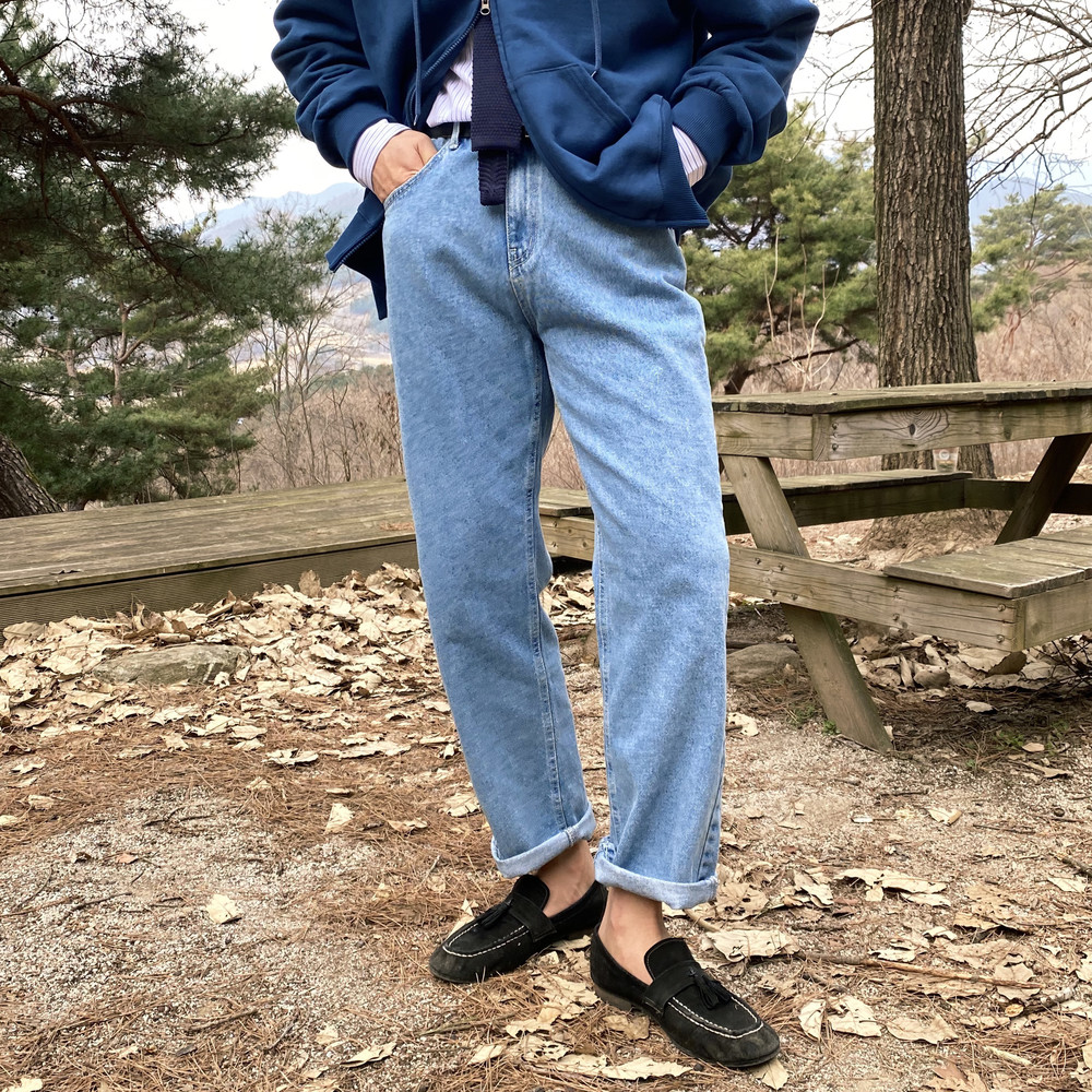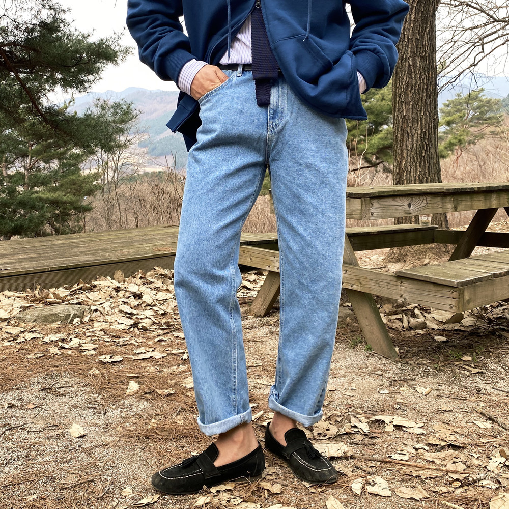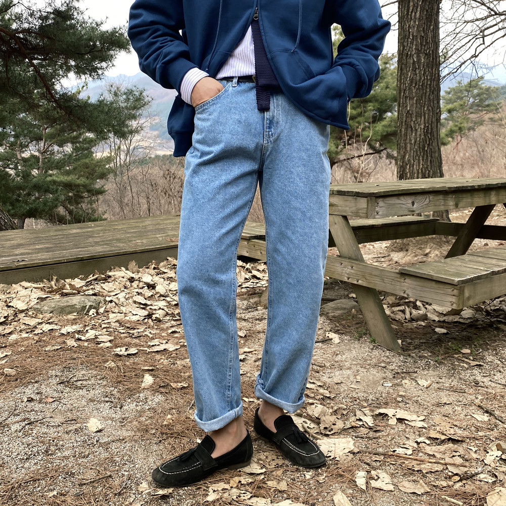 연청컬러 일자로 예쁘게 떨어지는 핏의 데님팬츠입니다