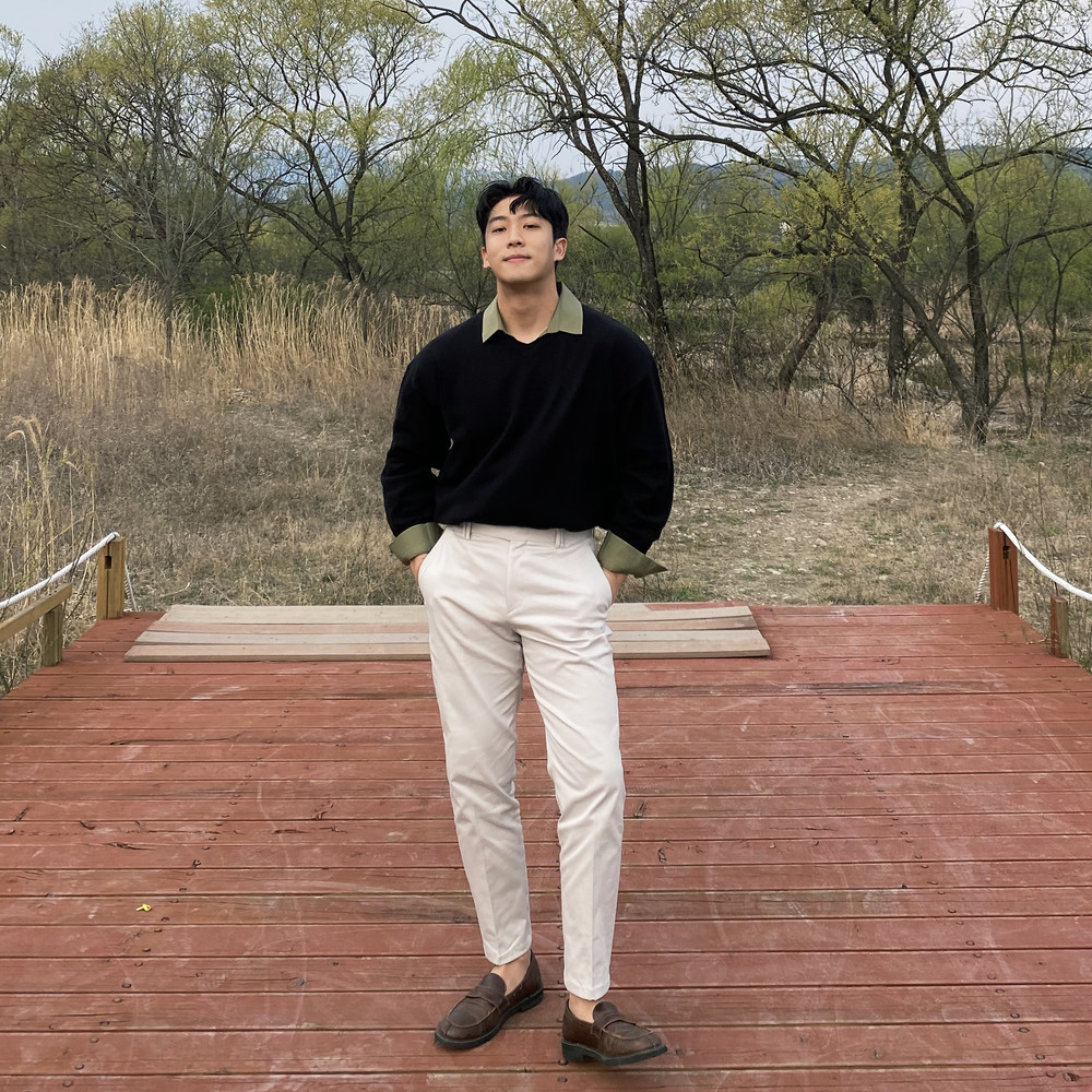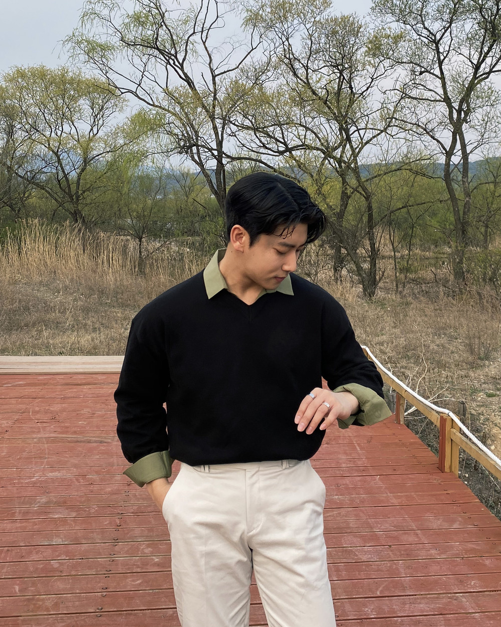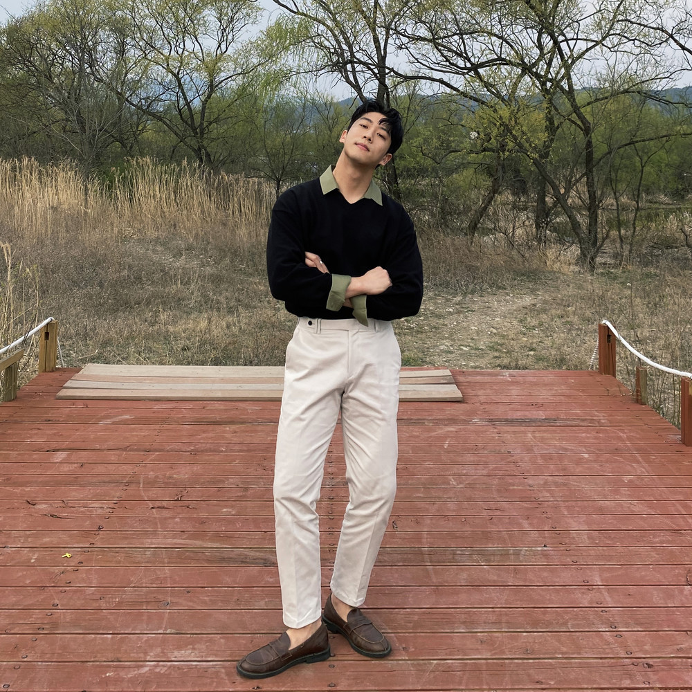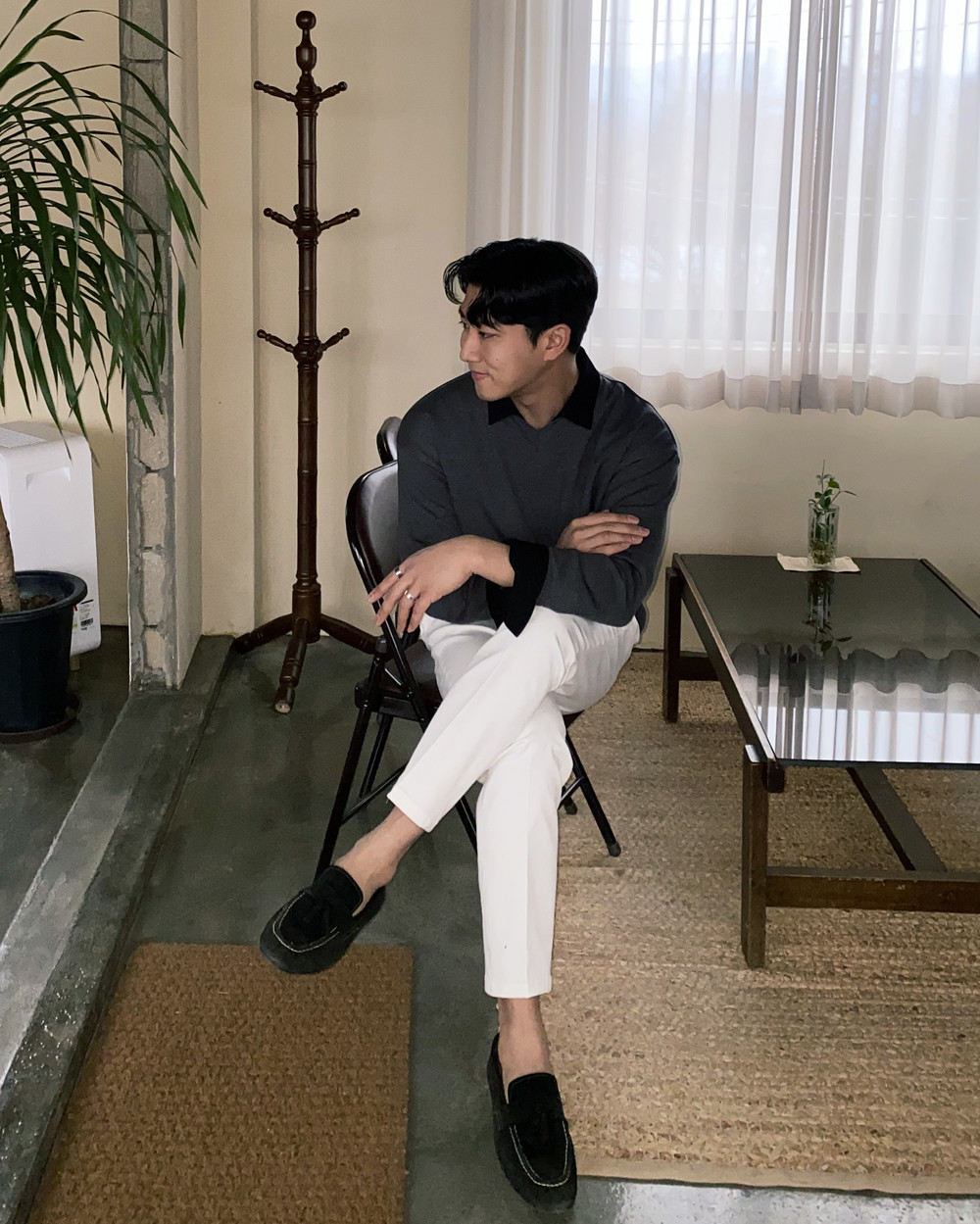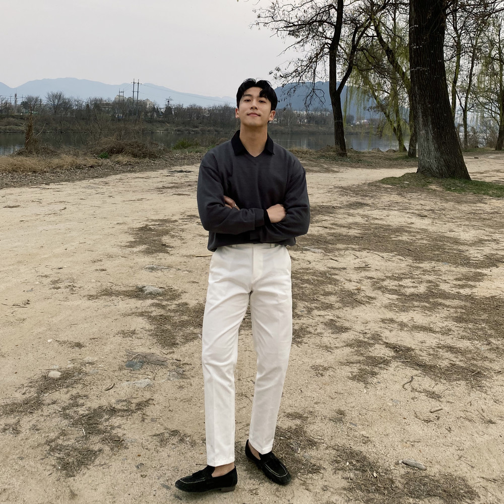 LIGHT GREY (함께 착용한 제품은 애즈V넥셔츠, 해겔 브이넥 니트 입니다)