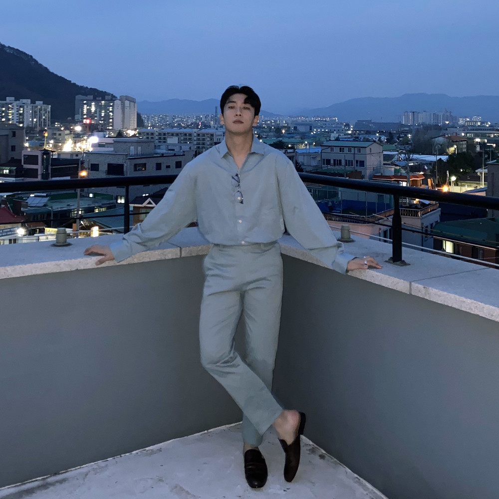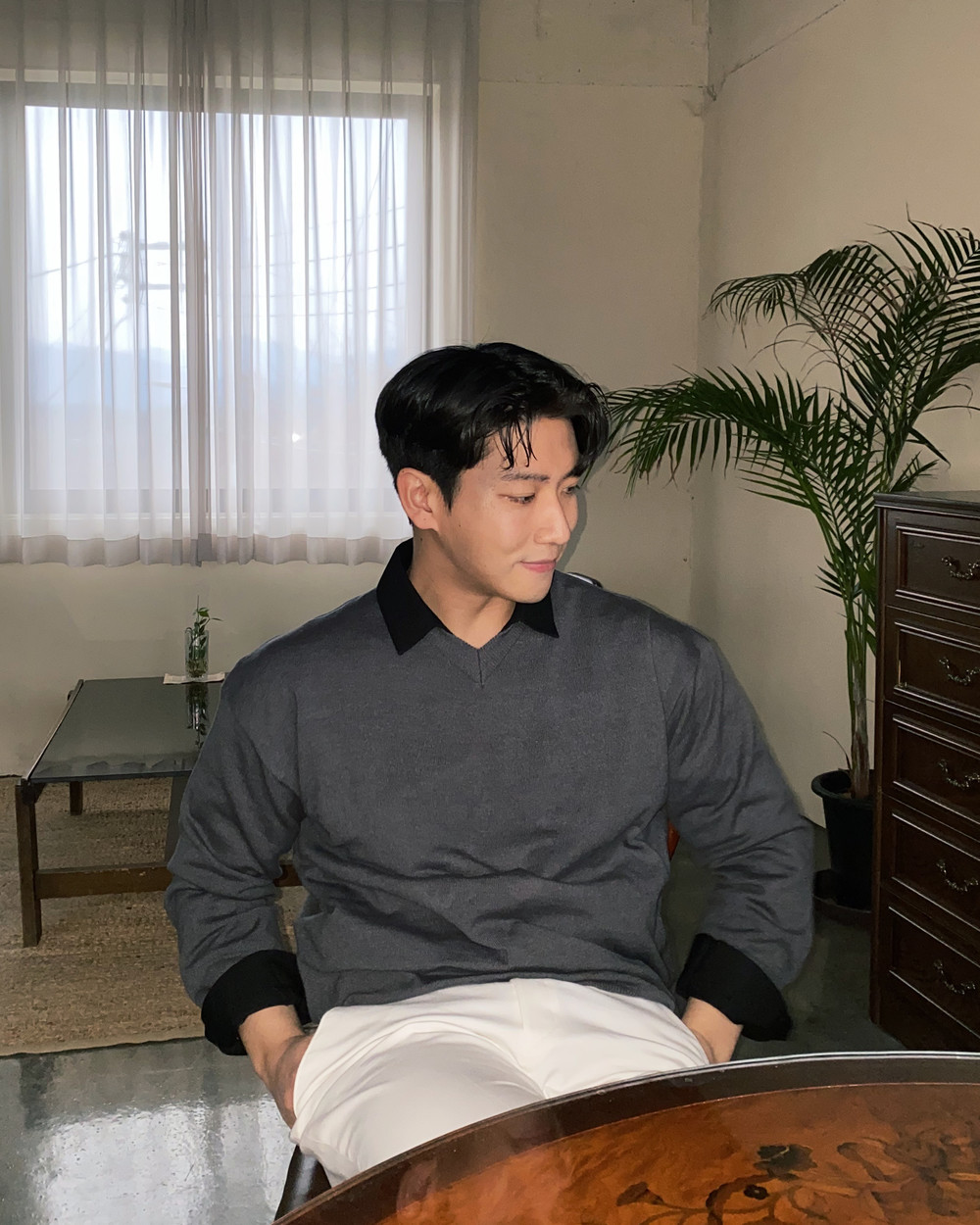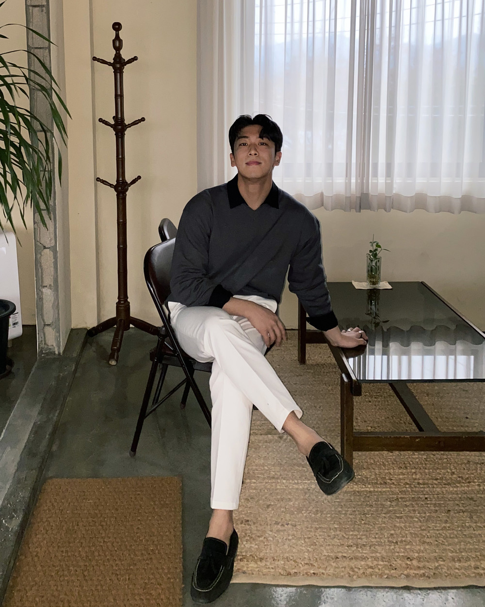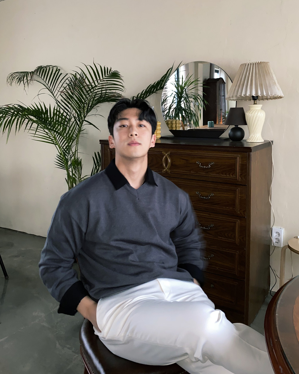LIGHT GREY (함께 착용한 제품은 애즈V넥셔츠, 해겔 브이넥 니트 입니다)