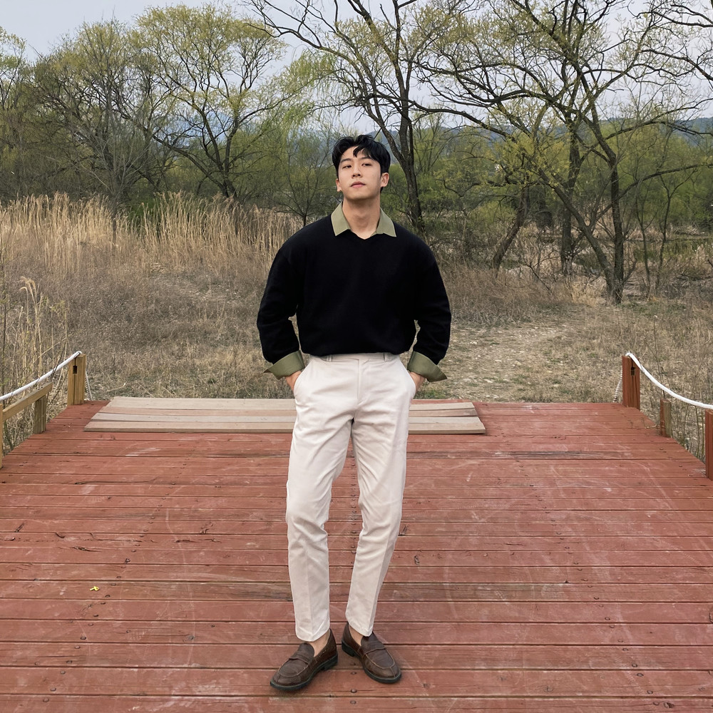 WHITE (함께 착용한 제품은 애즈V넥셔츠, 해겔 브이넥 니트 입니다)