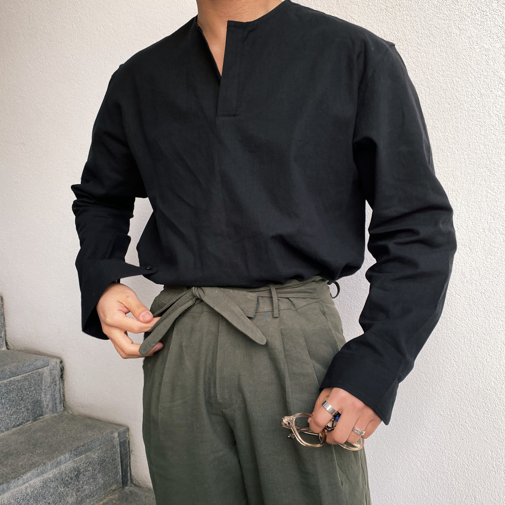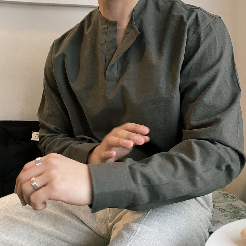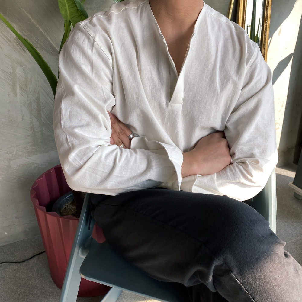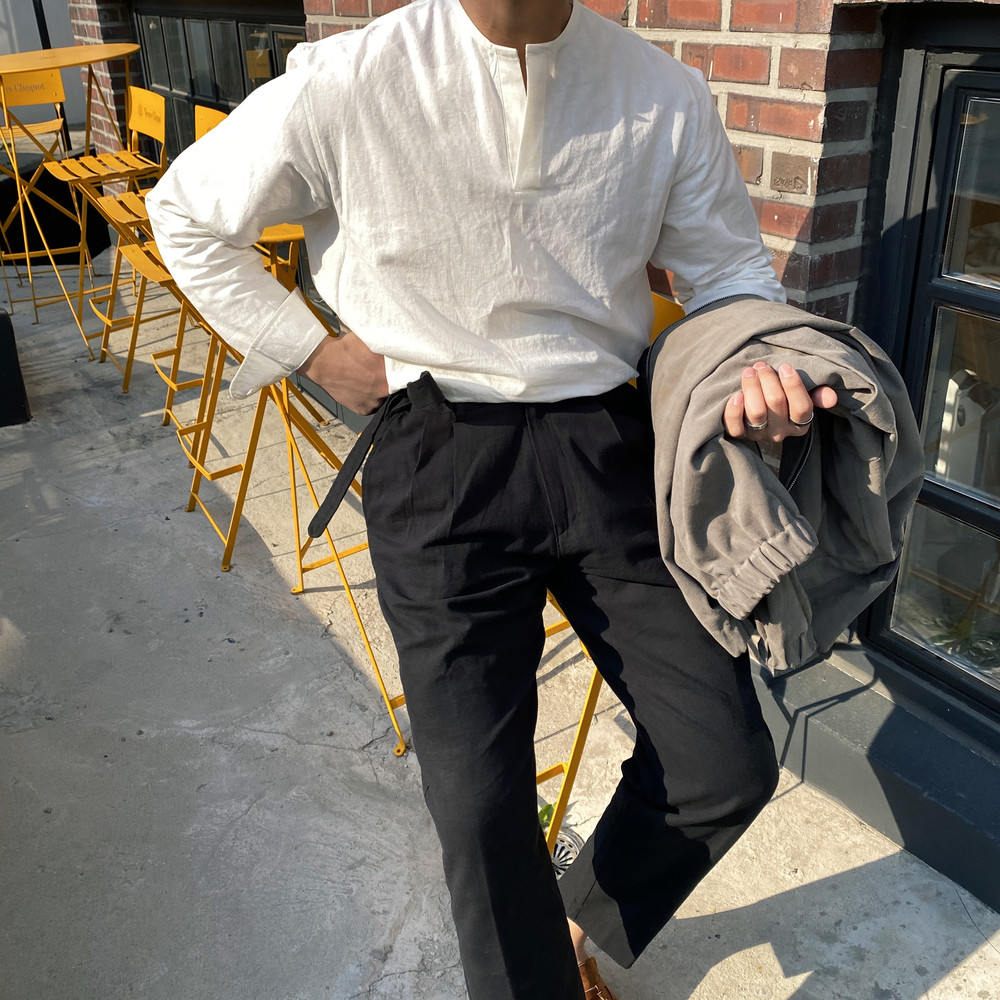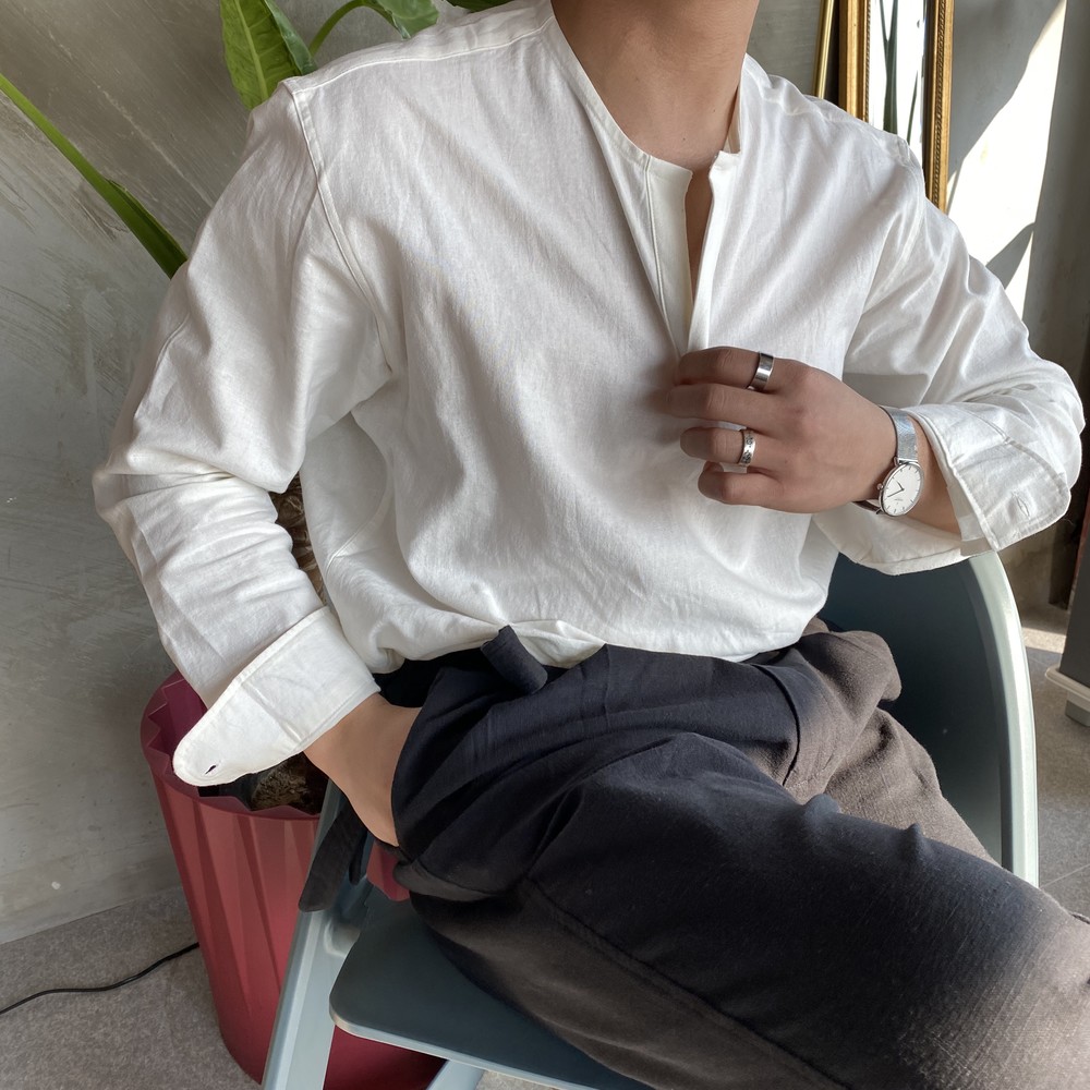 수트안에 입으셔도, 하나만 입으셔도 클래식과 캐주얼을 모두 깔끔하게 소화시킬 수 있는 린넨 소재의 오픈형 셔츠입니다