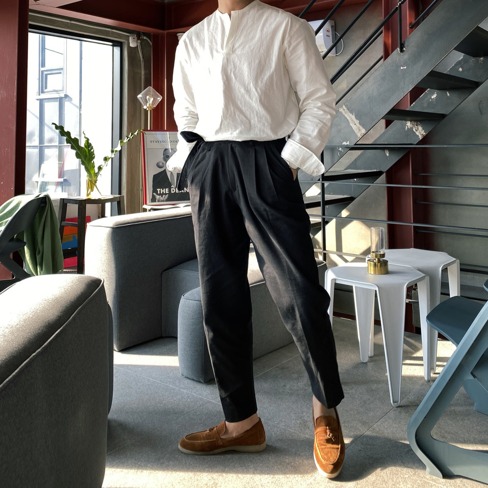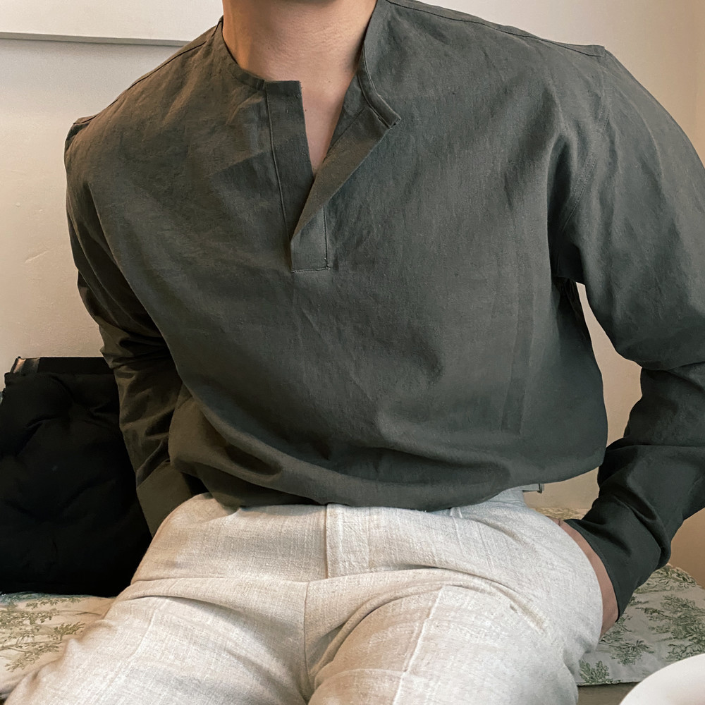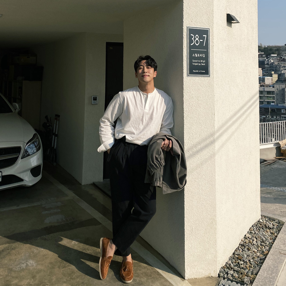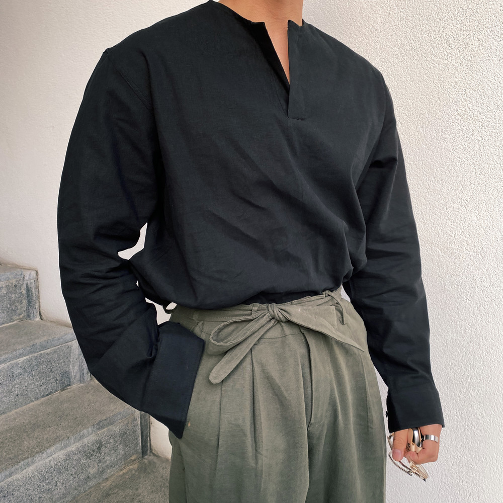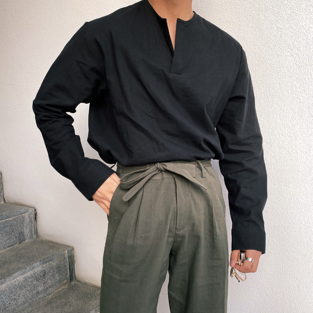 수트안에 입으셔도, 하나만 입으셔도 클래식과 캐주얼을 모두 깔끔하게 소화시킬 수 있는 린넨 소재의 오픈형 셔츠입니다