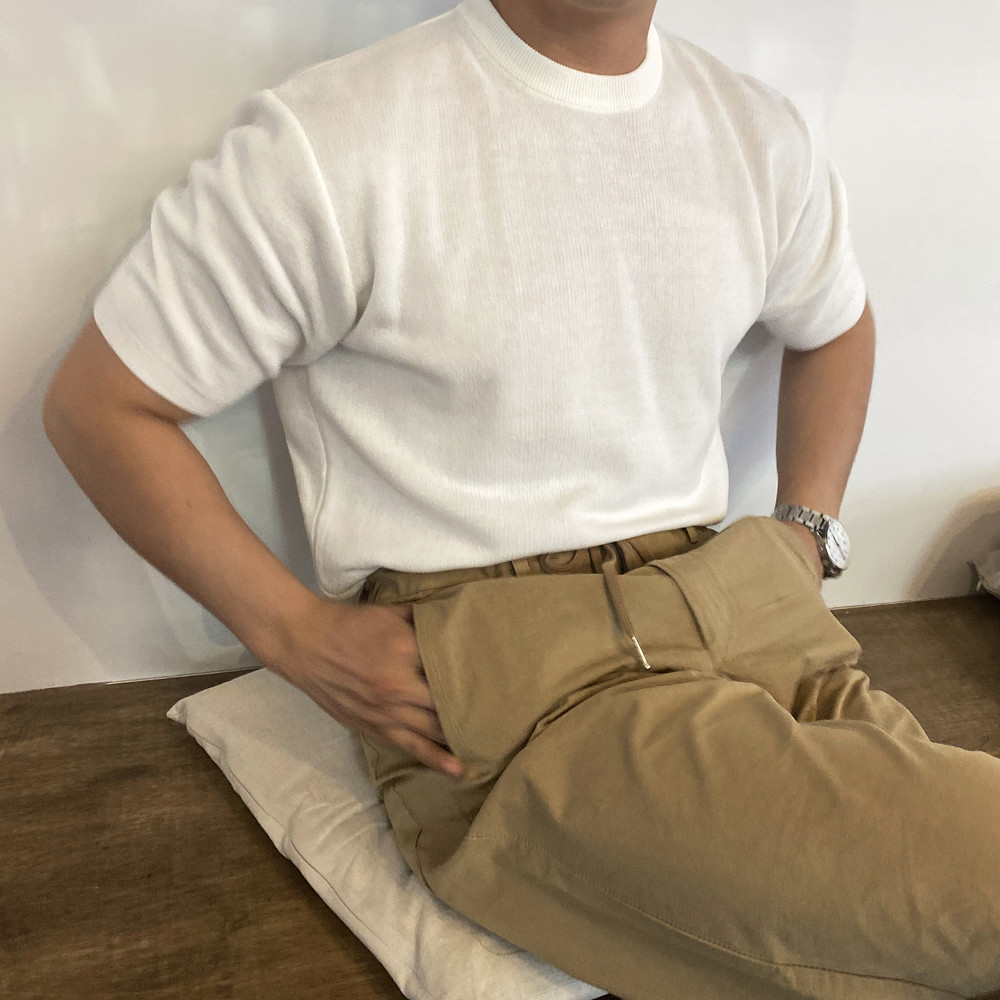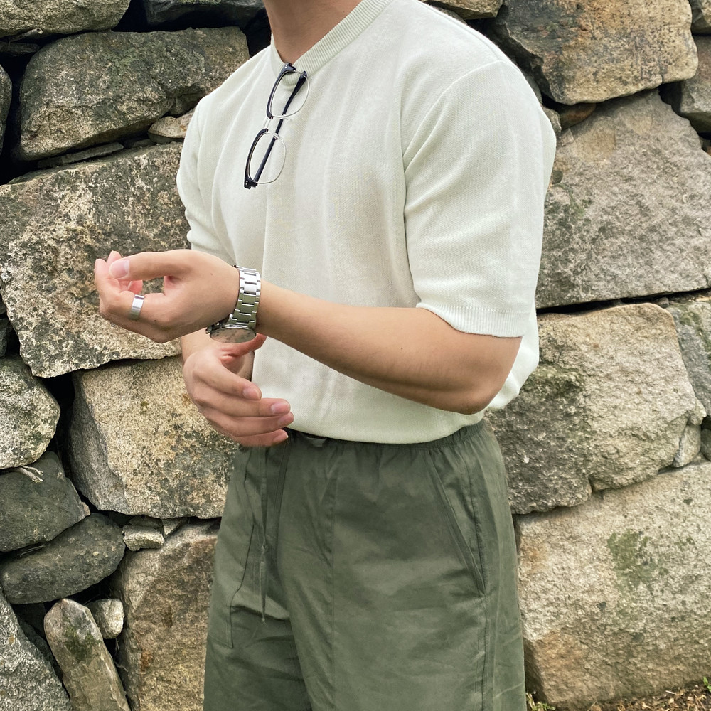 맨살에 입어도 전혀 무리 없는 부드러운 터치감이 너무 좋은 반팔니트에요
