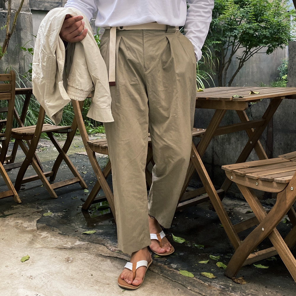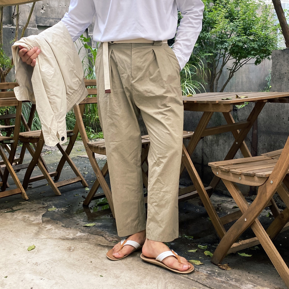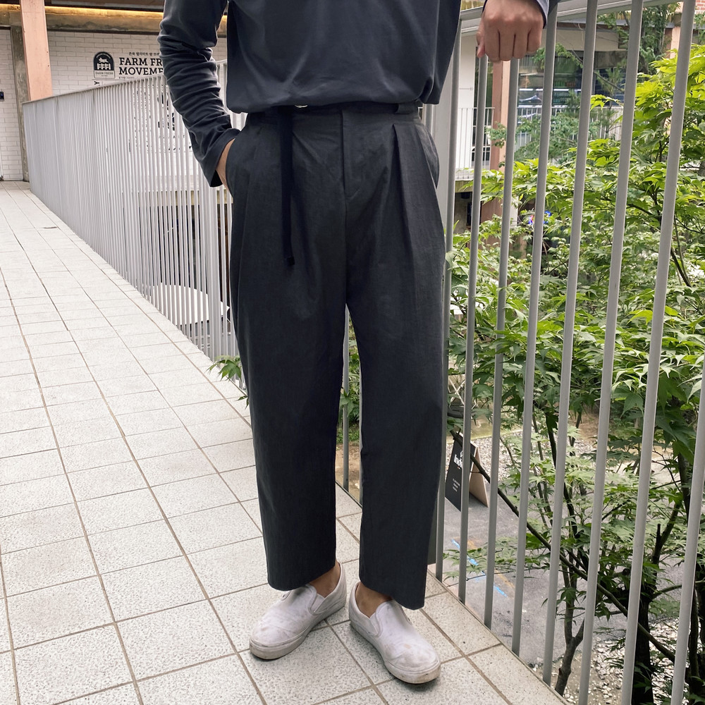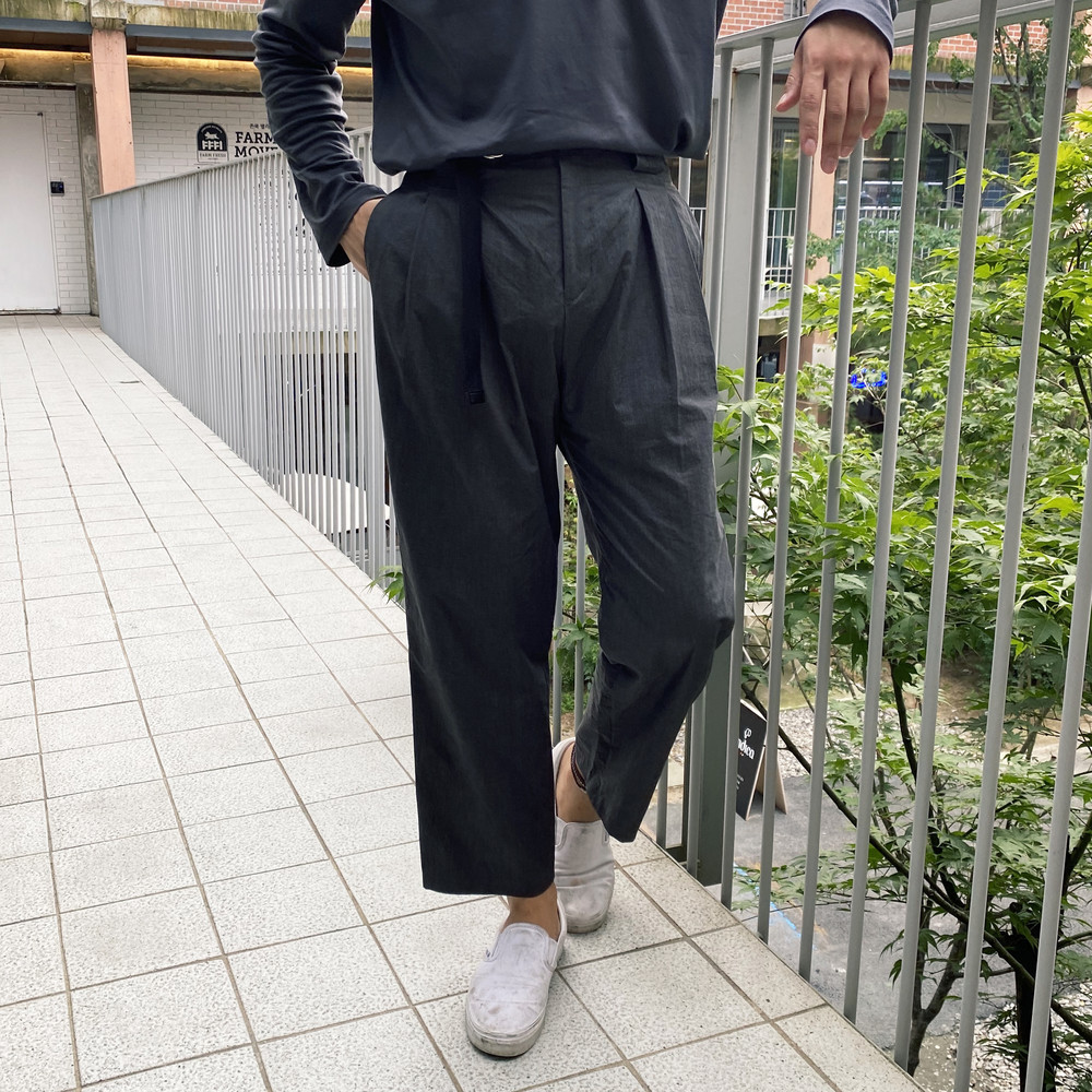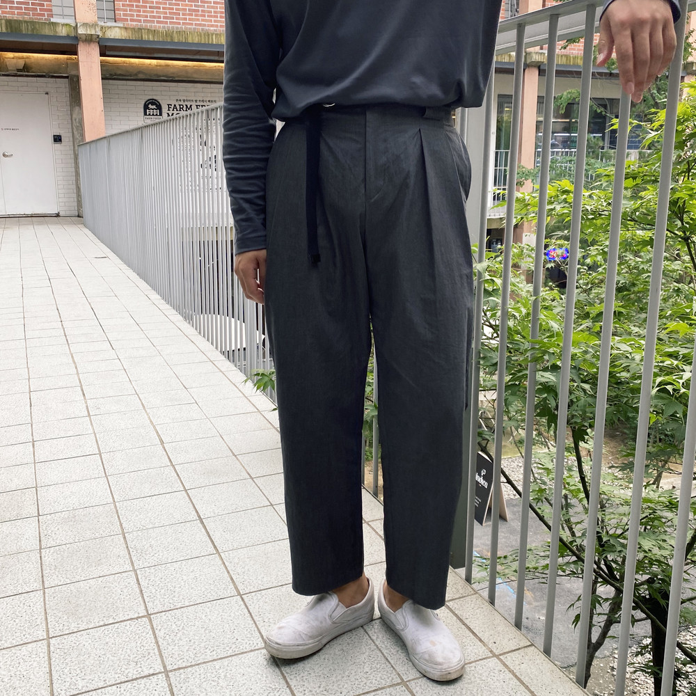 벨트로 허리 사이즈를 조절할 수 있는 크롭기장의 와이드PT 에요