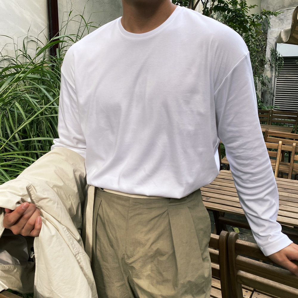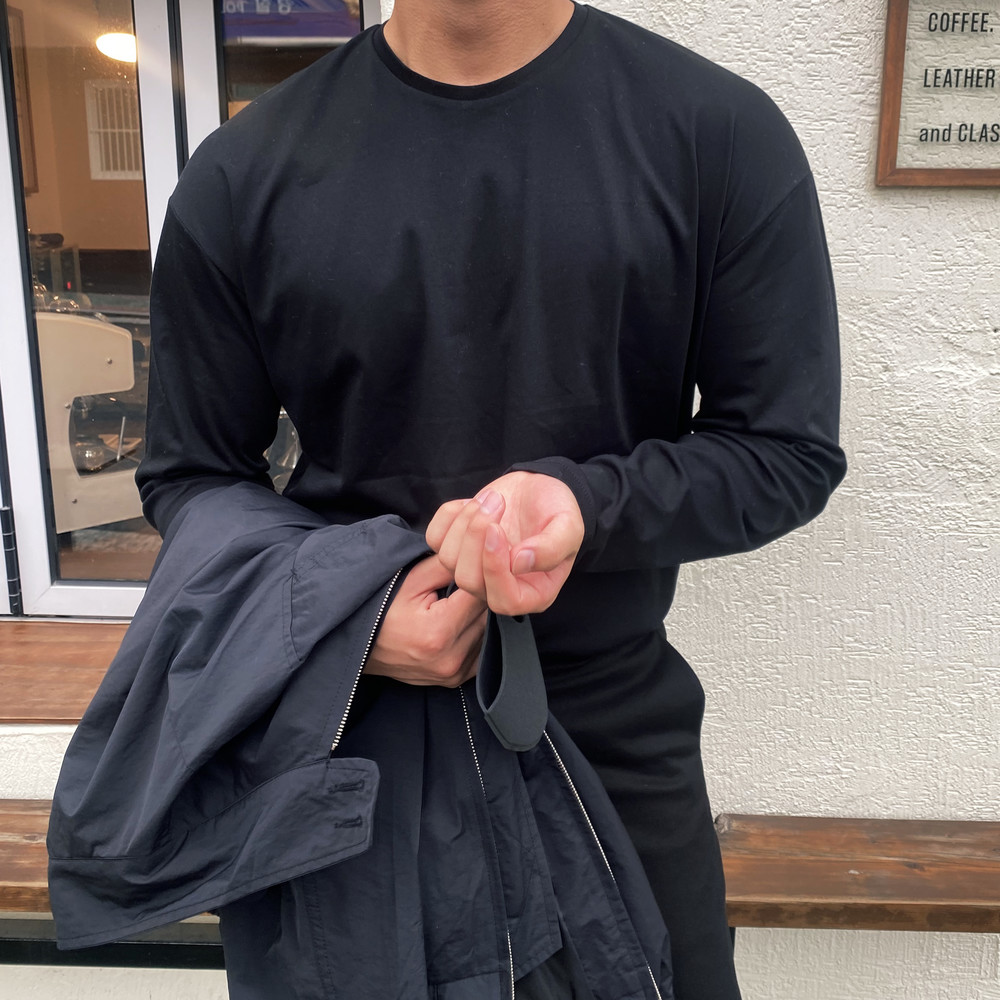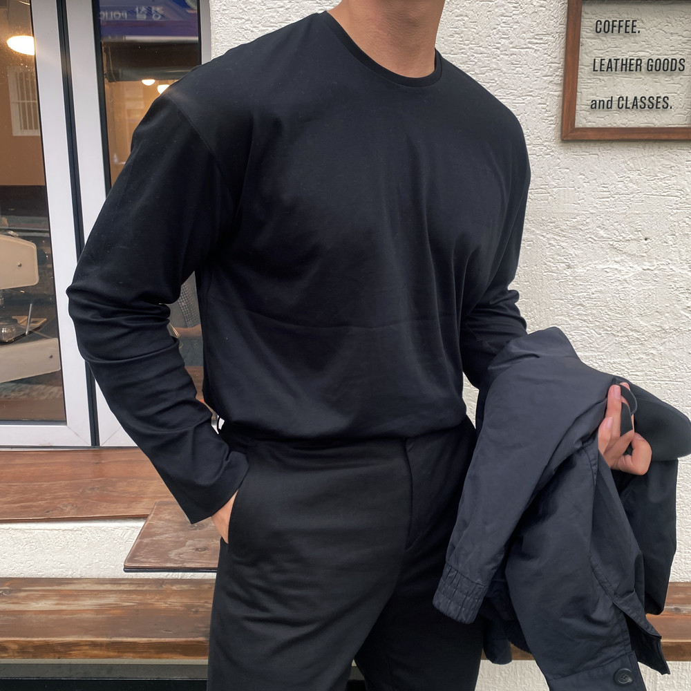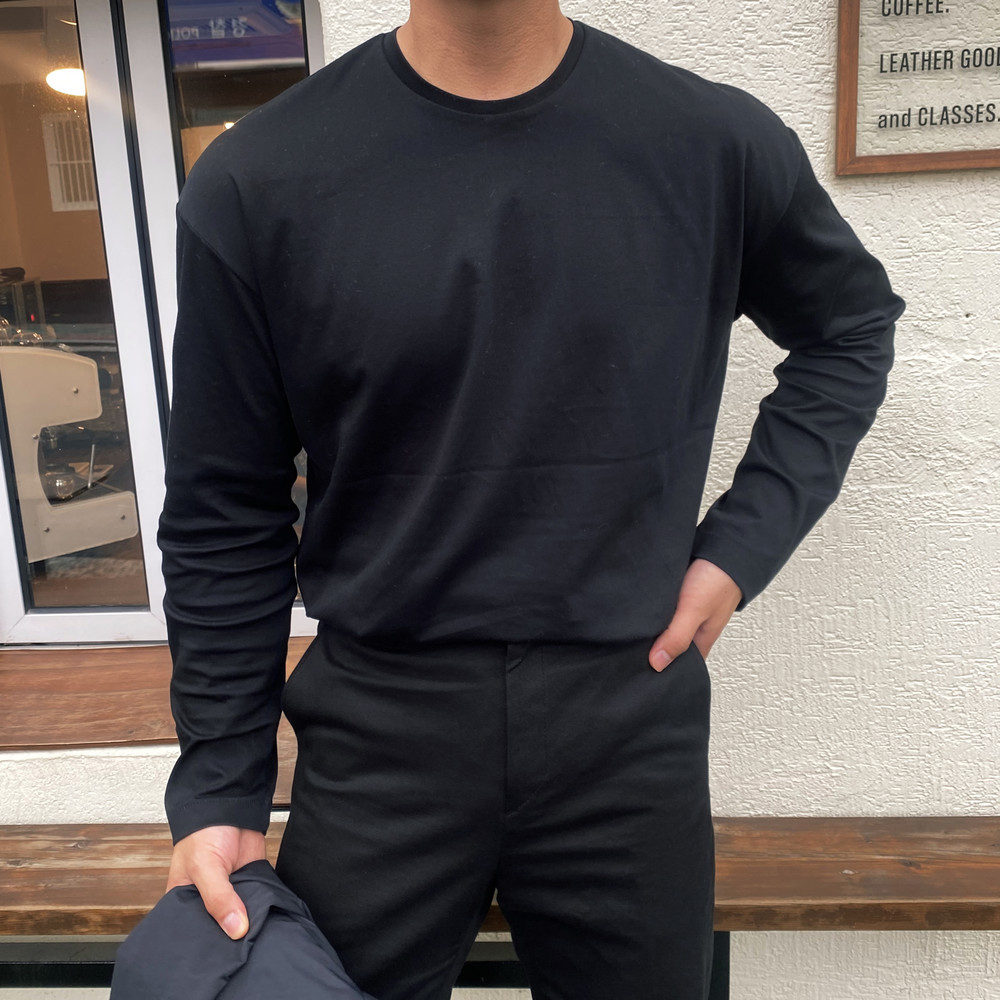 실크면 같은 부드러운 터치감의 면 원단 실켓 긴팔티 입니다