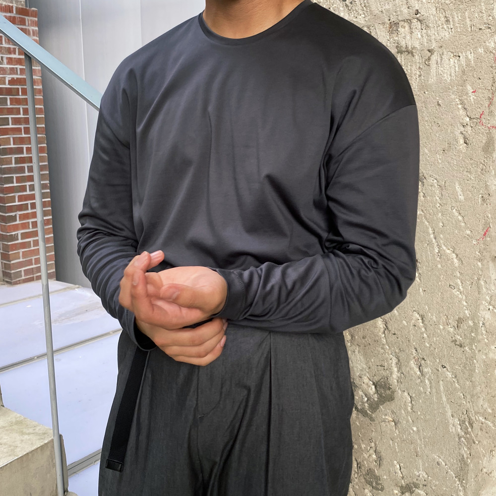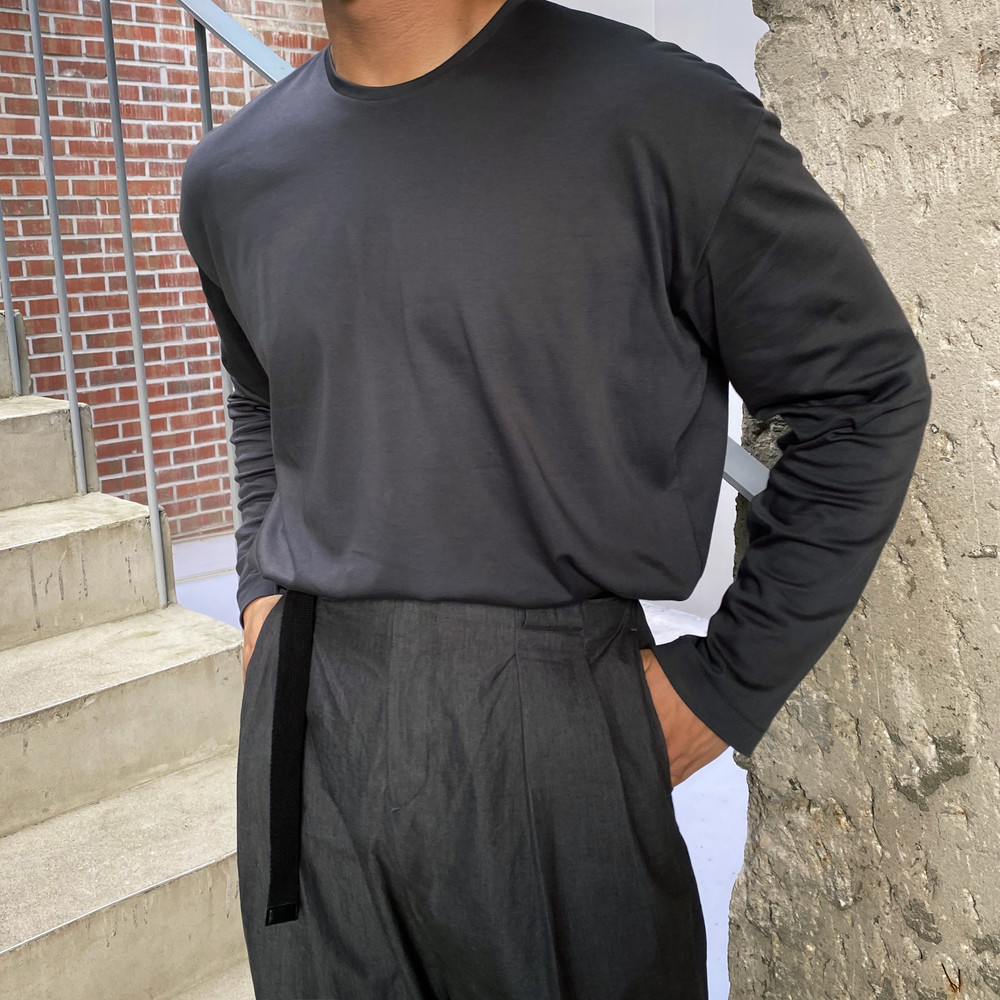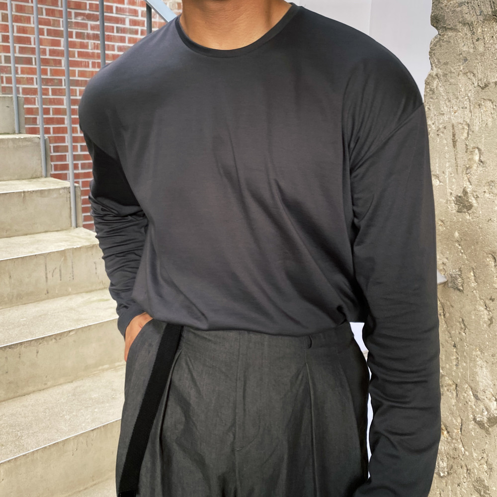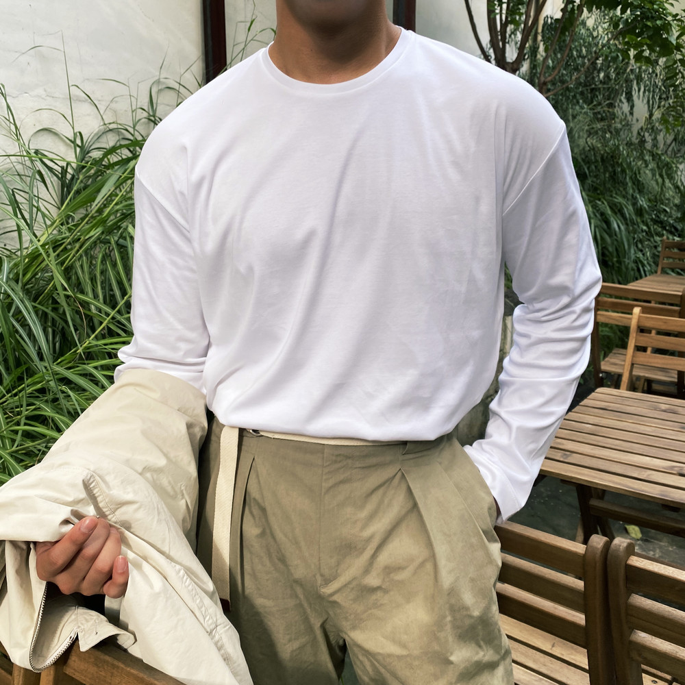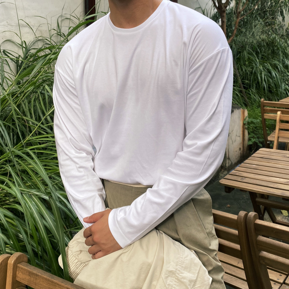 실크면 같은 부드러운 터치감의 면 원단 실켓 긴팔티 입니다