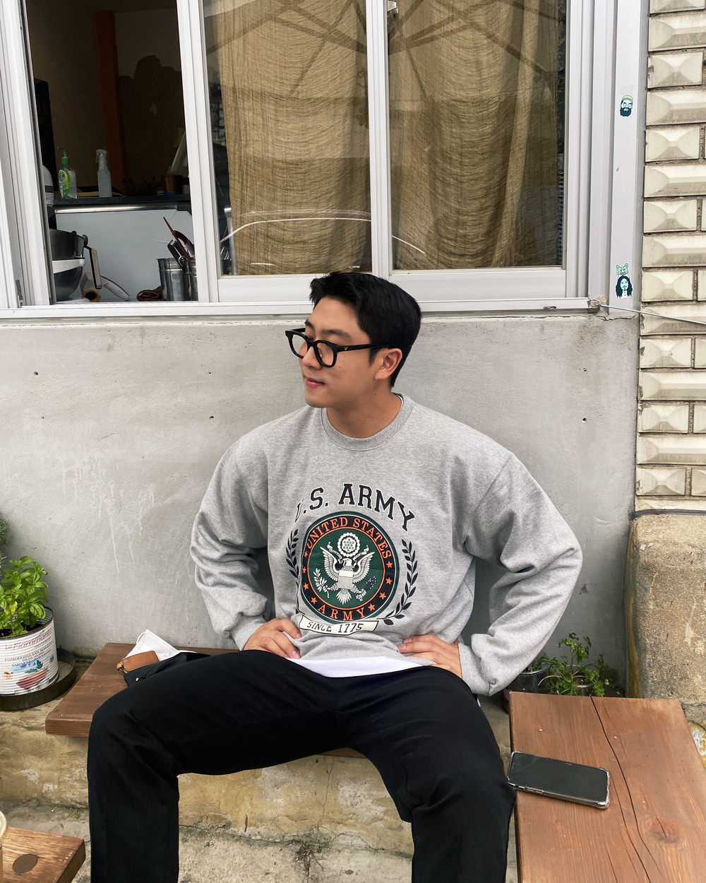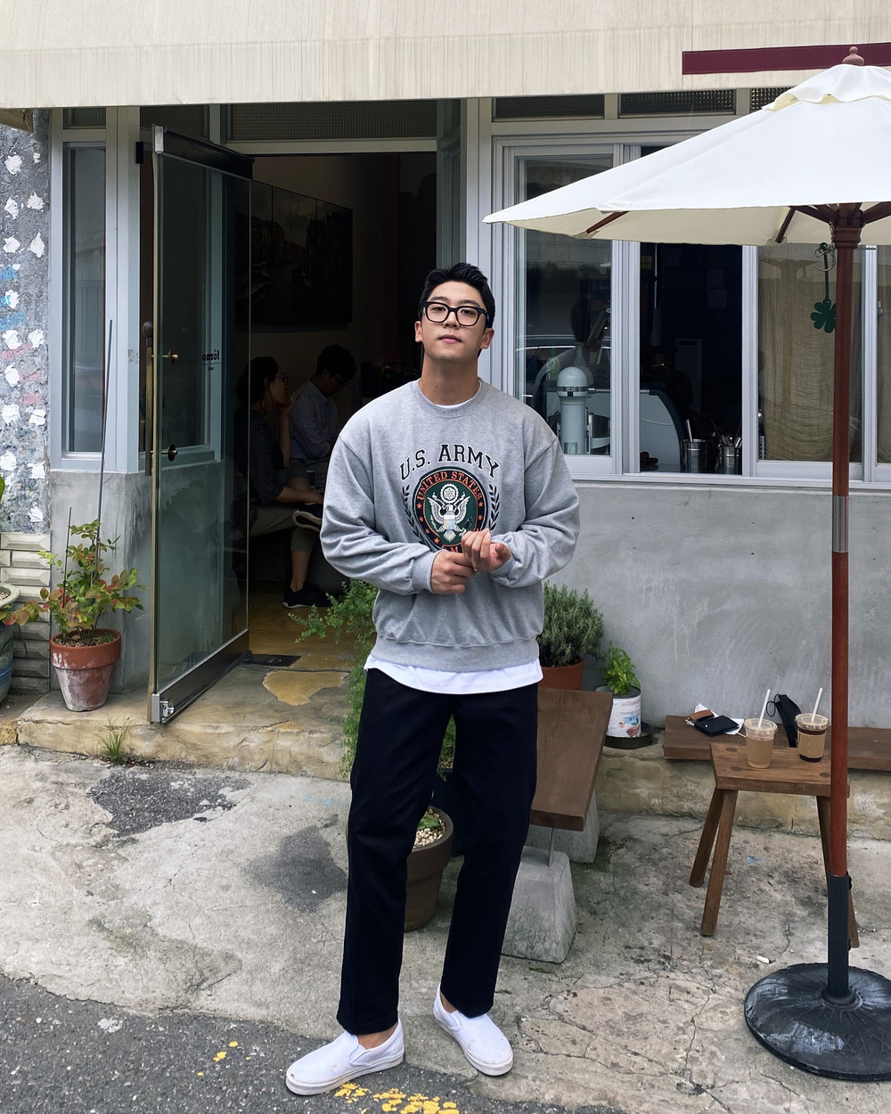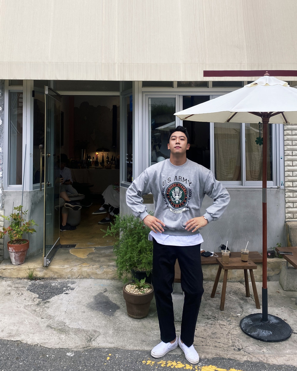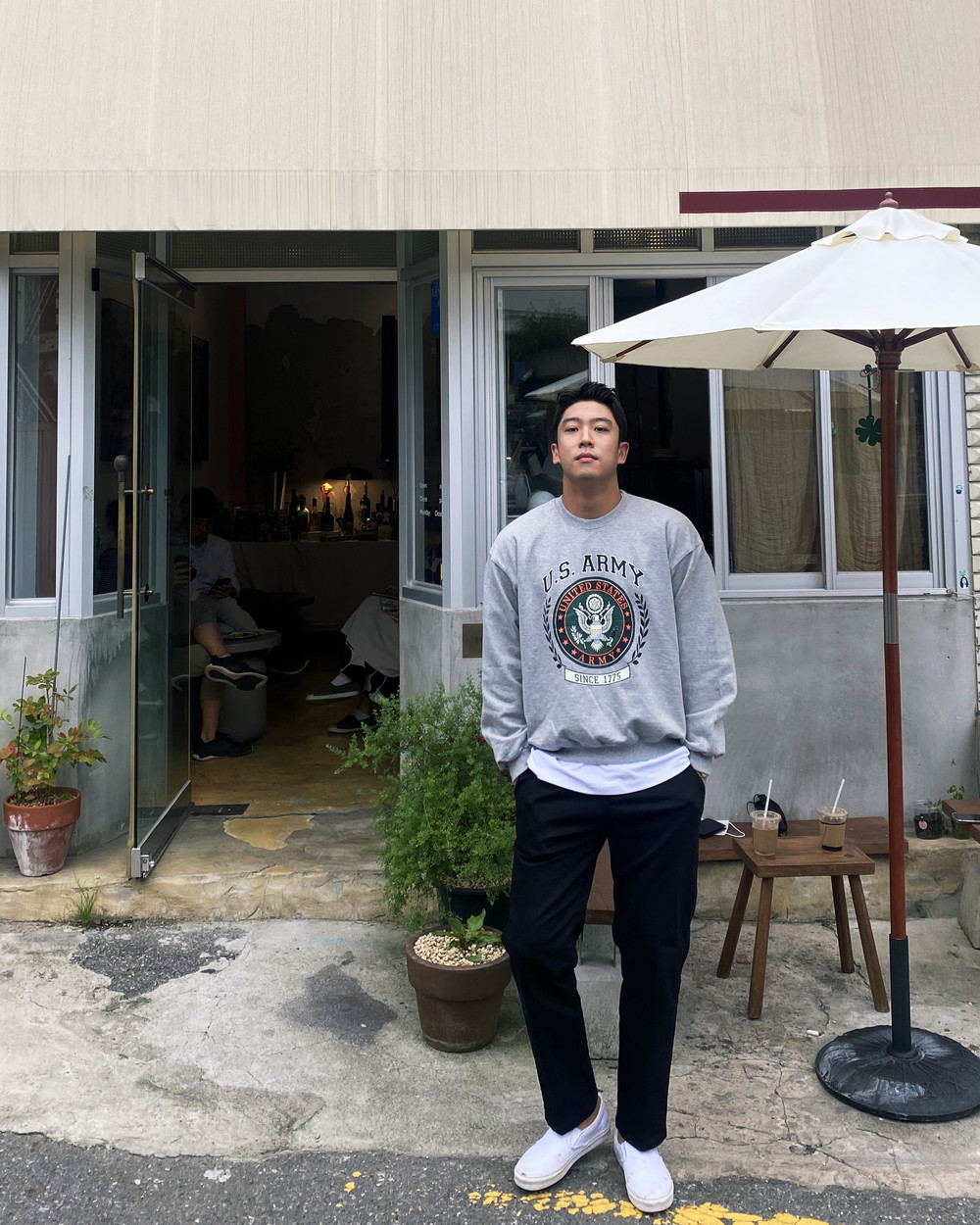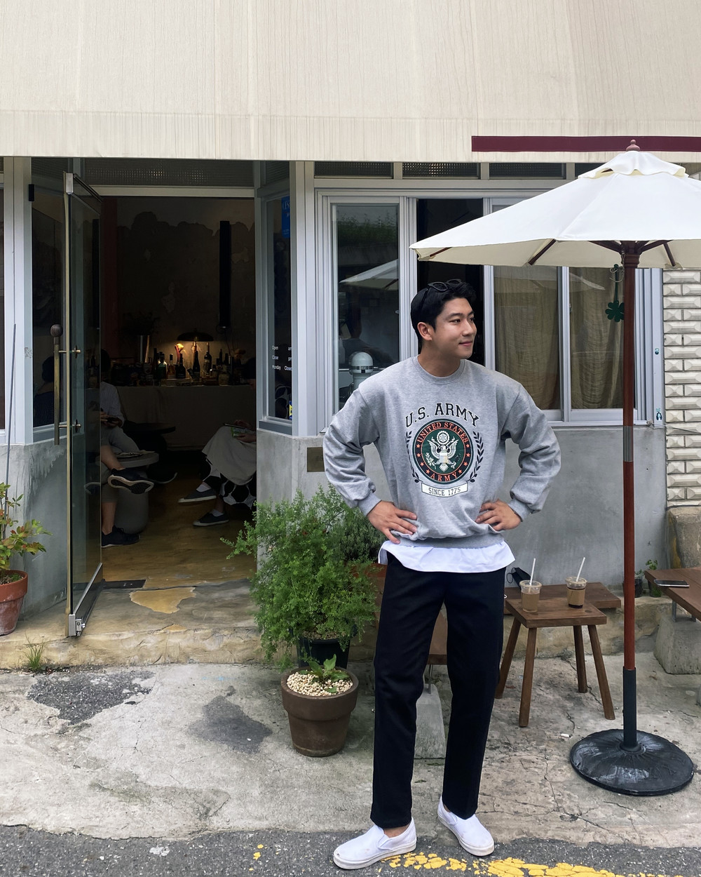 아미 프린팅이 클래식하면서도 캐주얼하게 코디가 가능한 맨투맨입니다