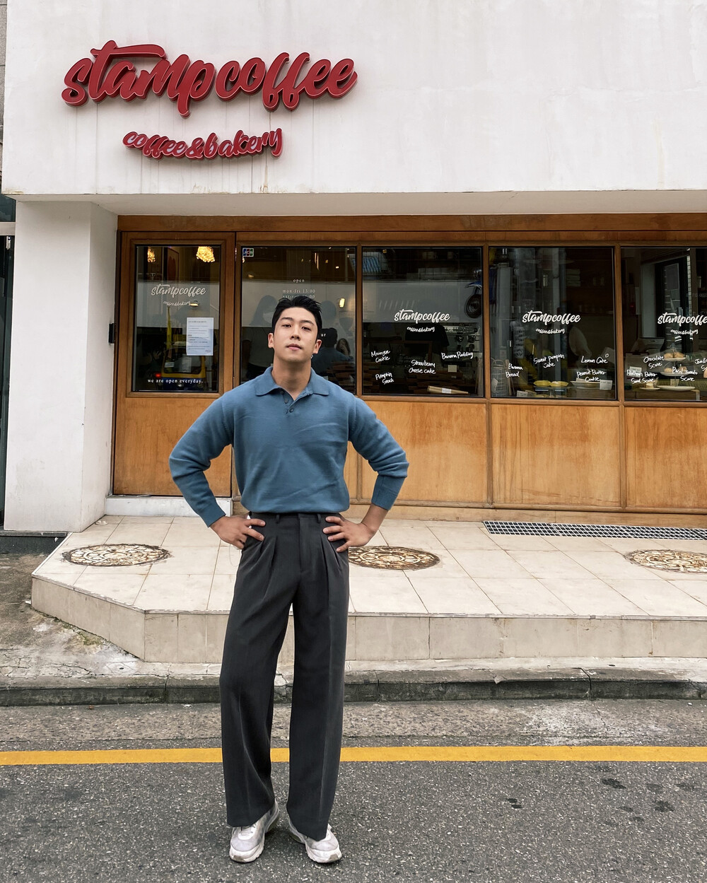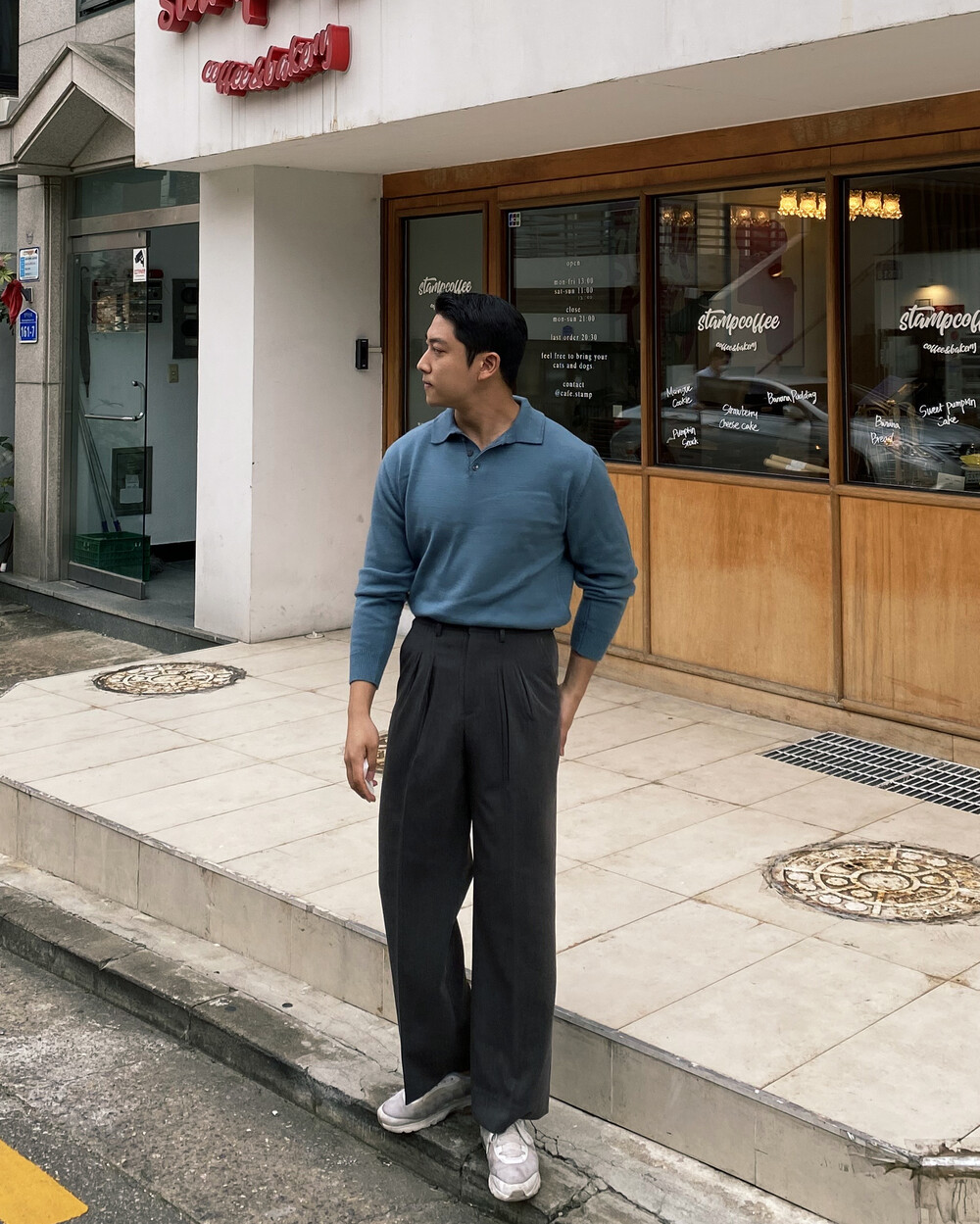 와이드함의 적절함을 보여주는 정석 같은 느낌의 슬랙스입니다