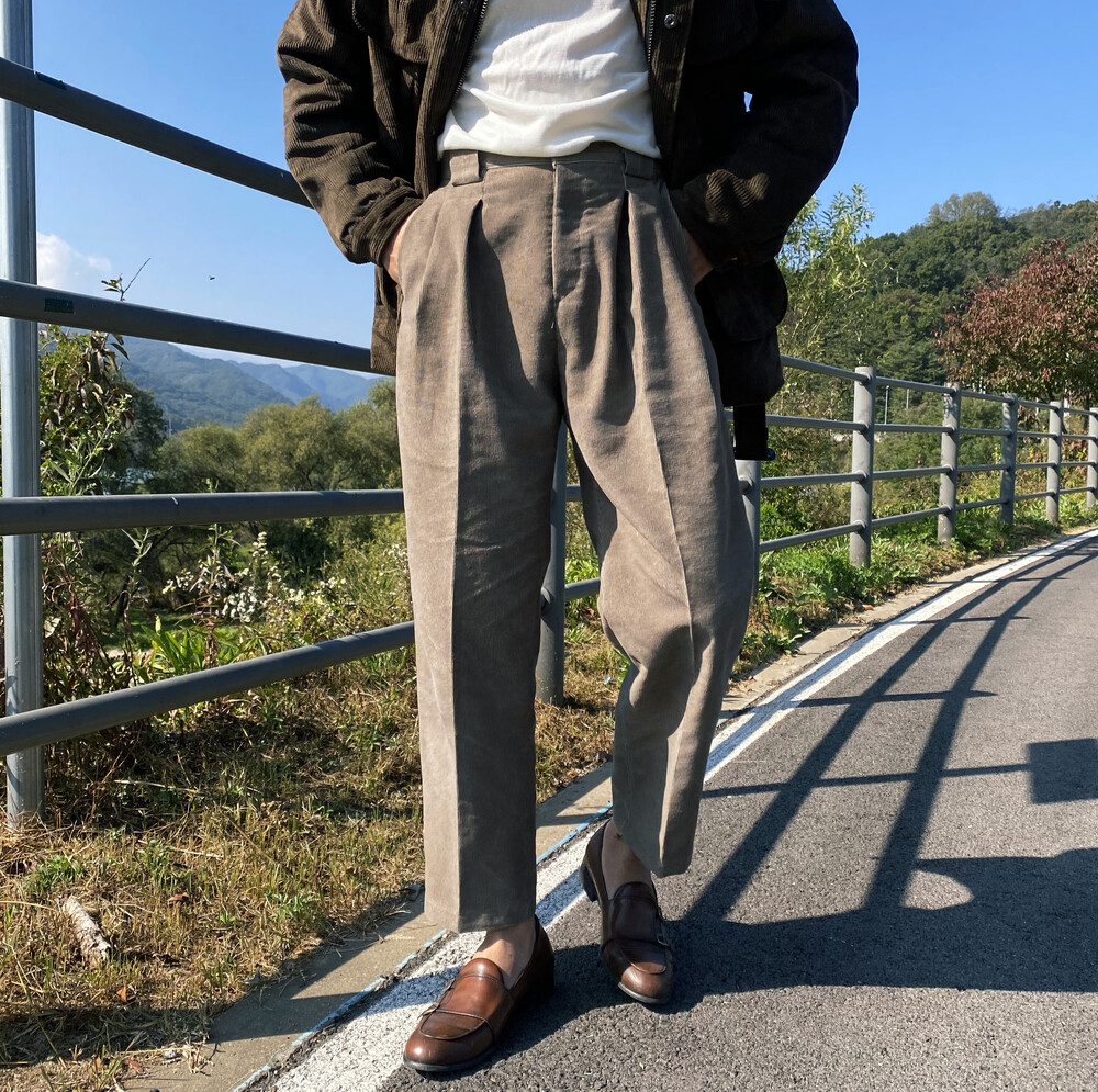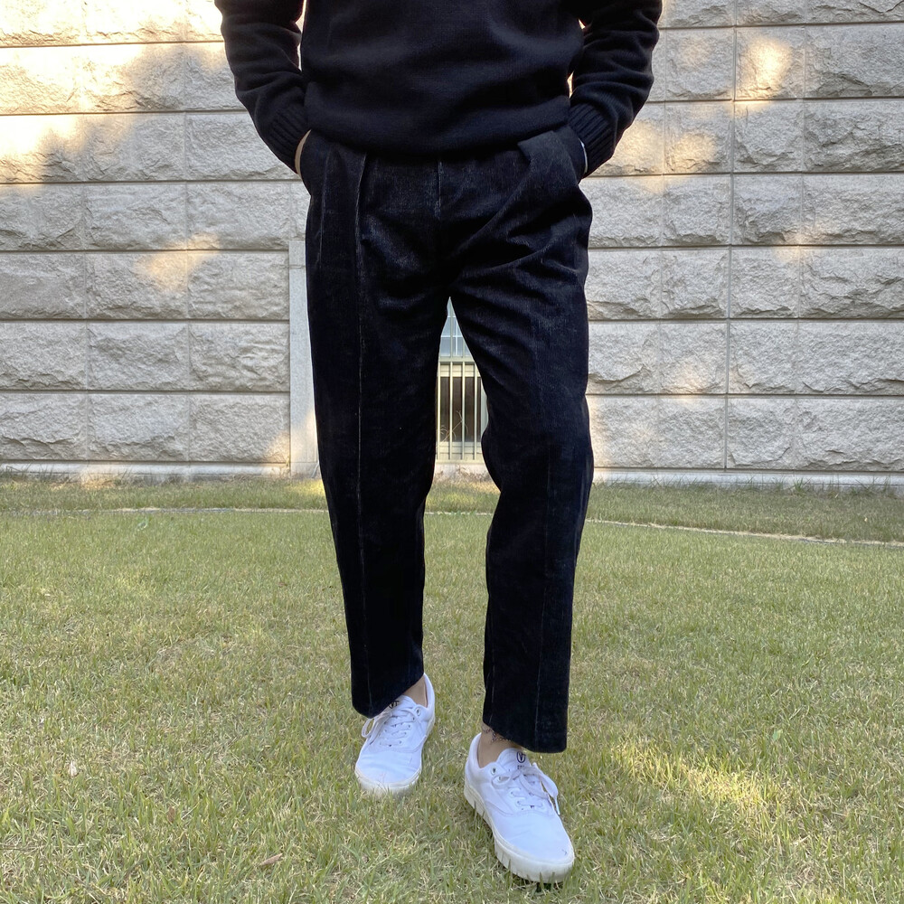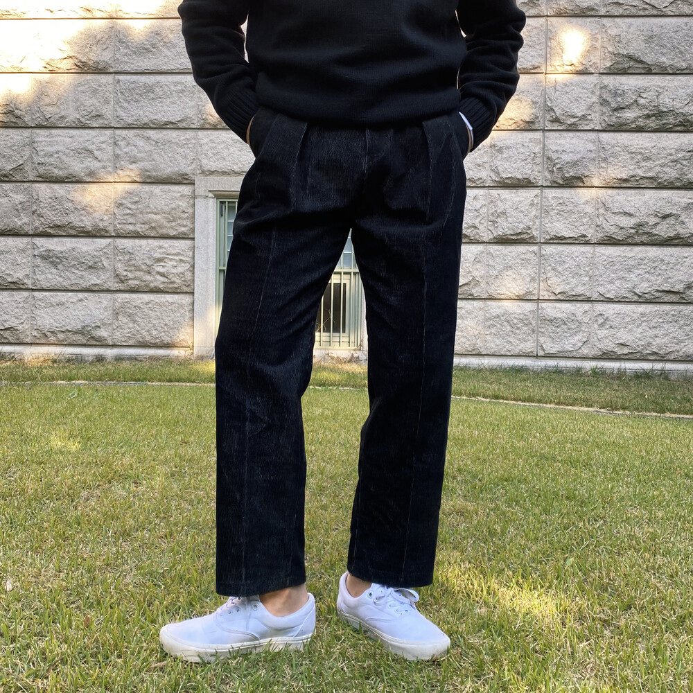 허리부터 잡혀 내려오는 투턱 포인트가 발까지 떨어지는 핏을 예쁘게 잡아줘요