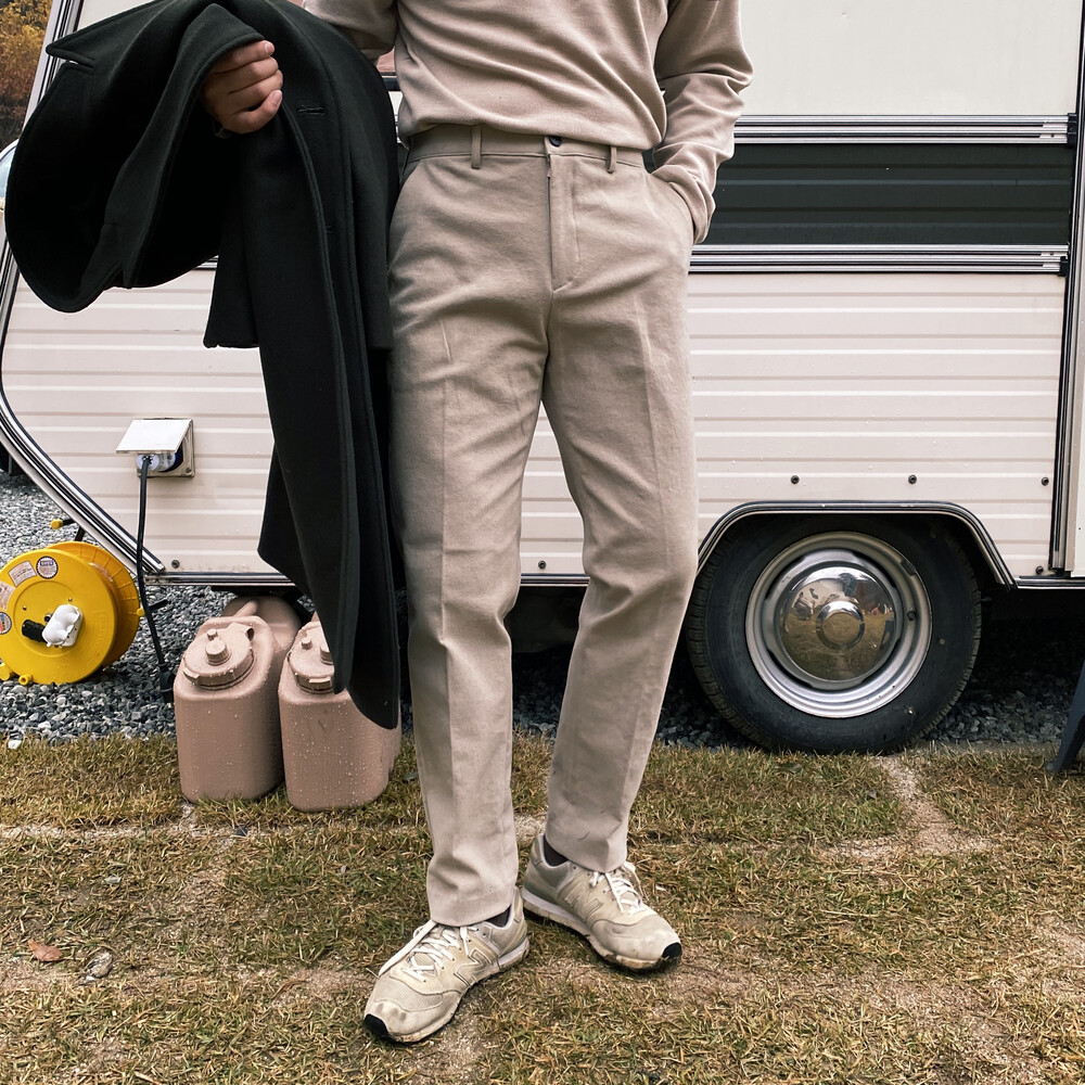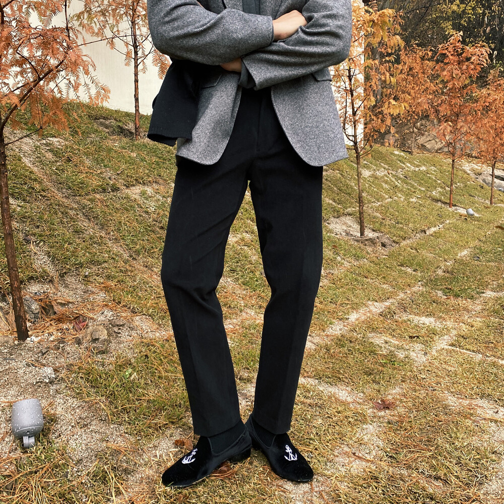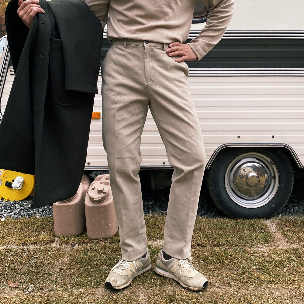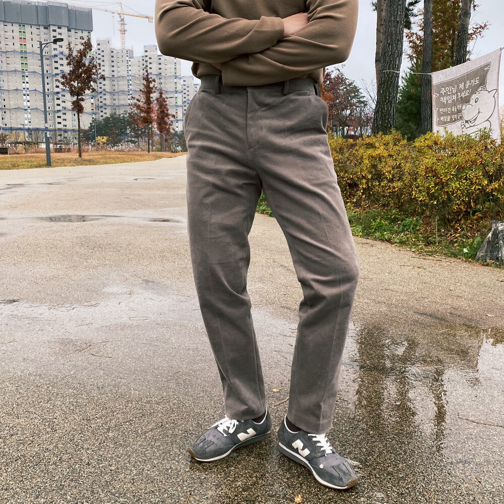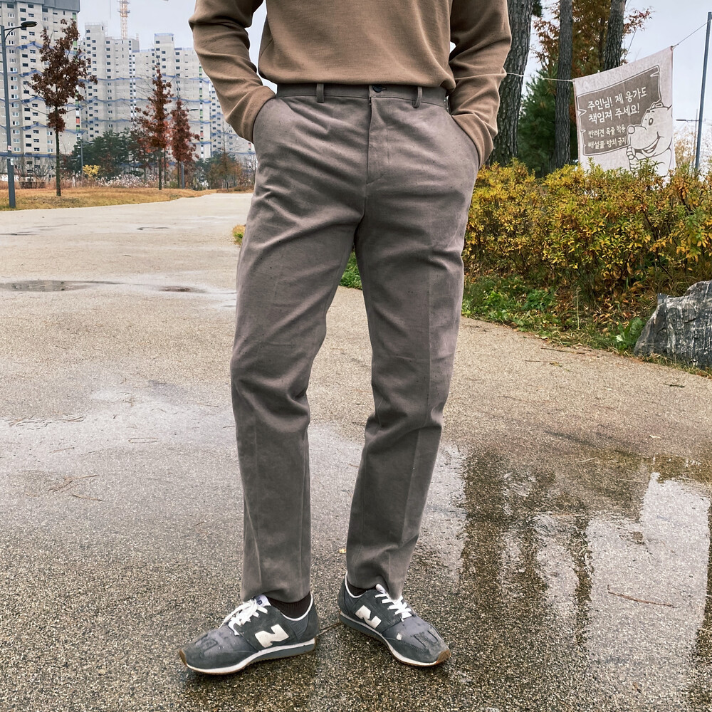 면 원단의 깔끔한 일자핏 반밴딩 팬츠입니다