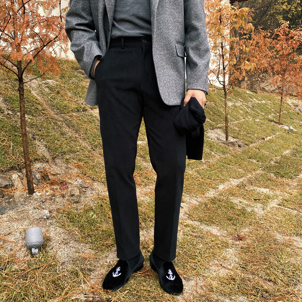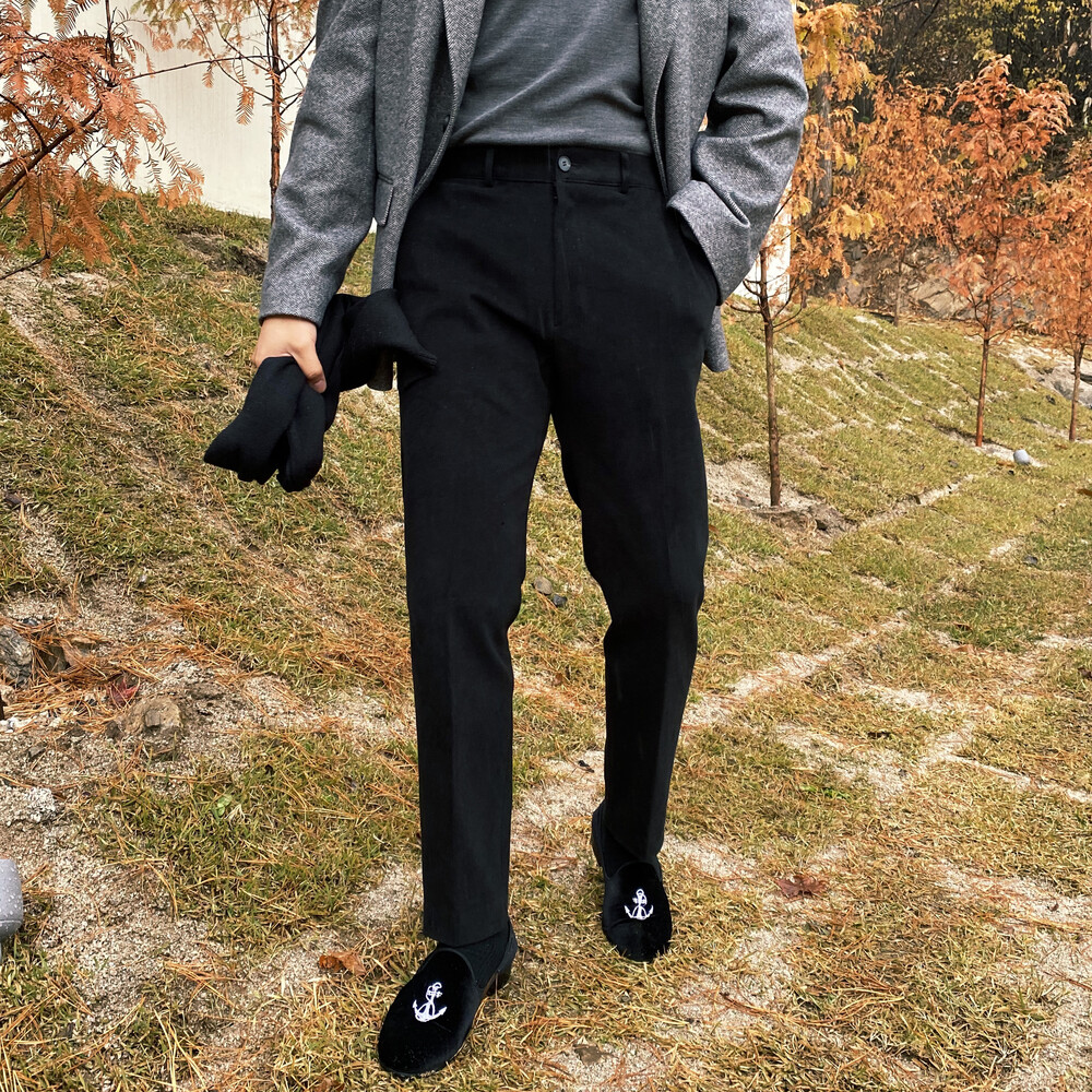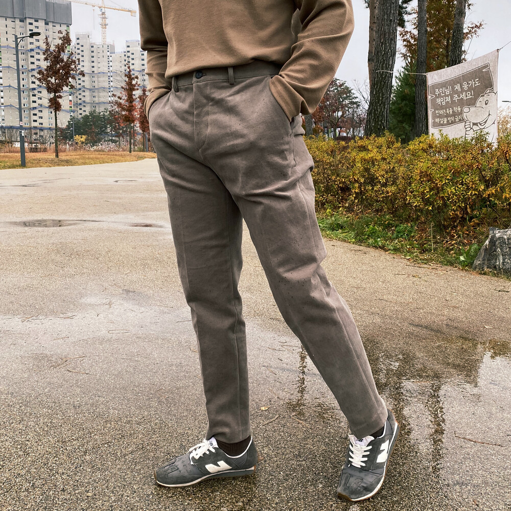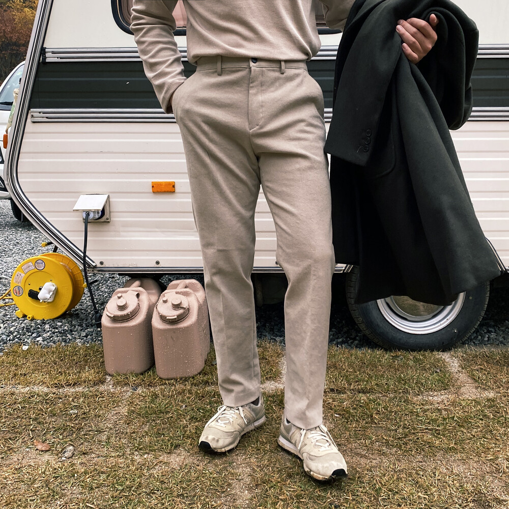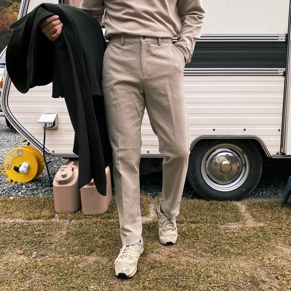 면 원단의 깔끔한 일자핏 반밴딩 팬츠입니다