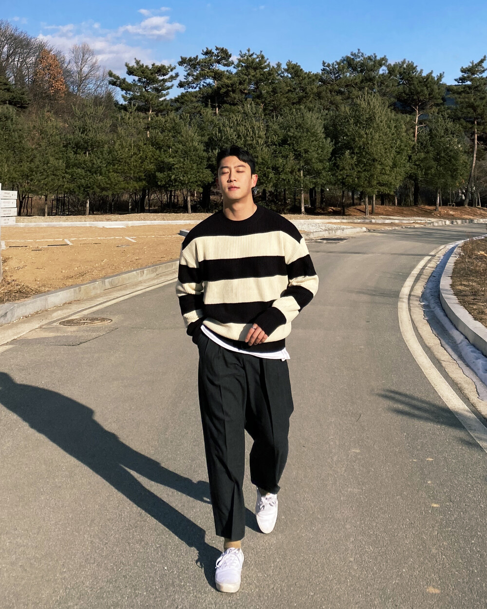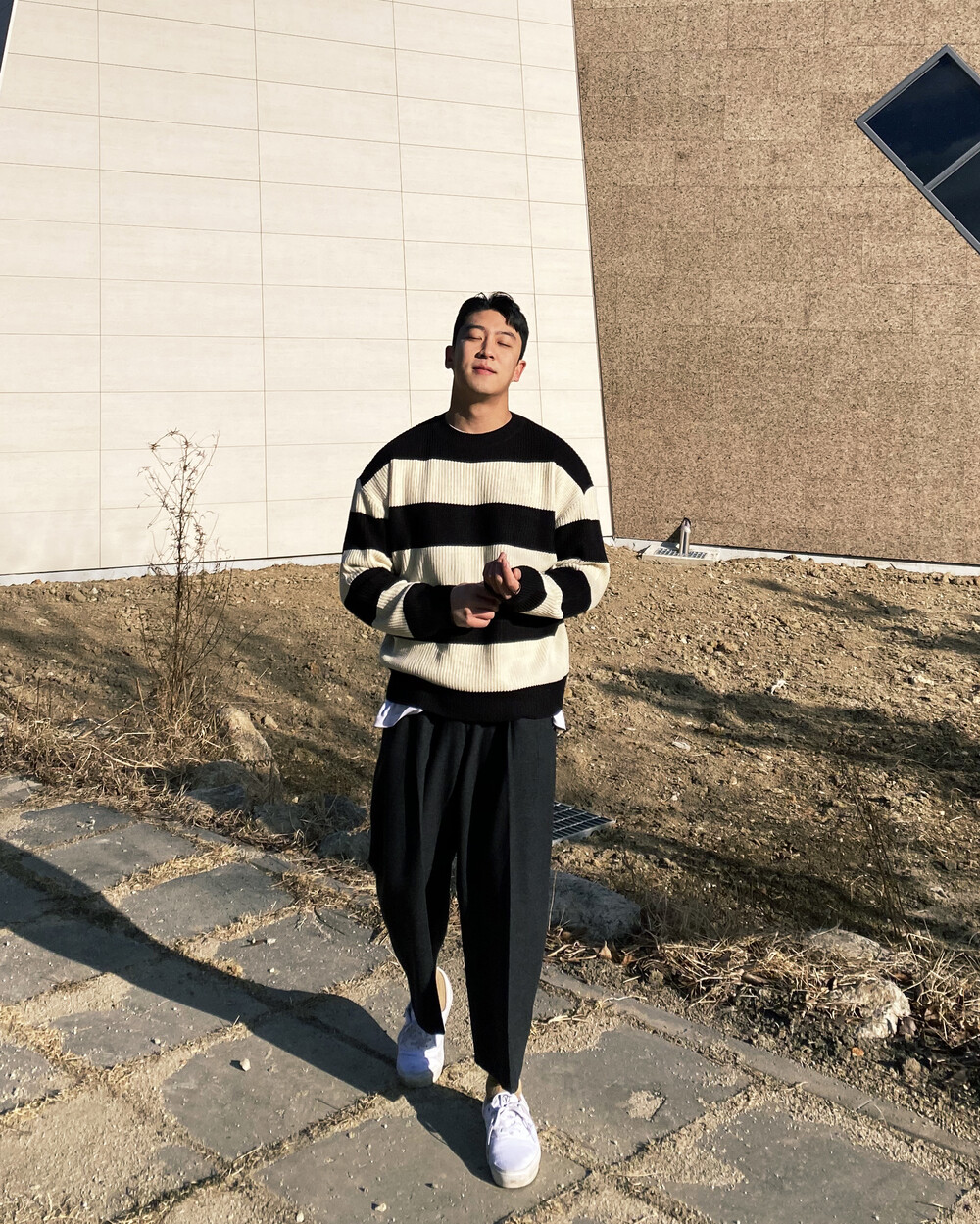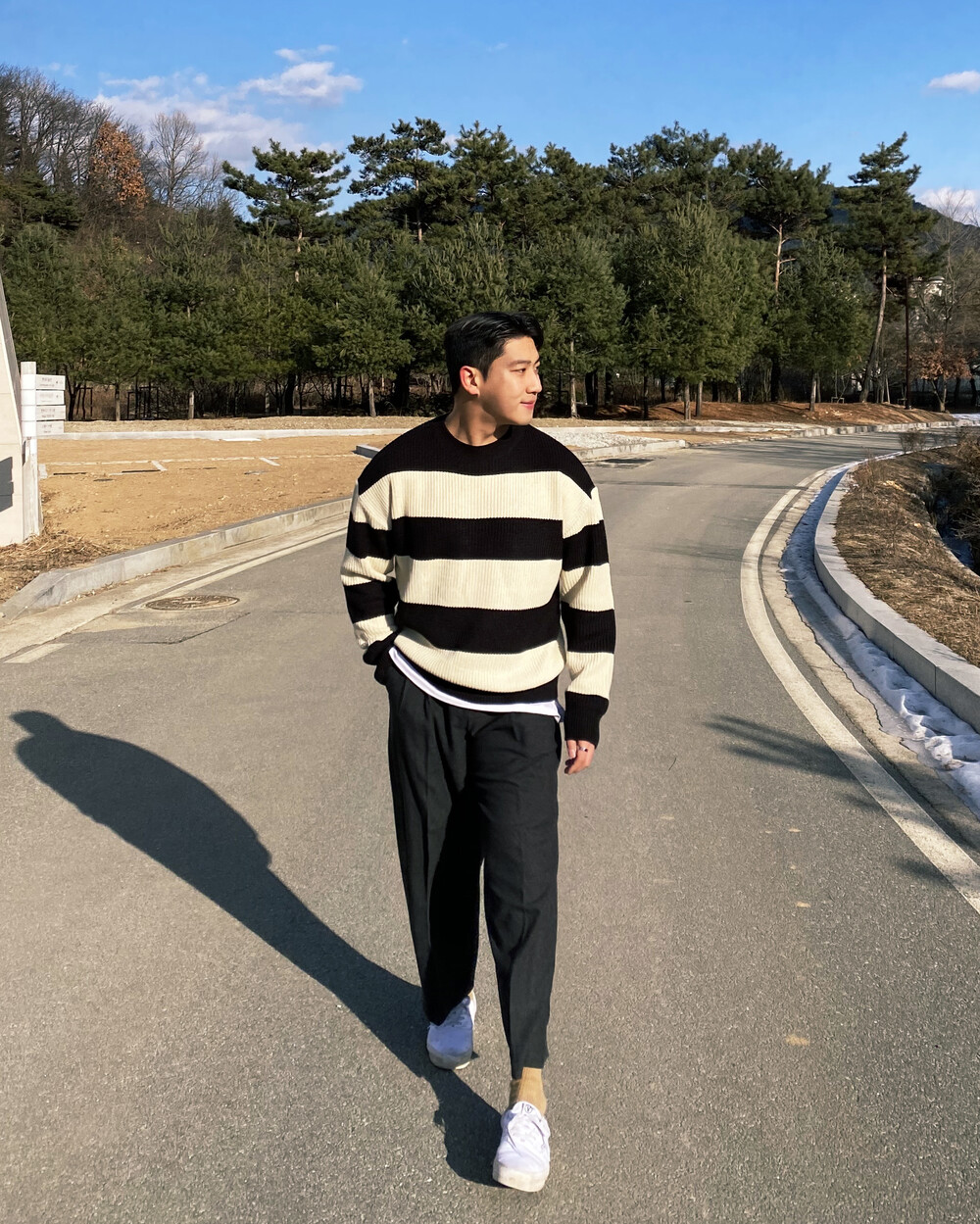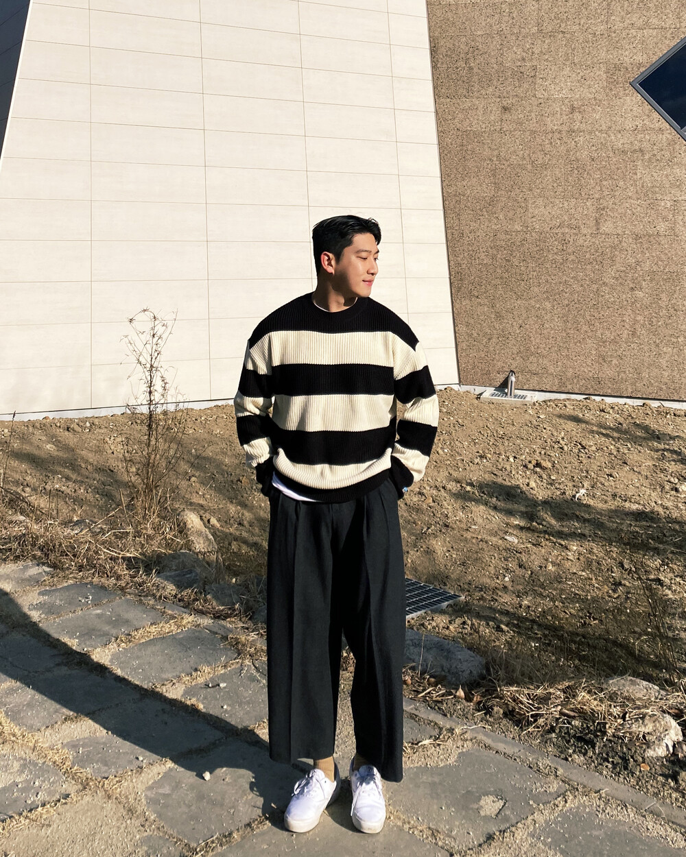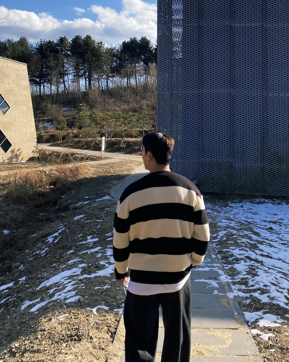 굵은 단가라 패턴이 입었을때 캐주얼한 멋을 주는 제품입니다