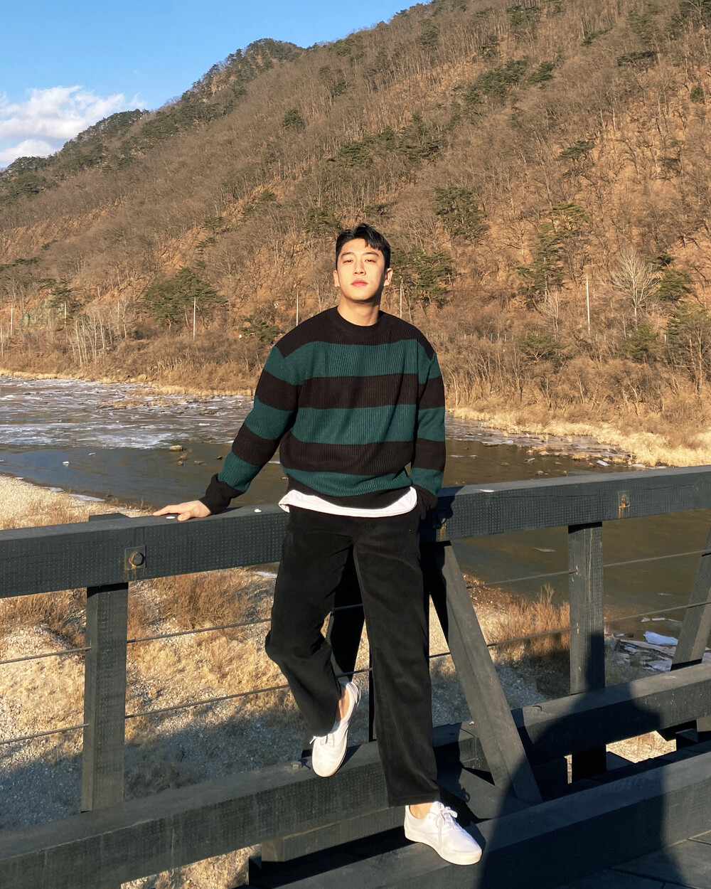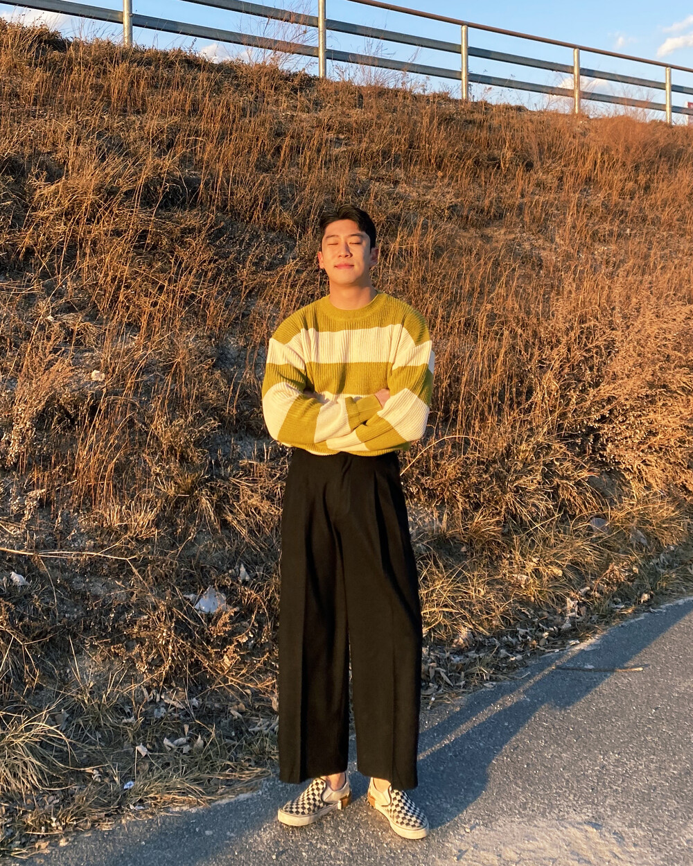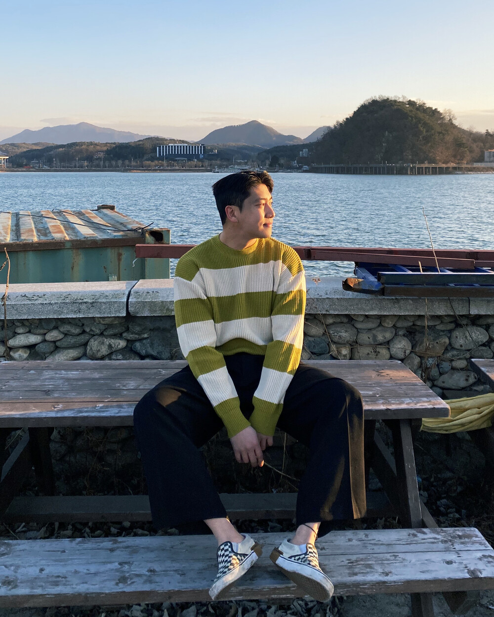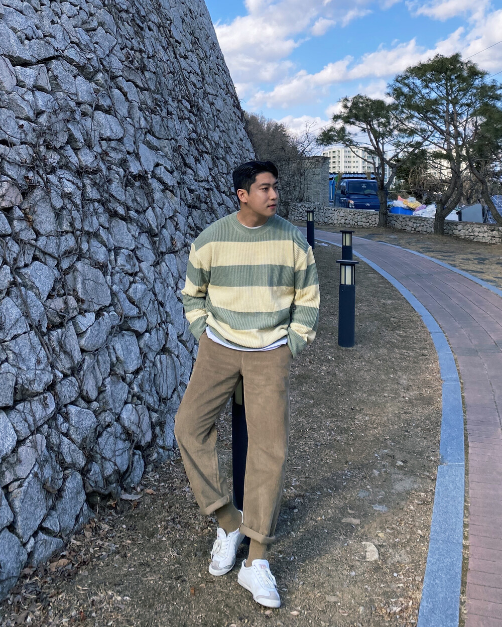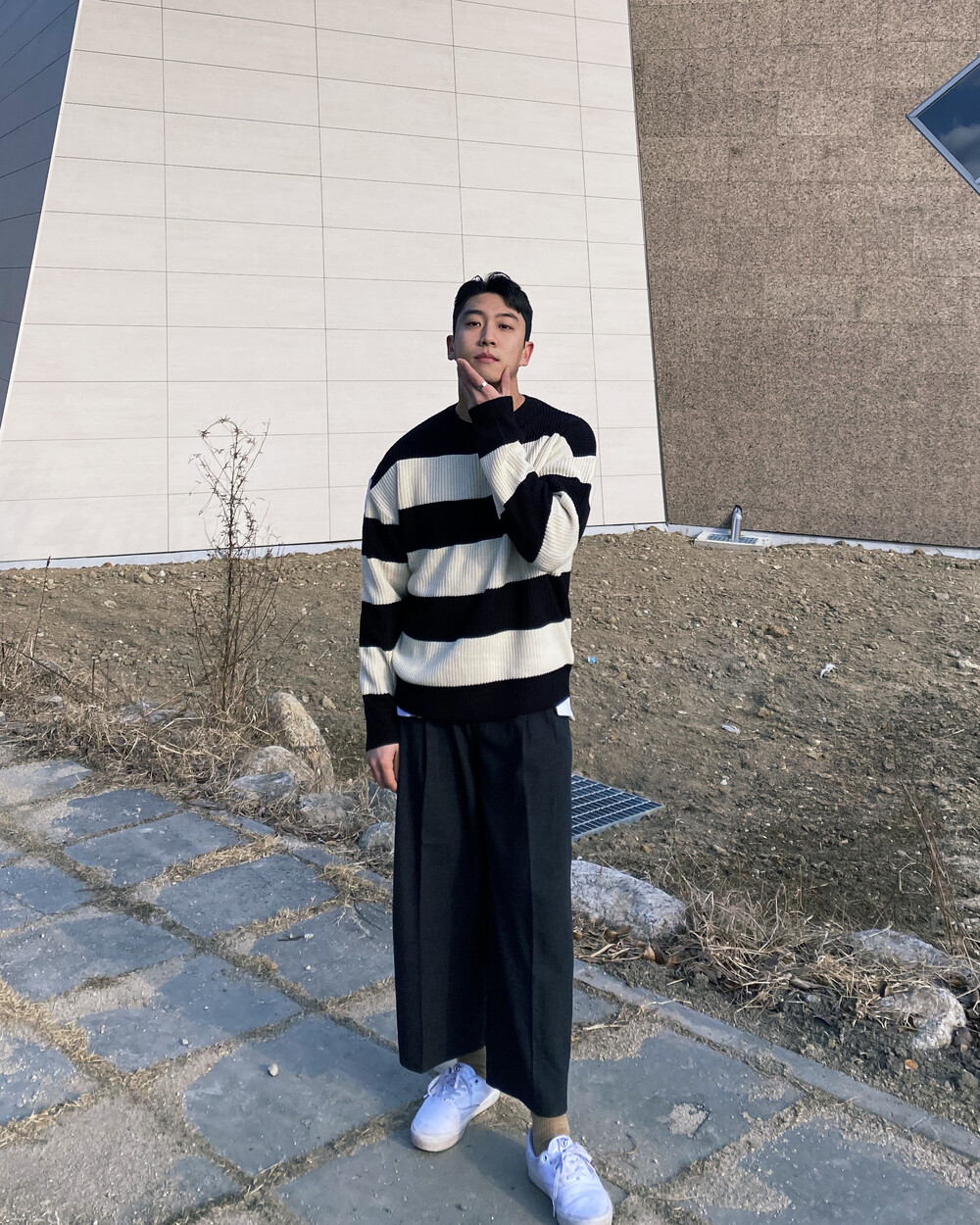 굵은 단가라 패턴이 입었을때 캐주얼한 멋을 주는 제품입니다