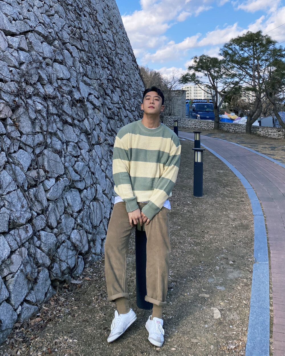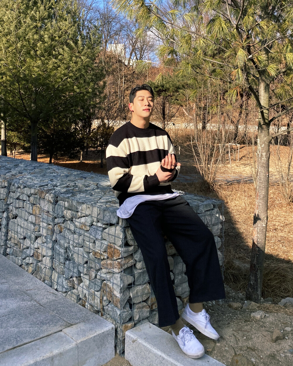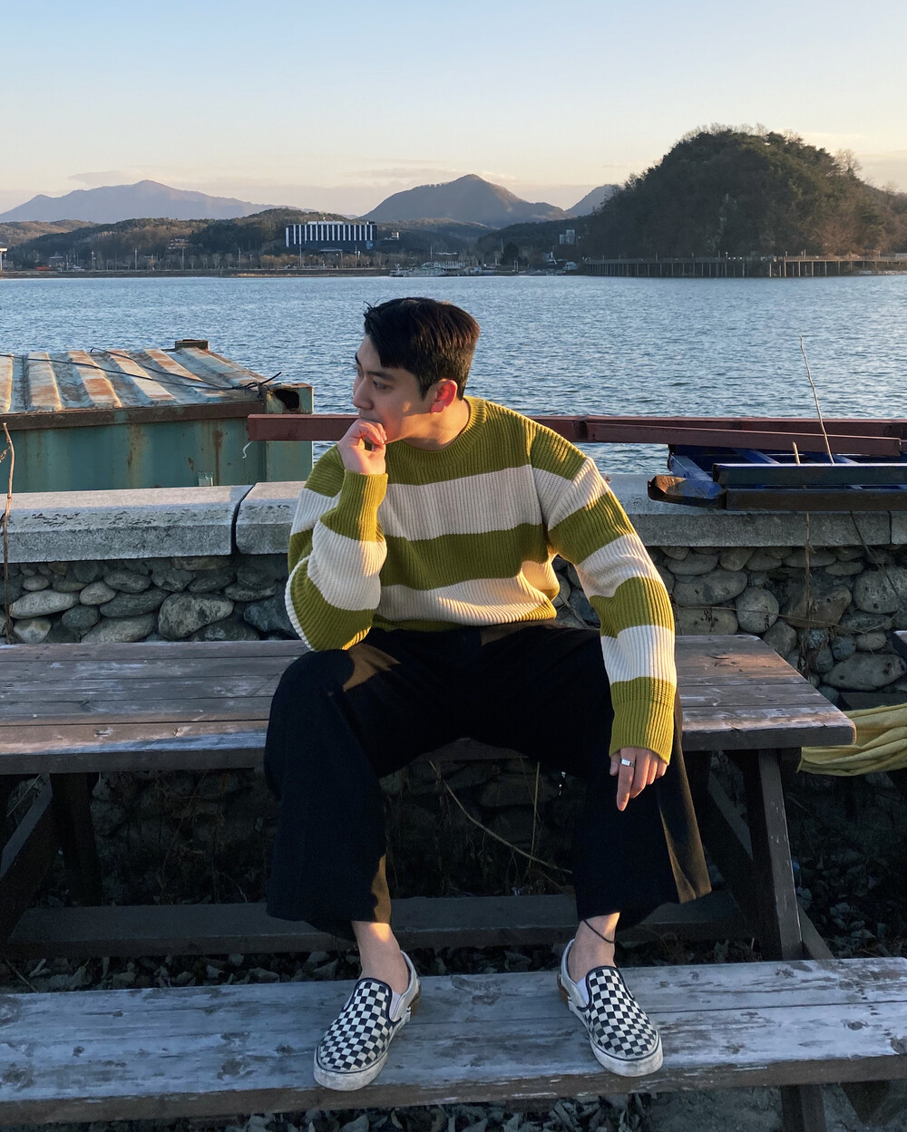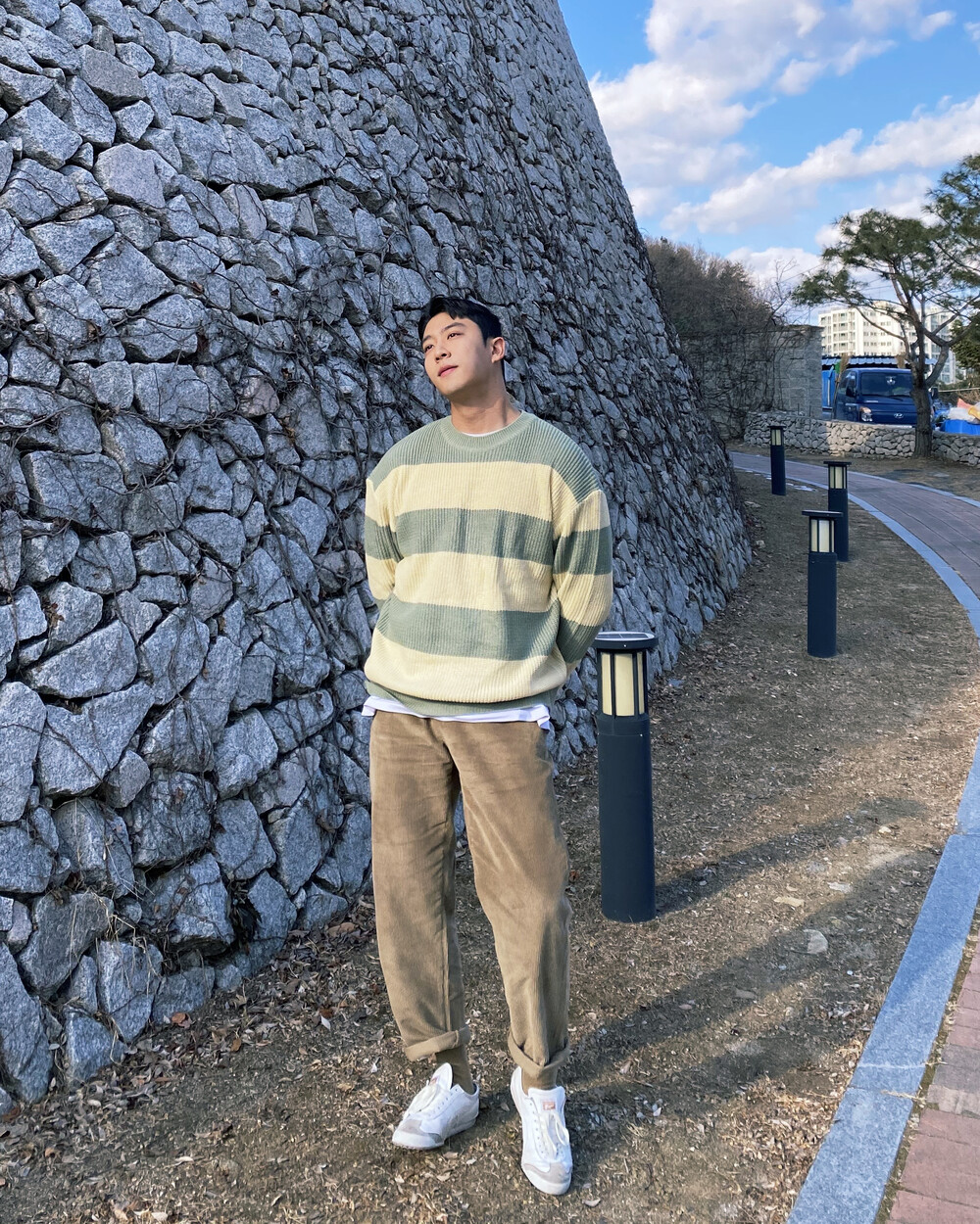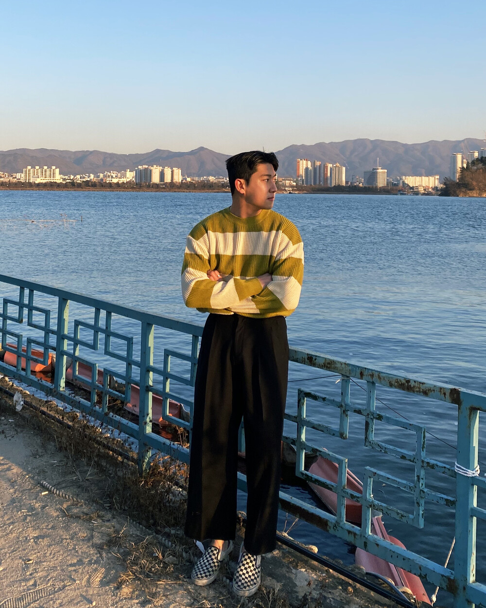 굵은 단가라 패턴이 입었을때 캐주얼한 멋을 주는 제품입니다