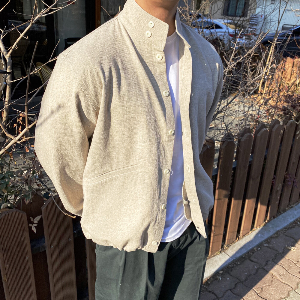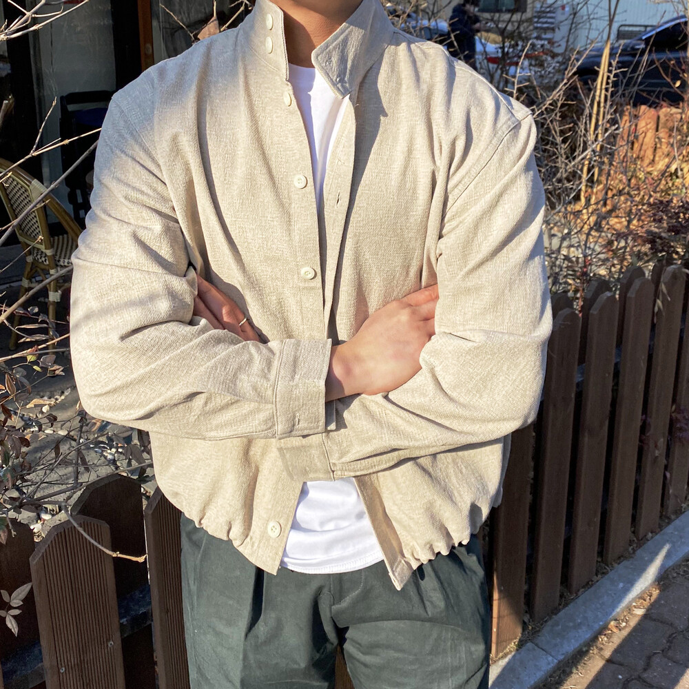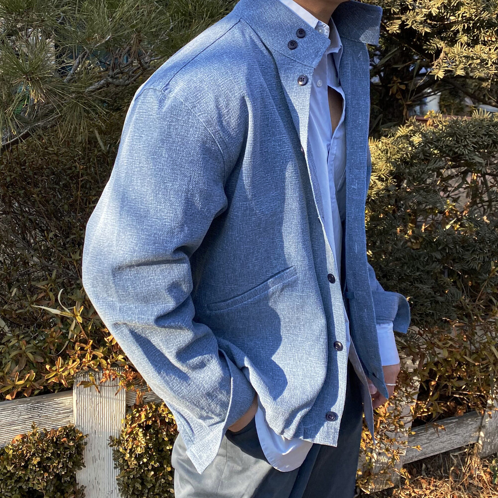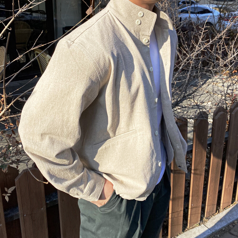 넥라인이 버튼으로 반목정도까지 올라오는 하이넥 자켓입니다