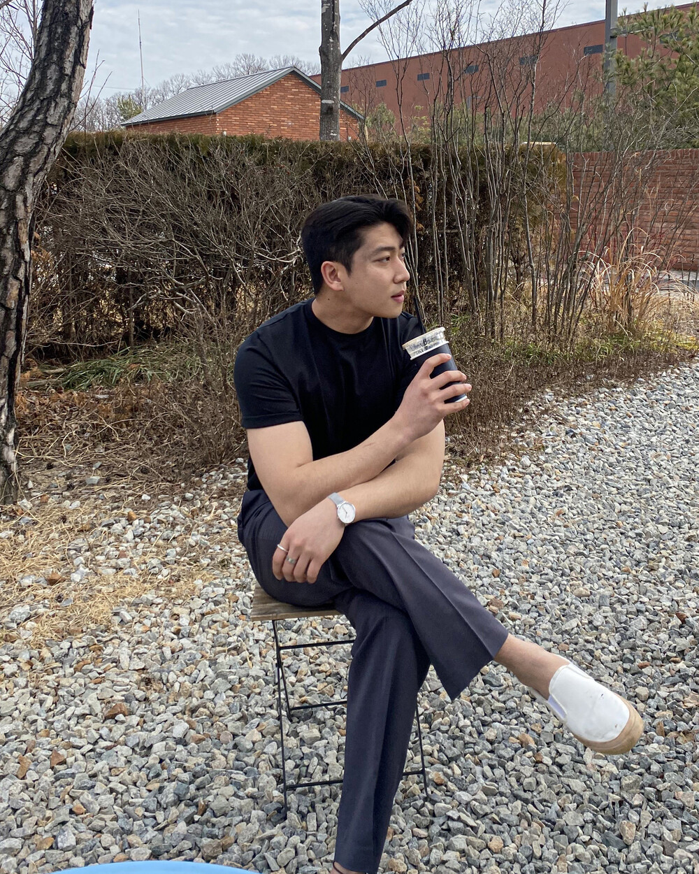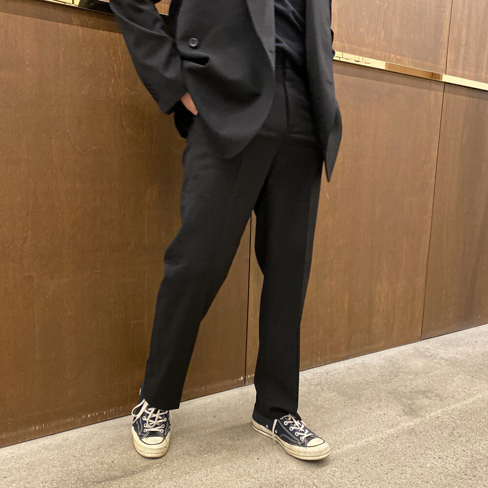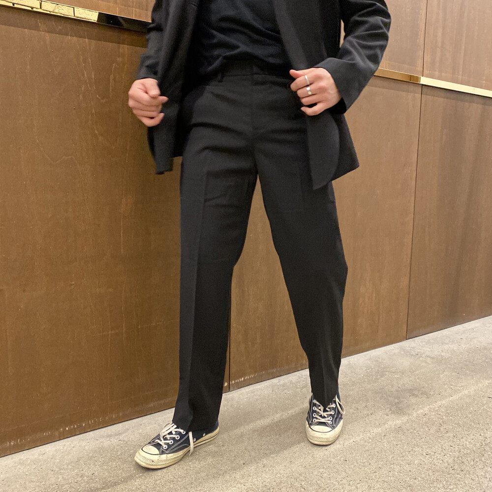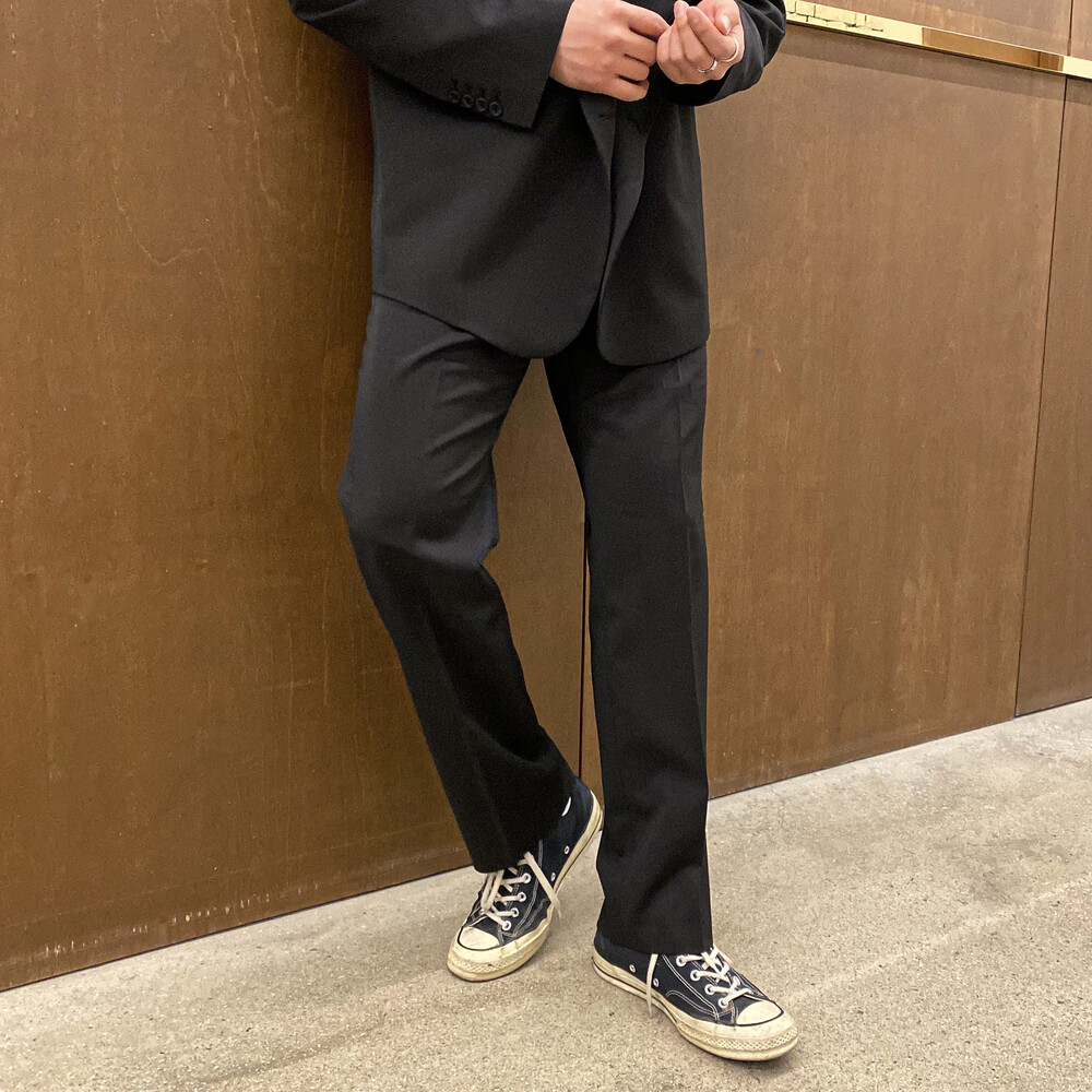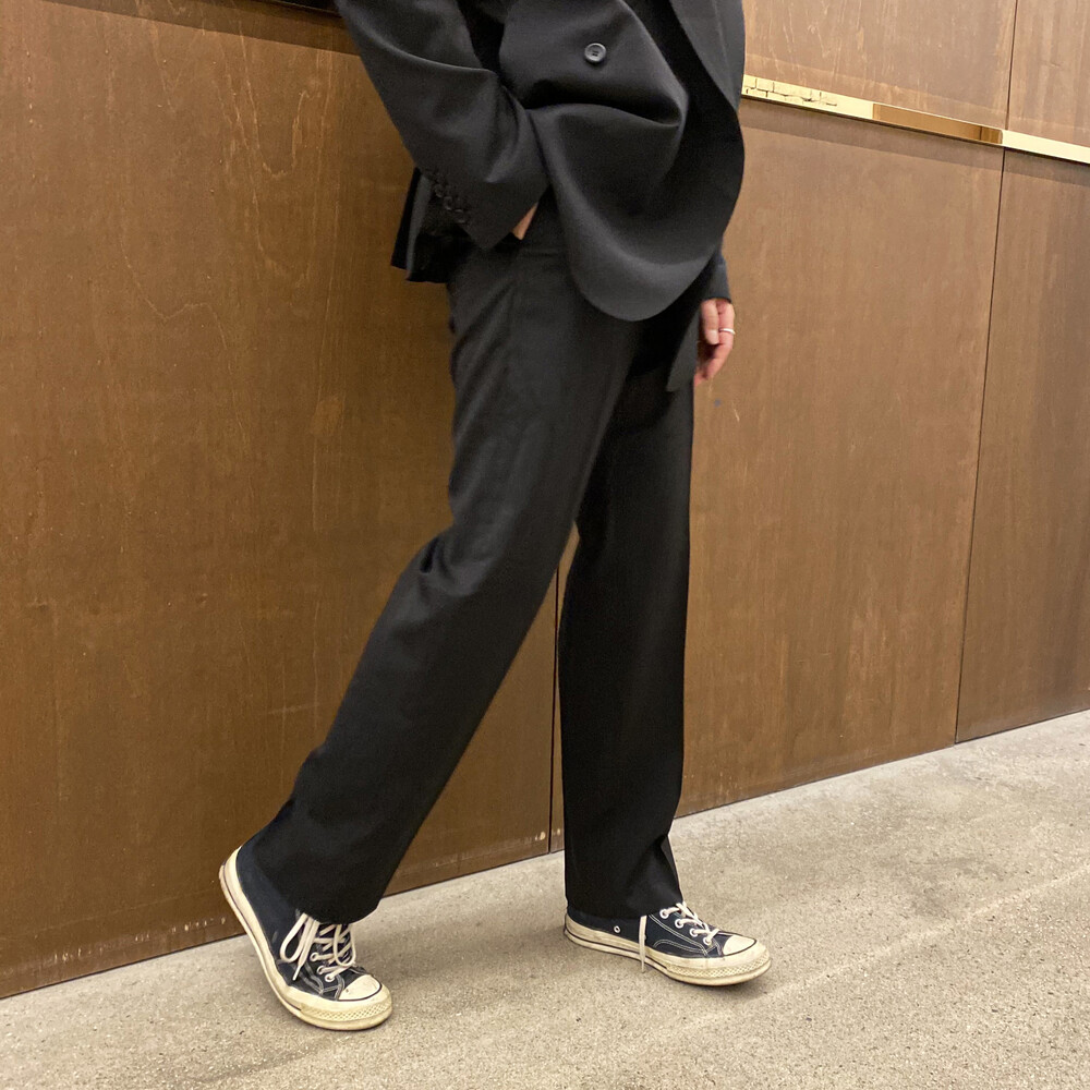 팬츠는 세미 와이드의 적당히 롱한 기장으로 단화나 운동화를 신었을때 예쁘게 잘 떨어지는 핏입니다
