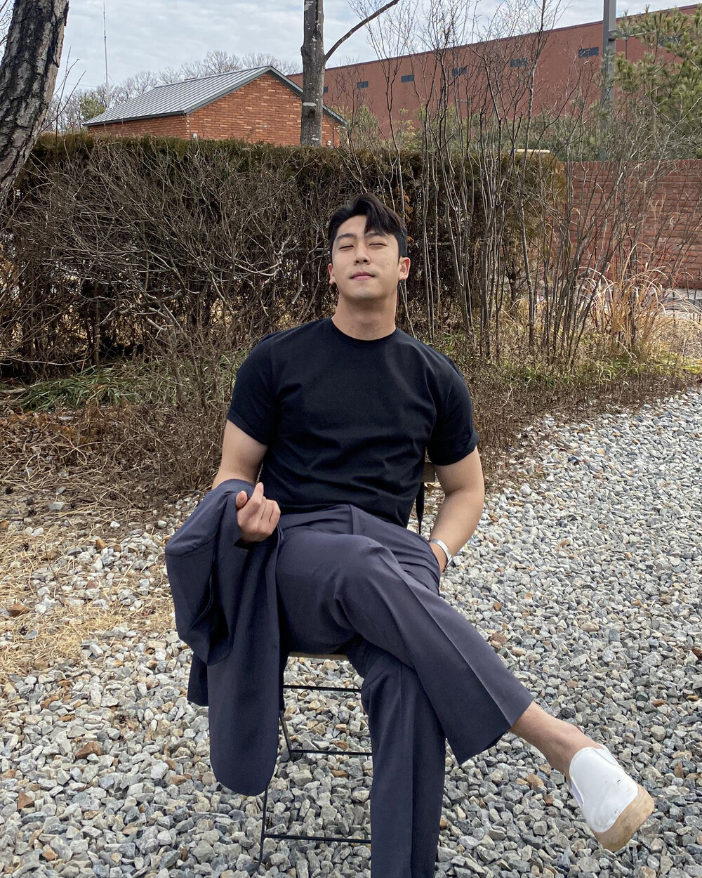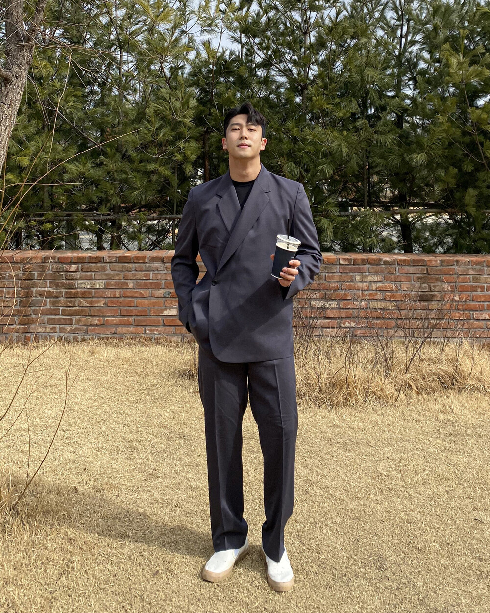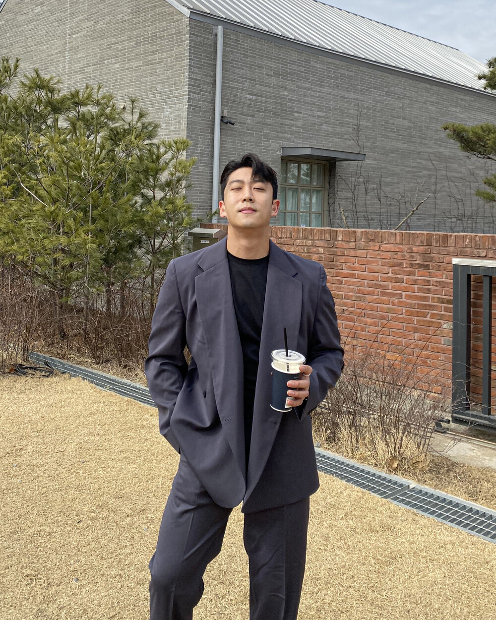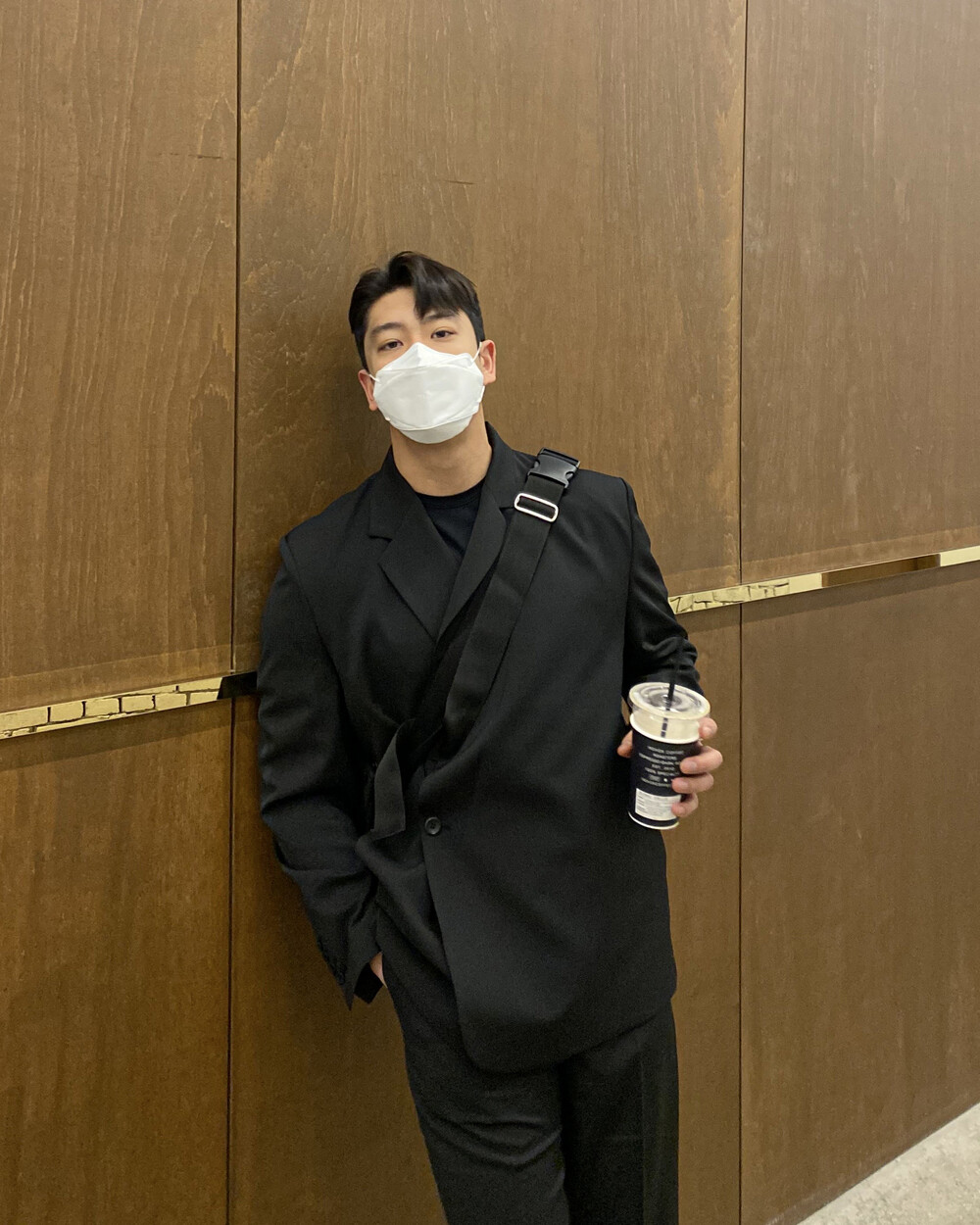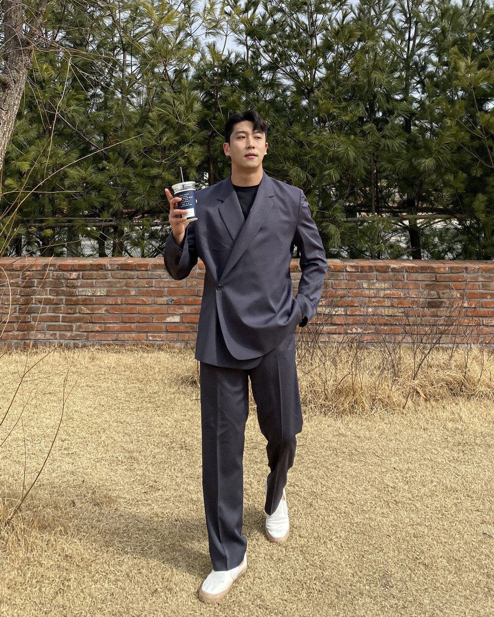 블랙과 차콜의 무채색 컬러가 섹시한 느낌까지 내주면서 일반적인 자켓과는 달라서 디자인자체가 포인트가 되어주는 셋업이에요