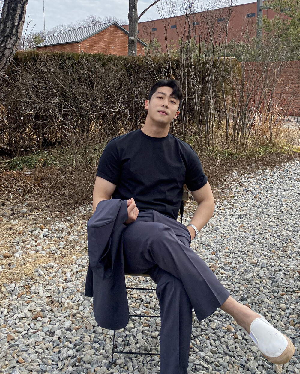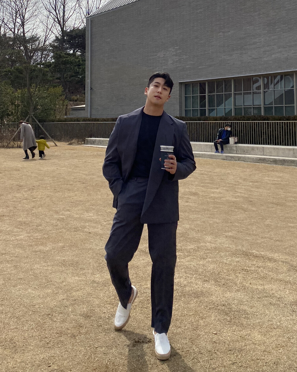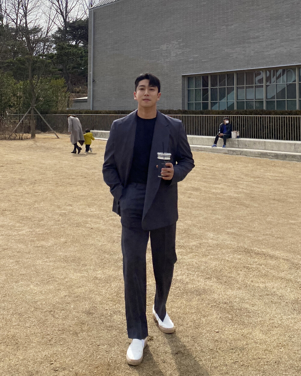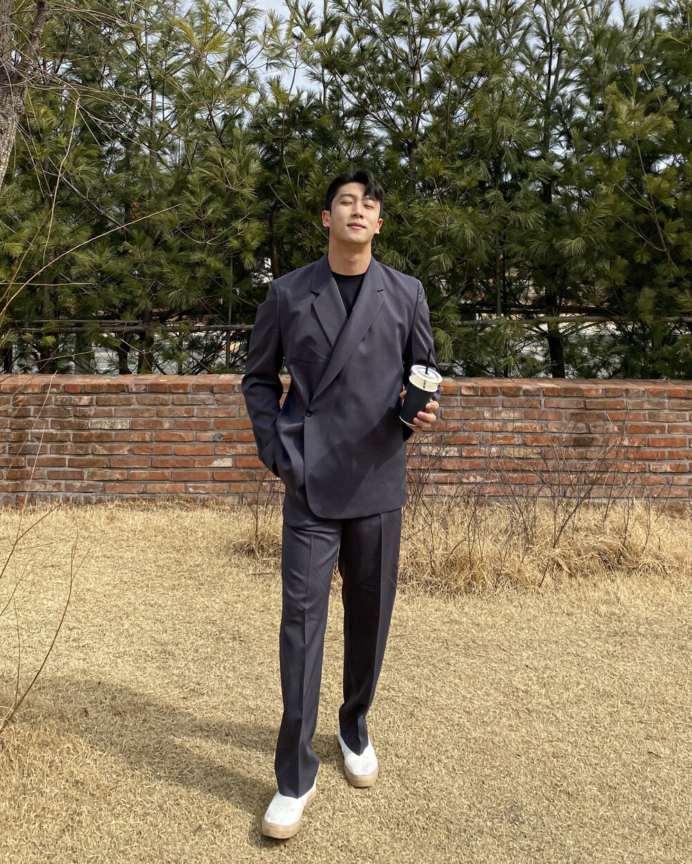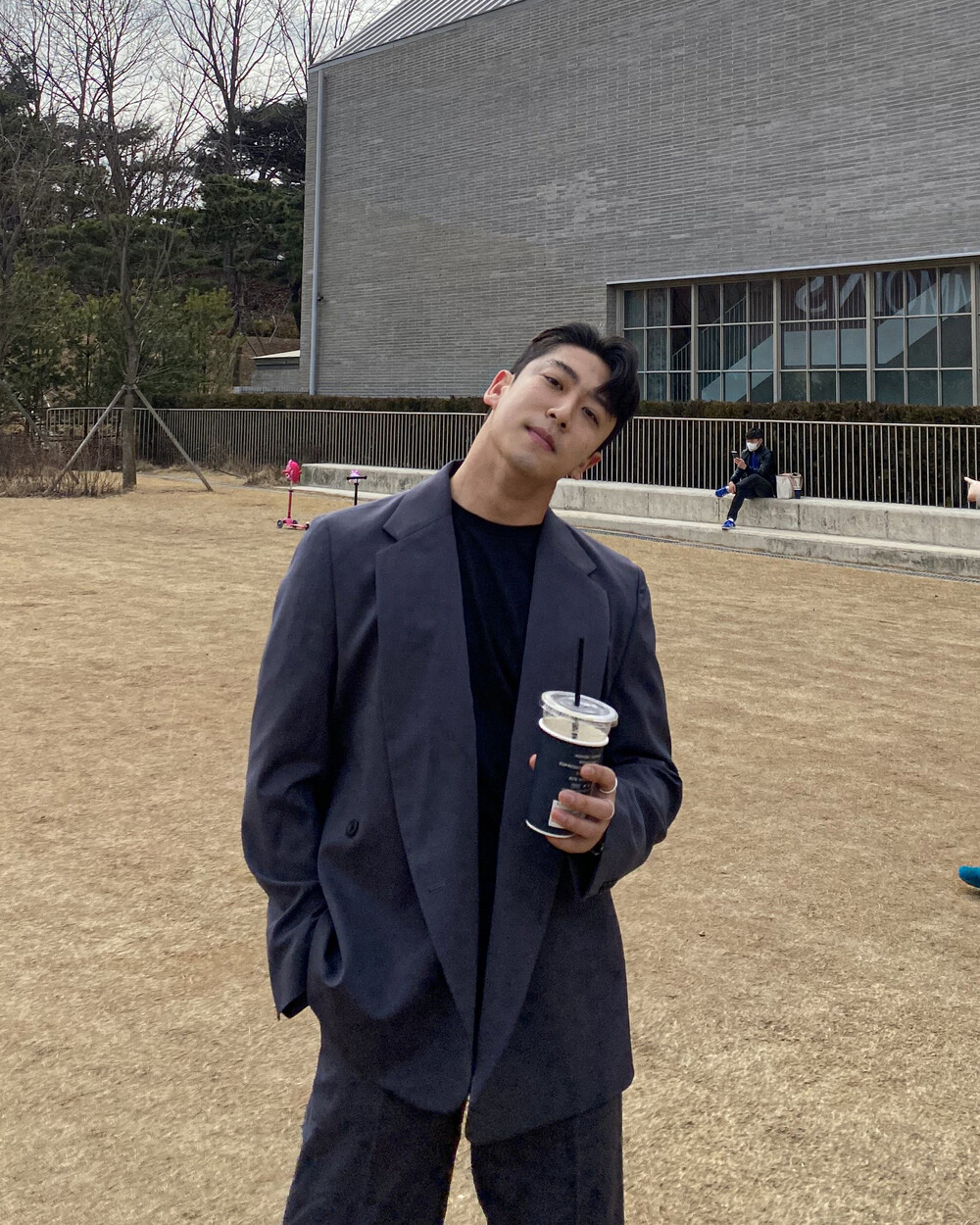 블랙과 차콜의 무채색 컬러가 섹시한 느낌까지 내주면서 일반적인 자켓과는 달라서 디자인자체가 포인트가 되어주는 셋업이에요