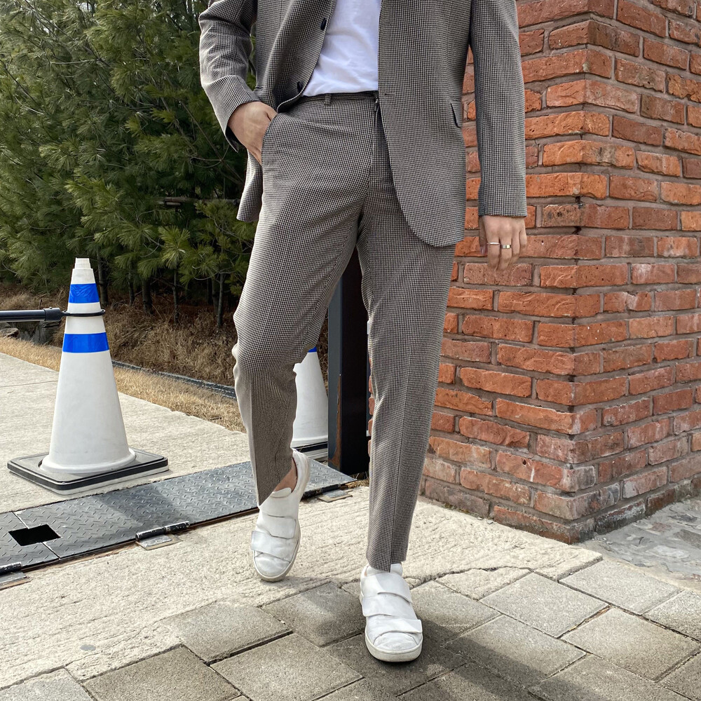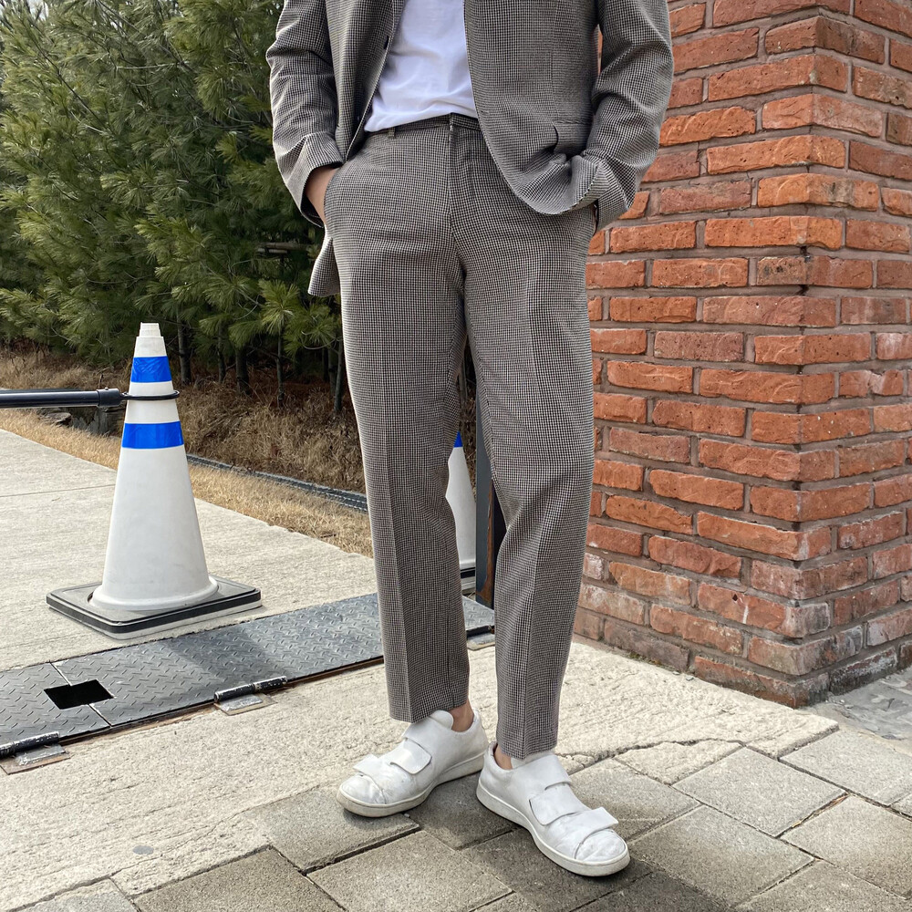 아방 체크 자켓과 셋업으로 착용가능한 반밴딩 슬랙스입니다