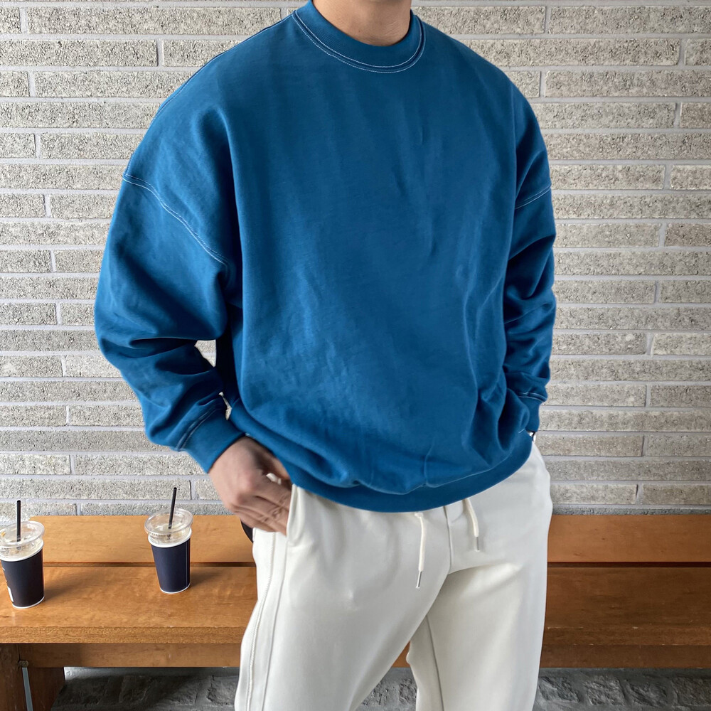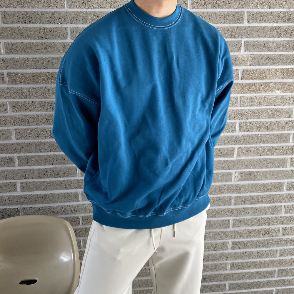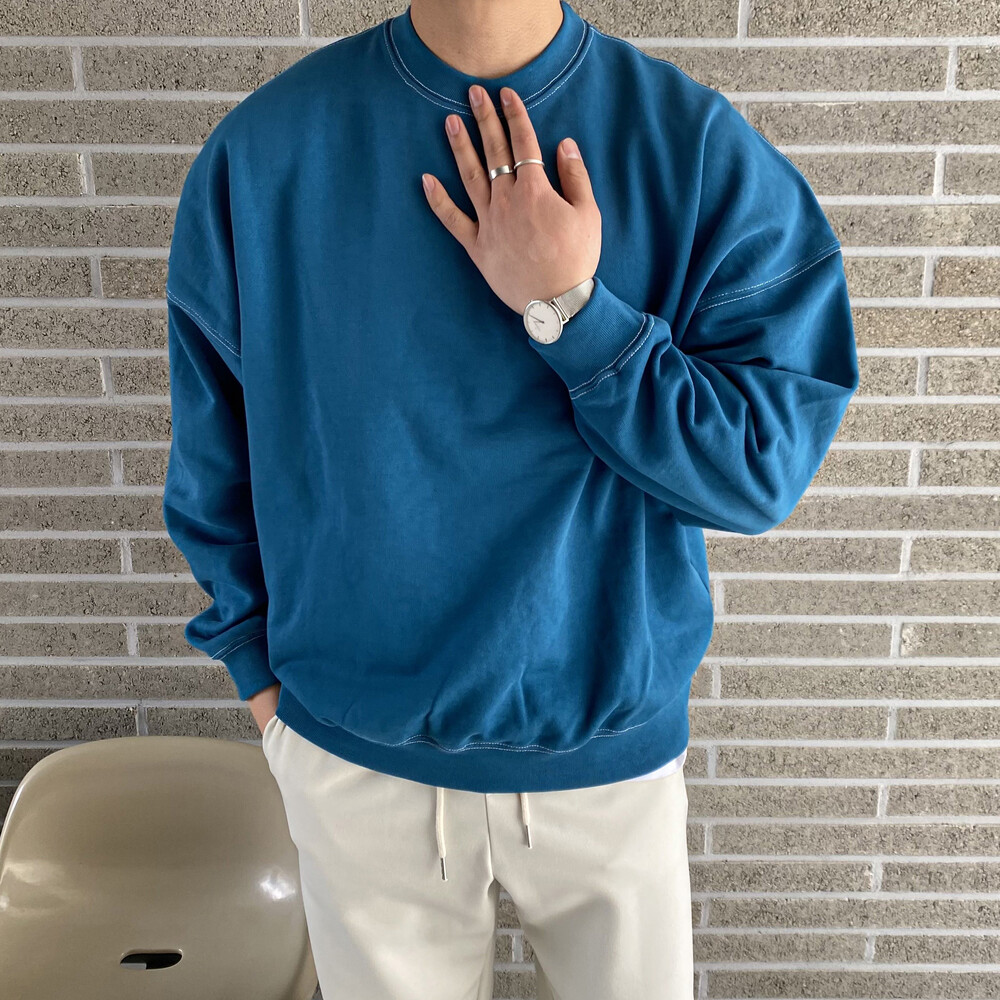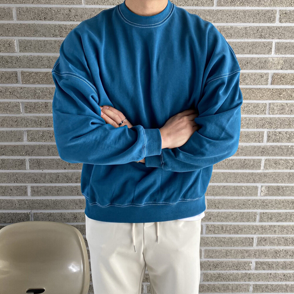 색감이 곱고, 스티치 마감이 포인트가 되어 하나만 입어줘도 너무 예쁜 맨투맨입니다