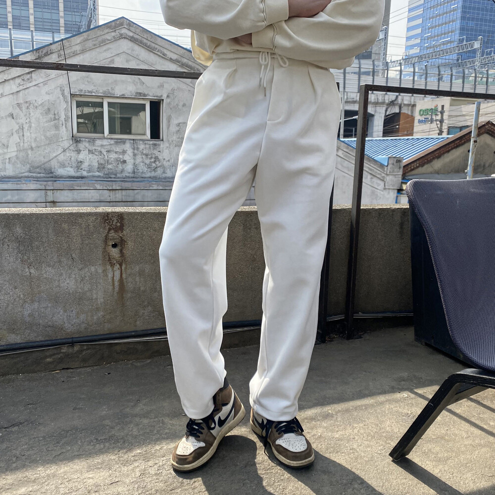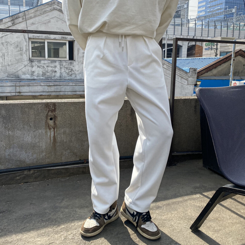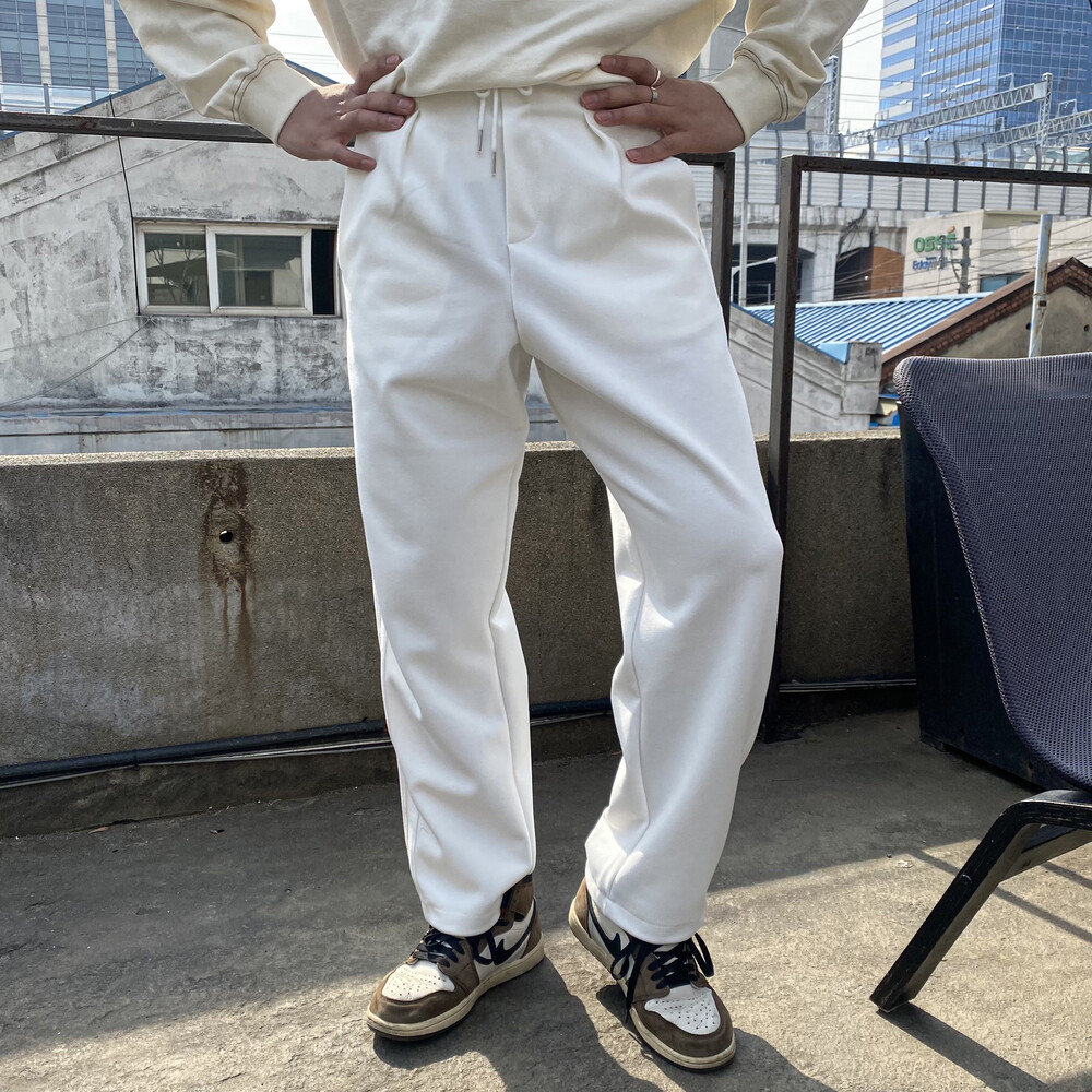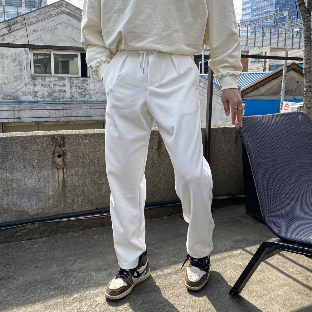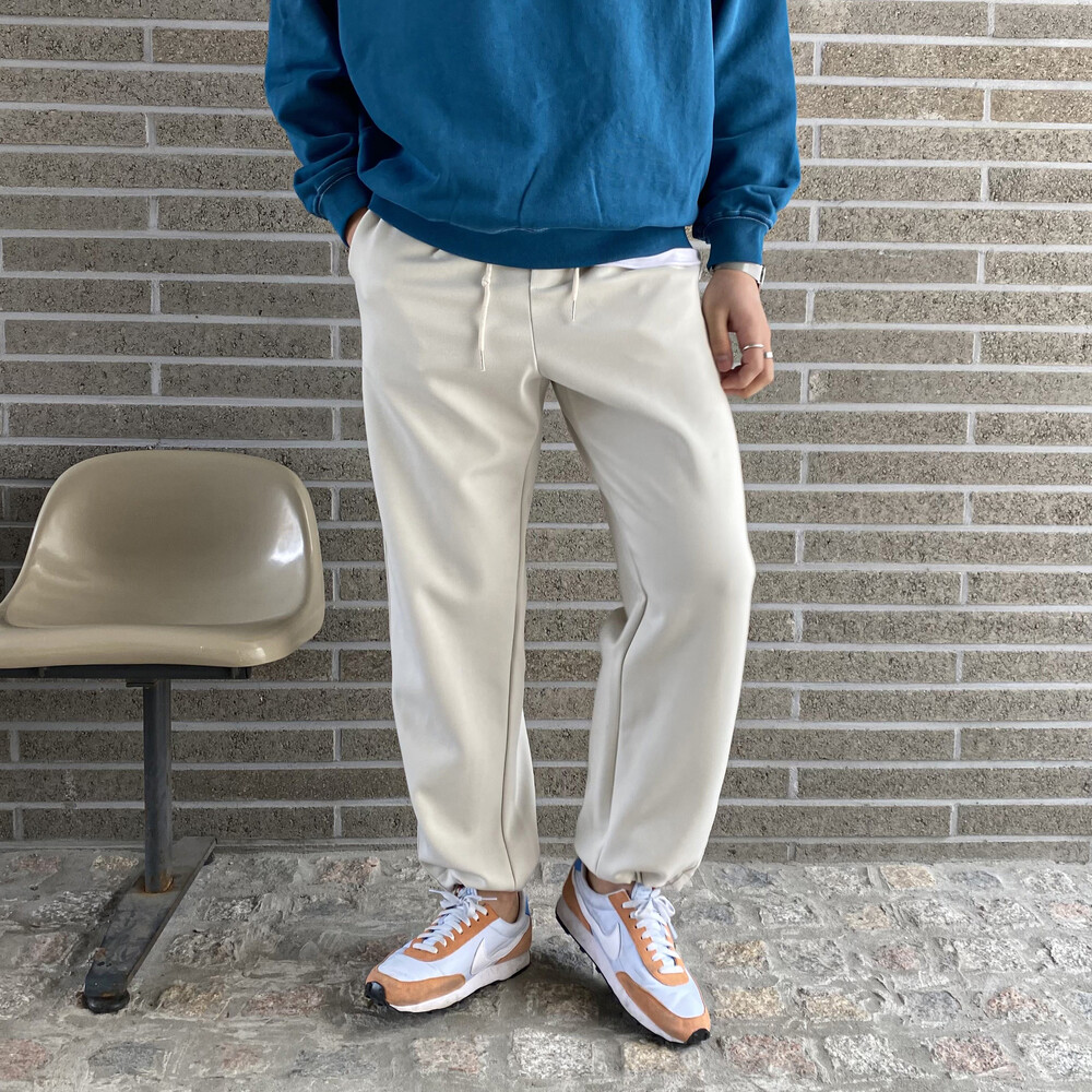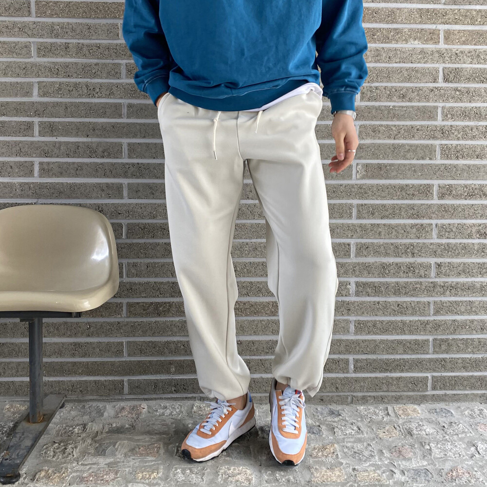 밑단에 스트링이 달려있어 조거팬츠로도 활용이 가능한 면 밴딩 팬츠입니다