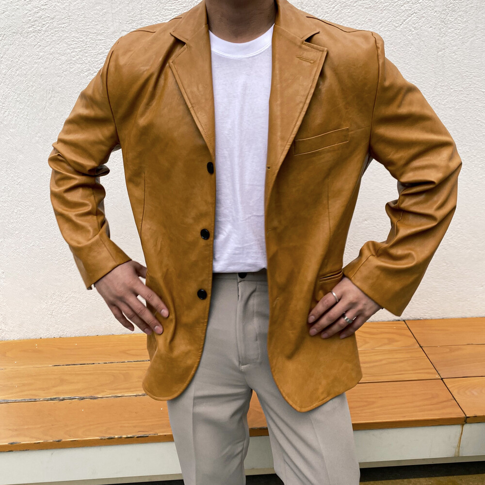 [Tomtyler] Ricky Leather Blazer [mustard]