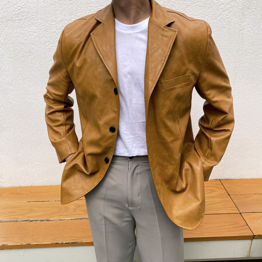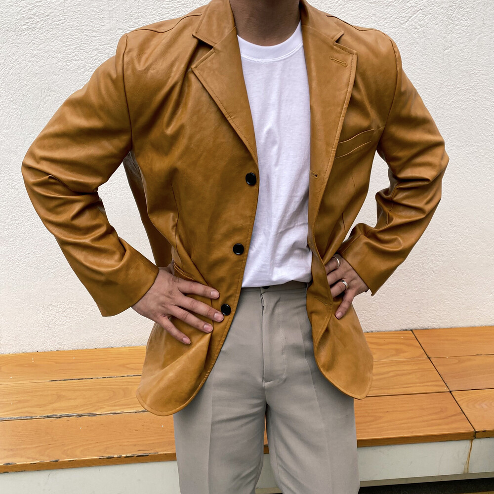 봄,가을, 겨울 까지 삼계절에 모두 어울어져 멋내기 좋은 가죽 블레이져 자켓입니다