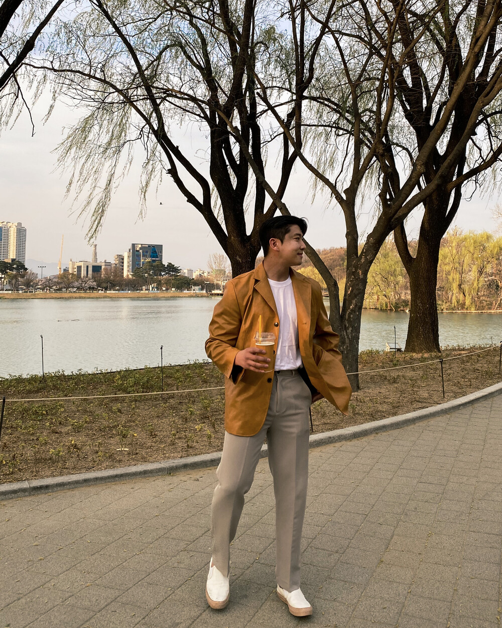 살짝 어두운 머스타드 컬러감이 라이트한 색감의 옷들과 코디했을때 포인트도 되어주며,