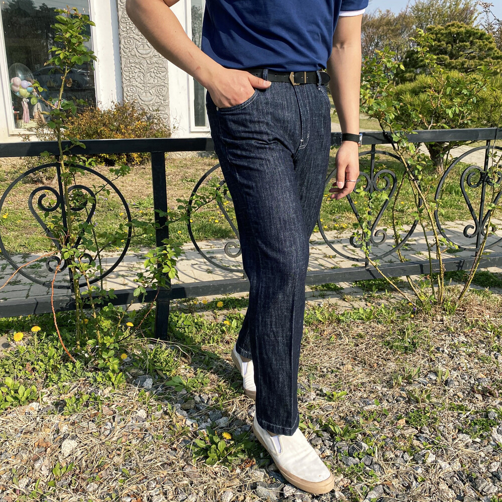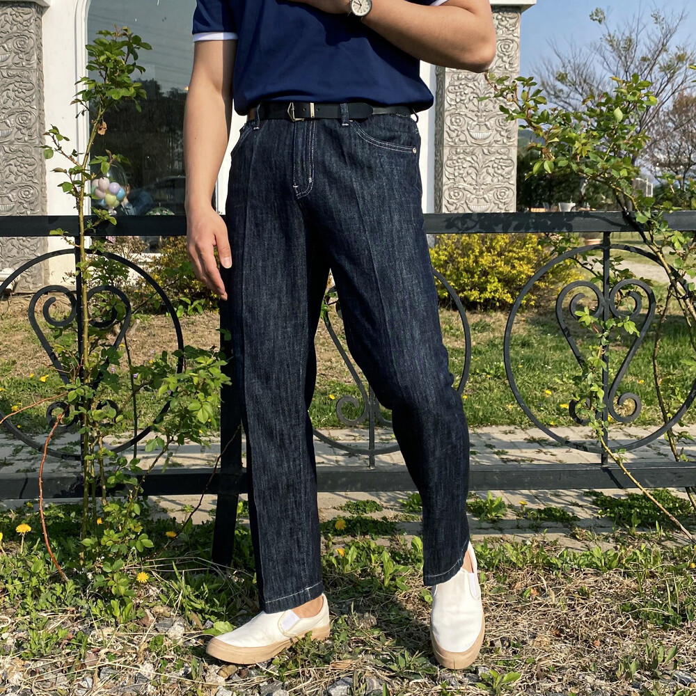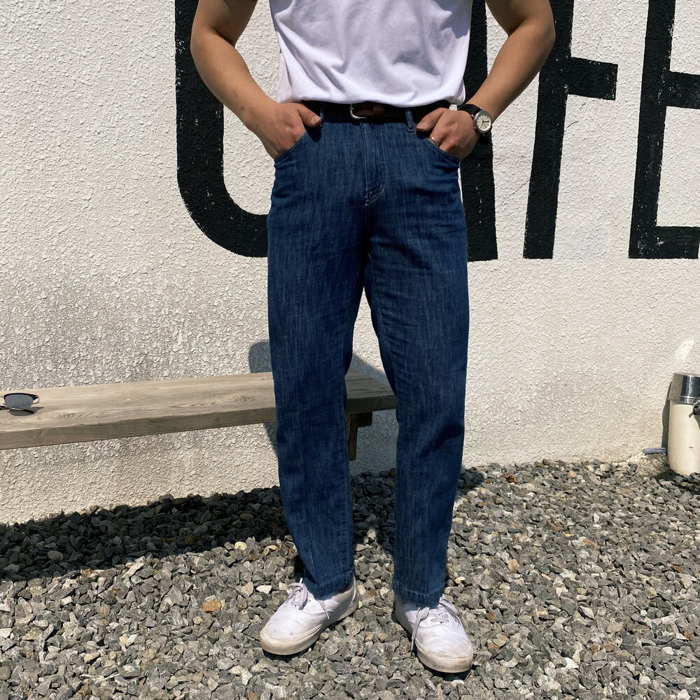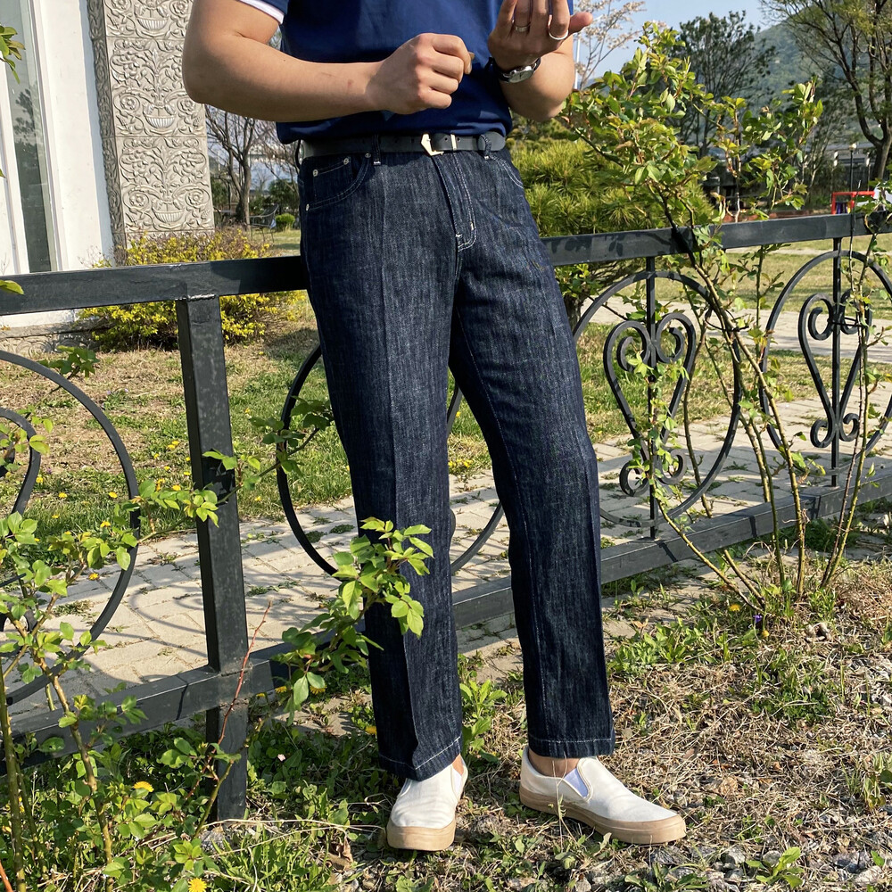 허리 반밴딩 처리되어있는 데님팬츠입니다
