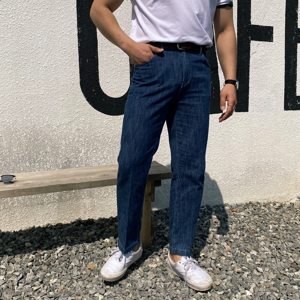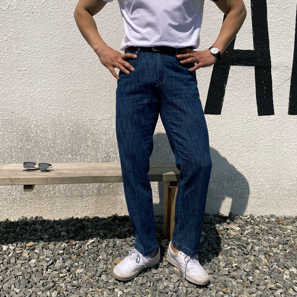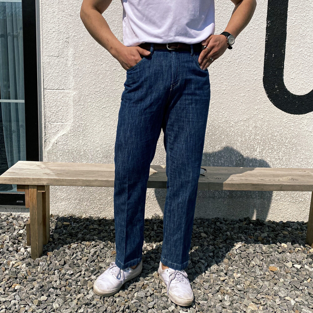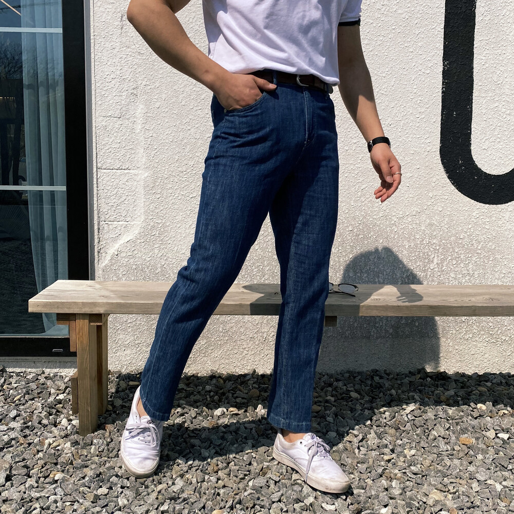 허리 반밴딩 처리되어있는 데님팬츠입니다