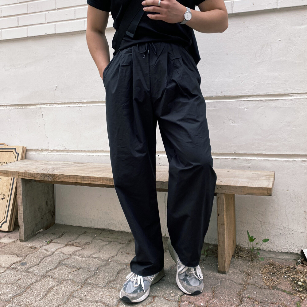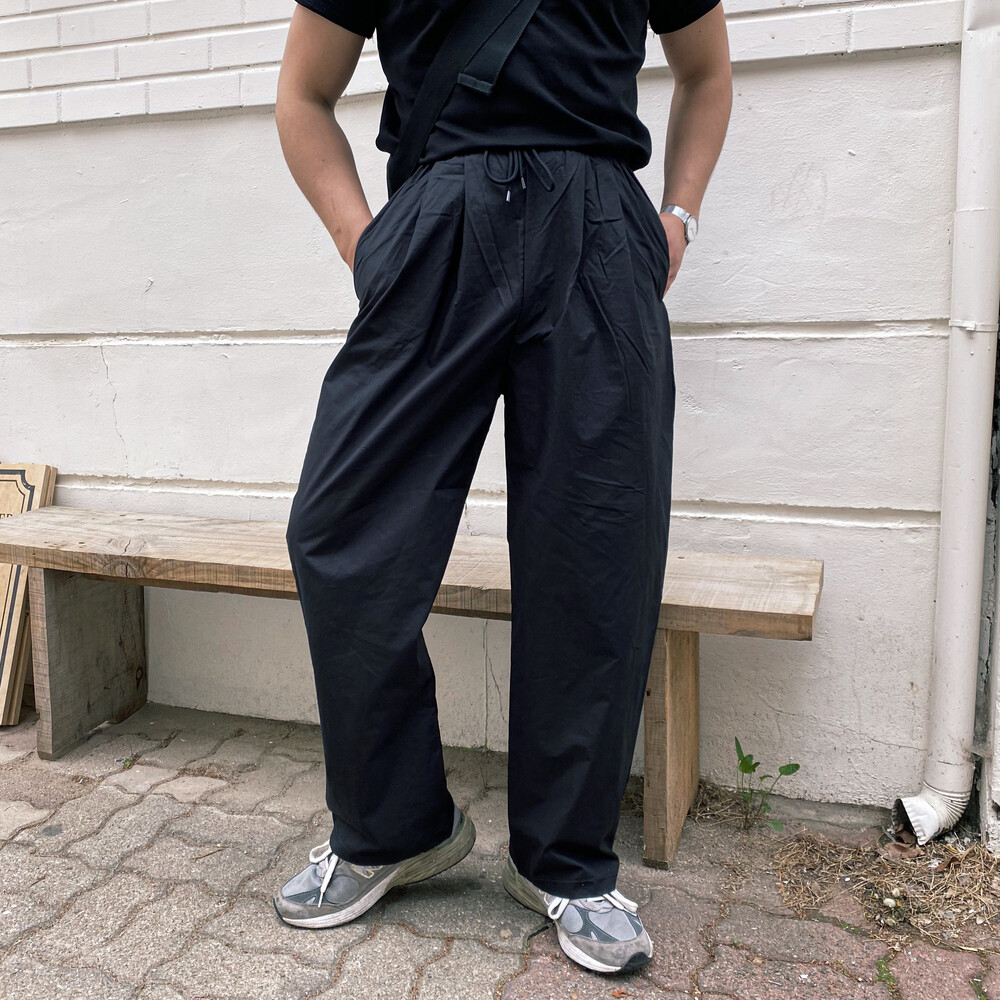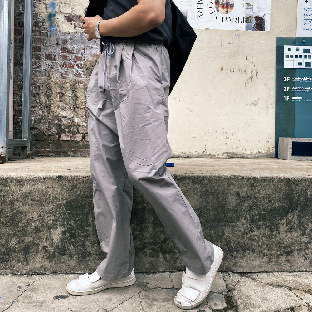전체 허리 밴딩처리 되어있으며, 끈으로 조절이 가능한 팬츠에요