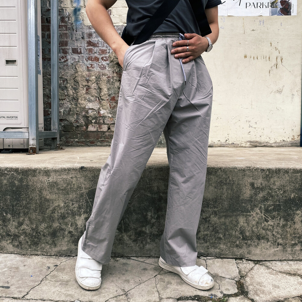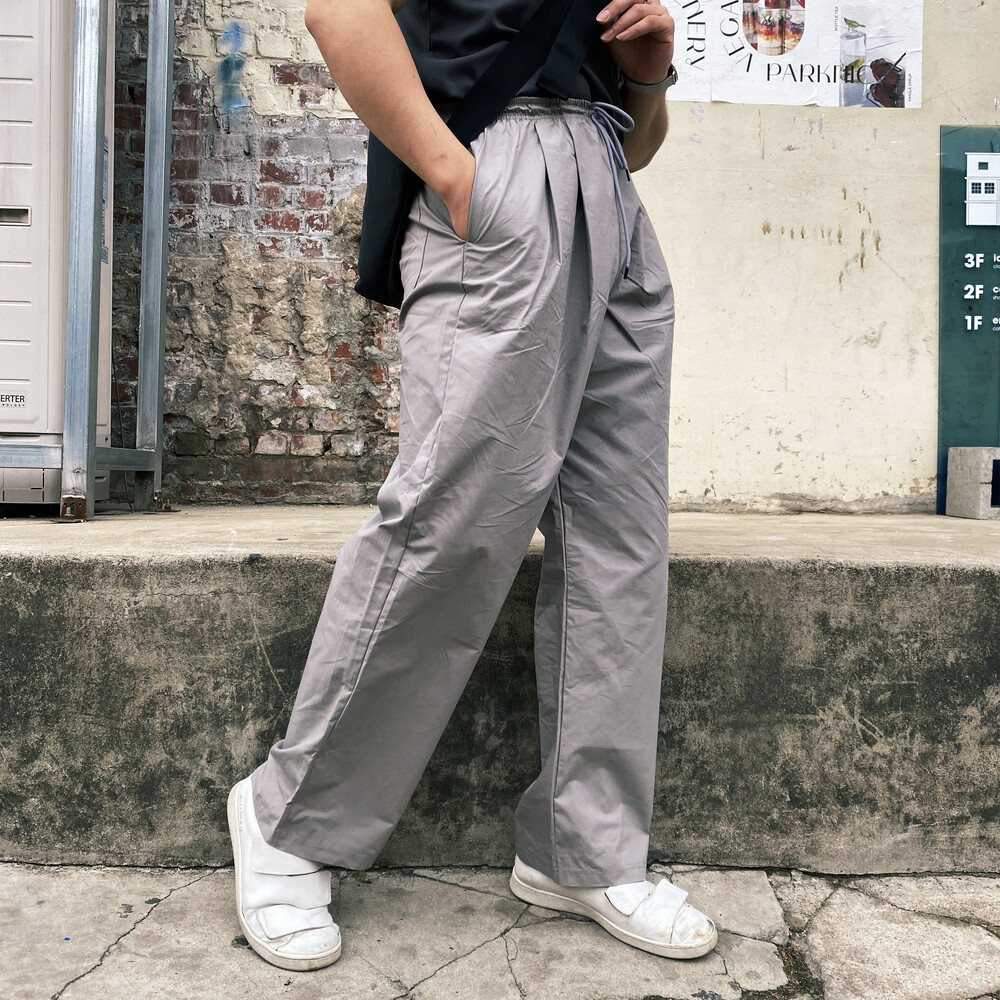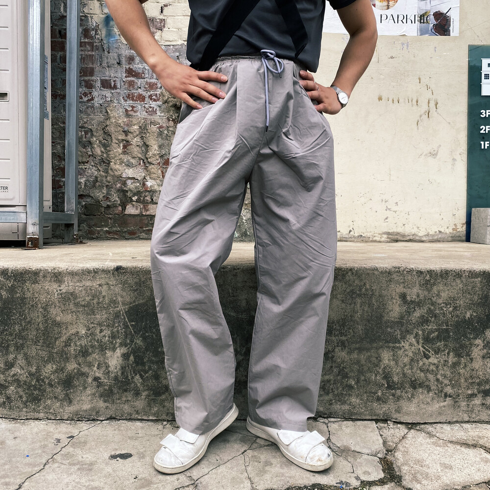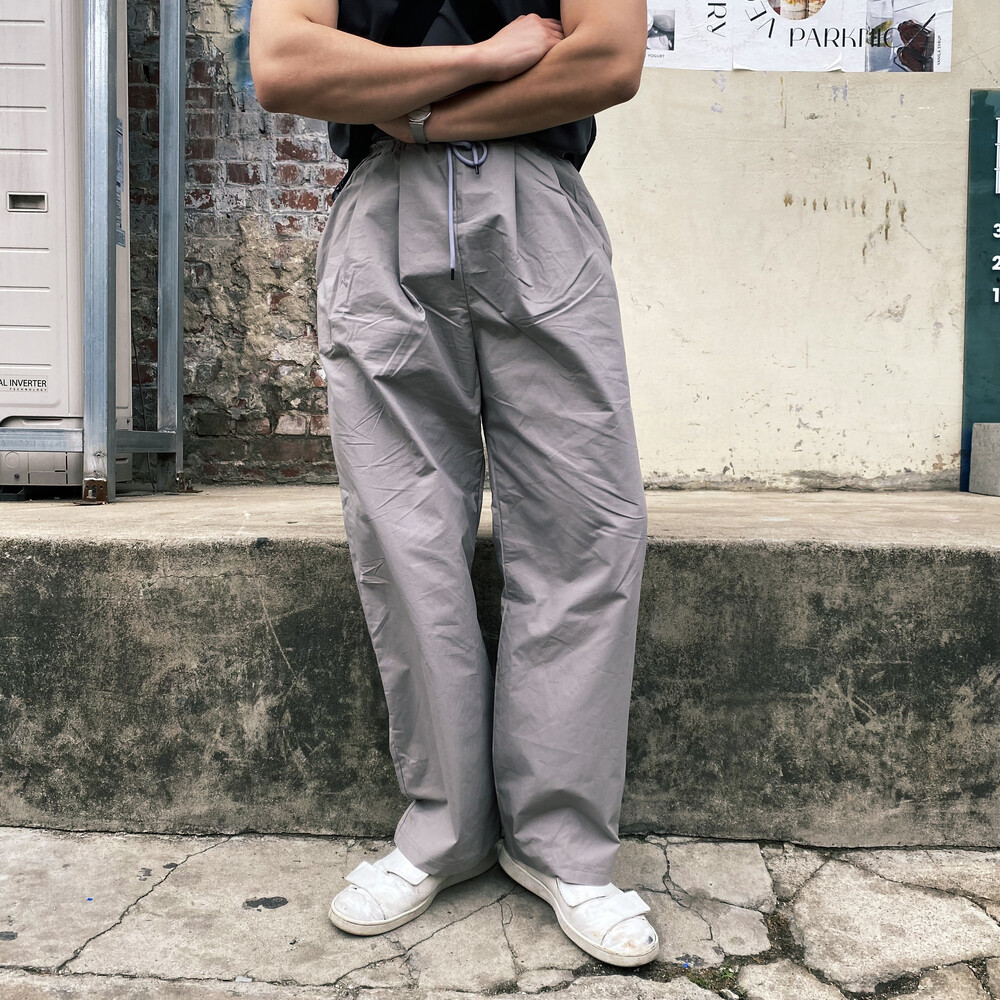 전체 허리 밴딩처리 되어있으며, 끈으로 조절이 가능한 팬츠에요