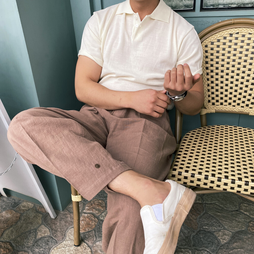[Tomtyler] Linen Button Wide PT [2color]