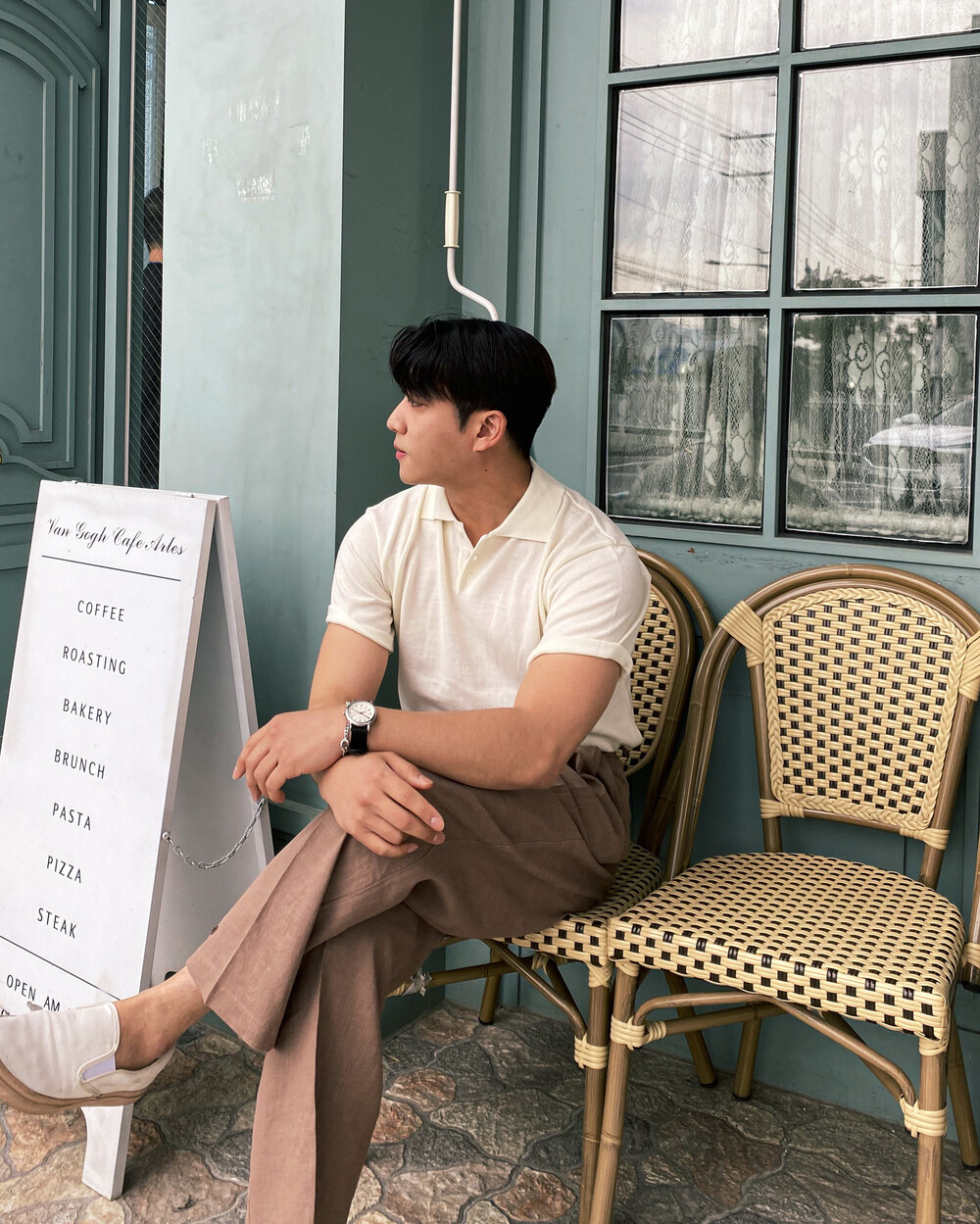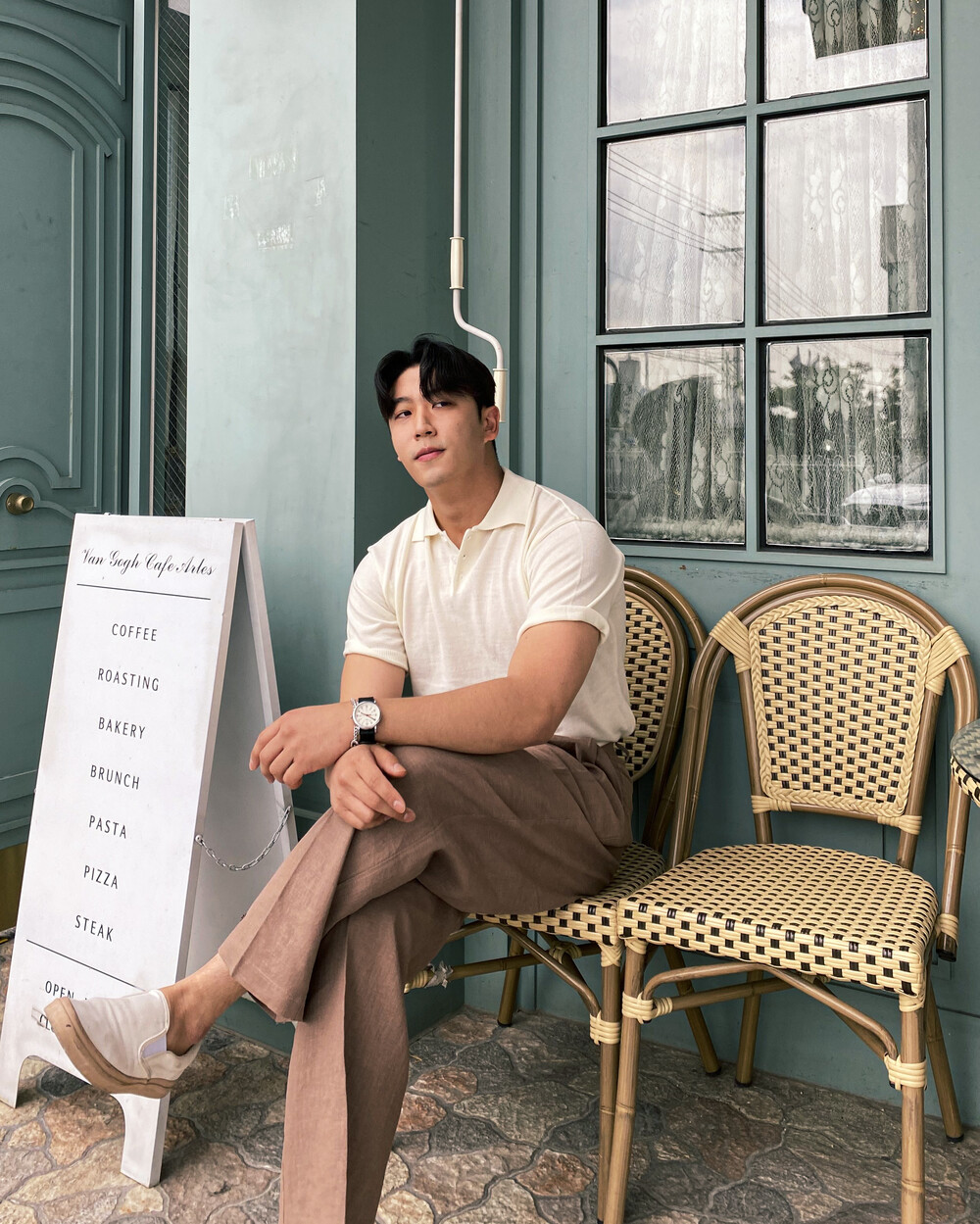 아이보리컬러는 버튼을 닫았을때, 브라운컬러는 와이드함을 연출하였습니다