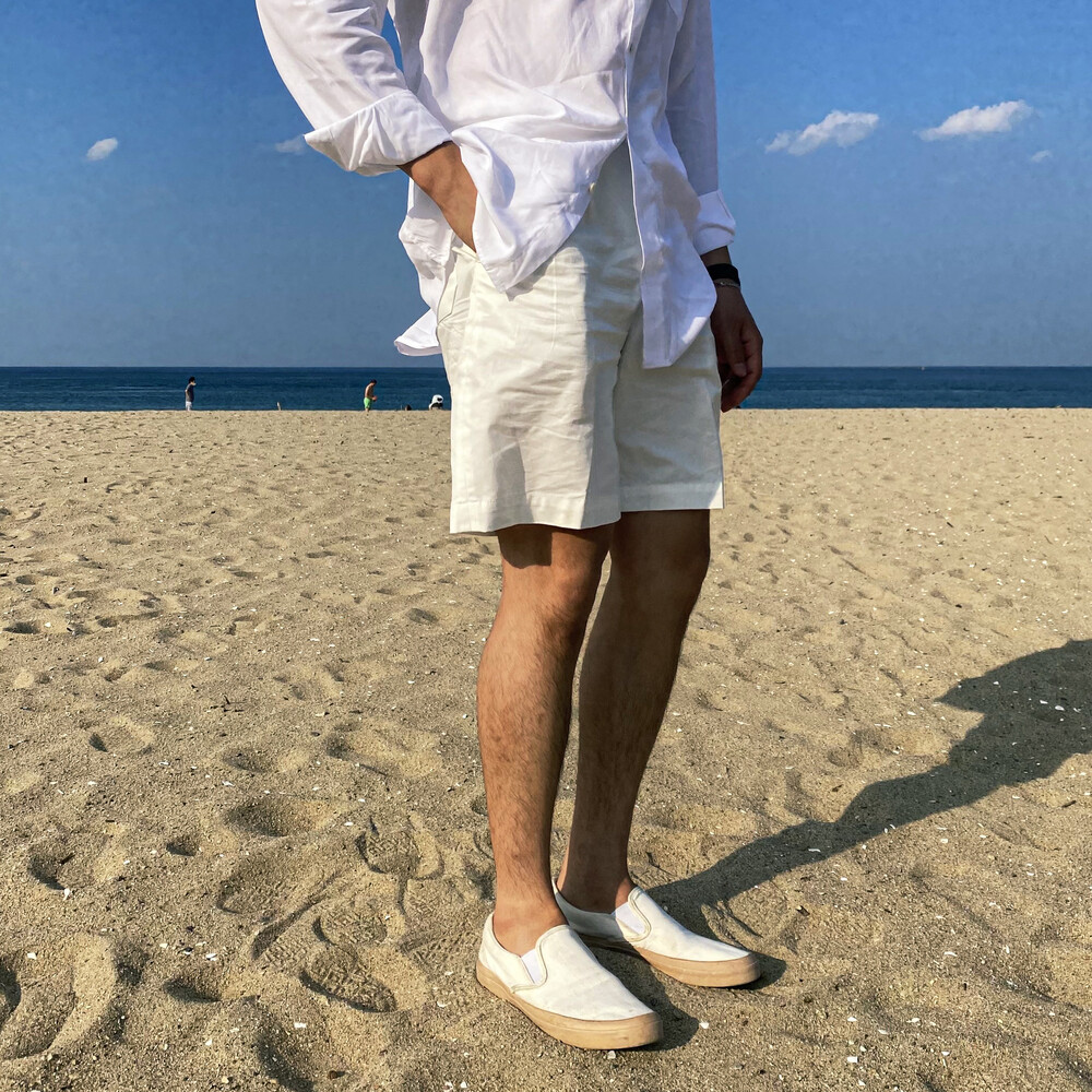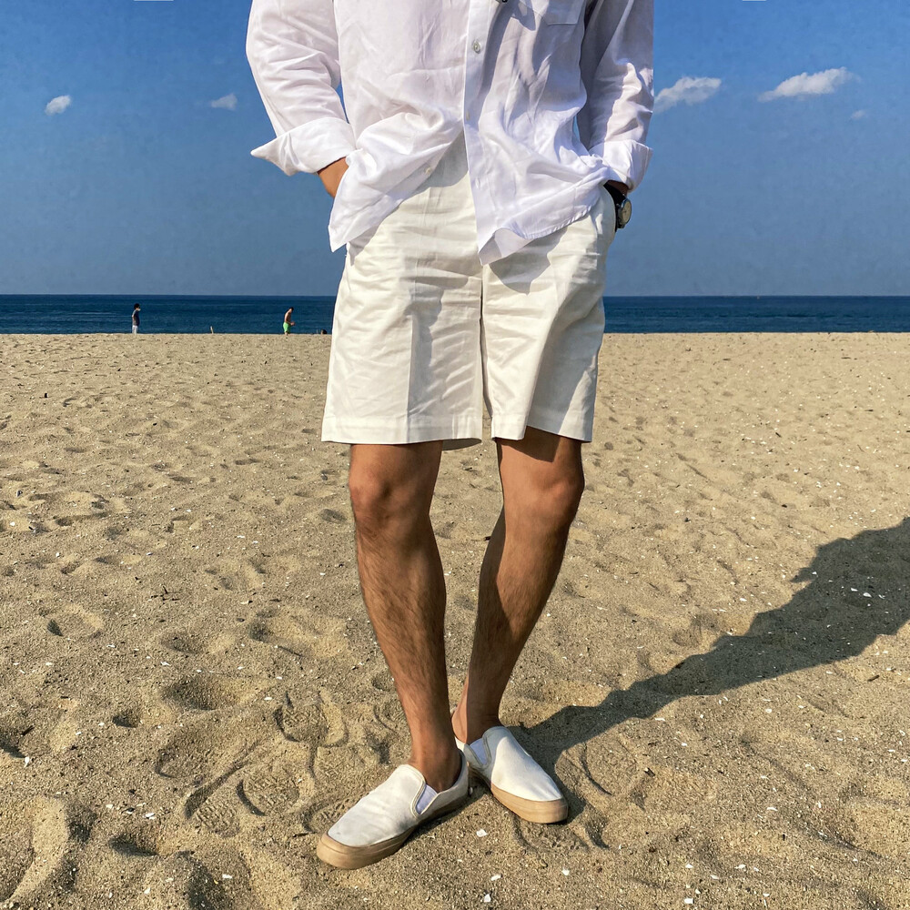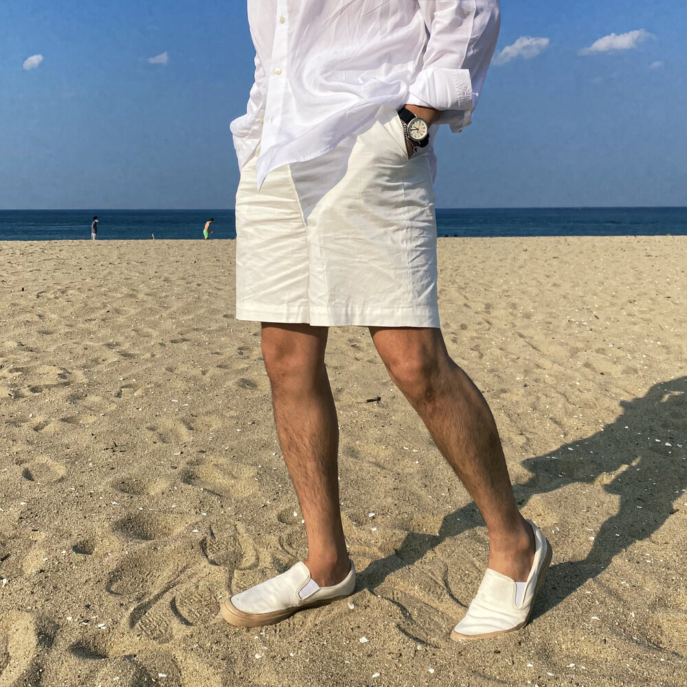 기장이 그렇게 짧은 기장이 아니라, 미니멀, 캐주얼, 클래식 모두 다양하게 연출이 가능한 제품입니다