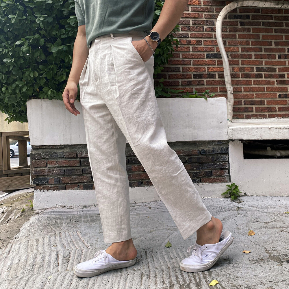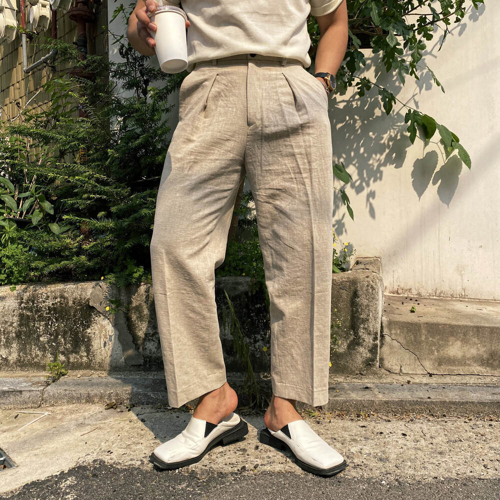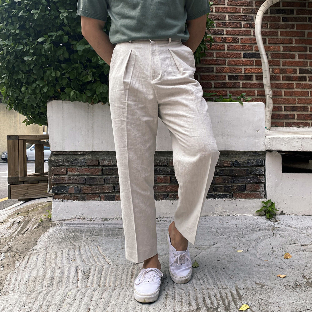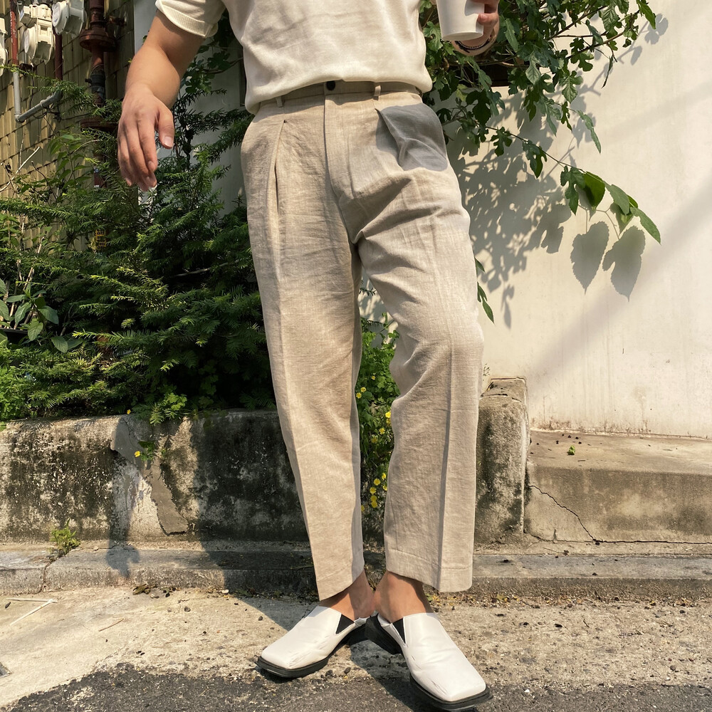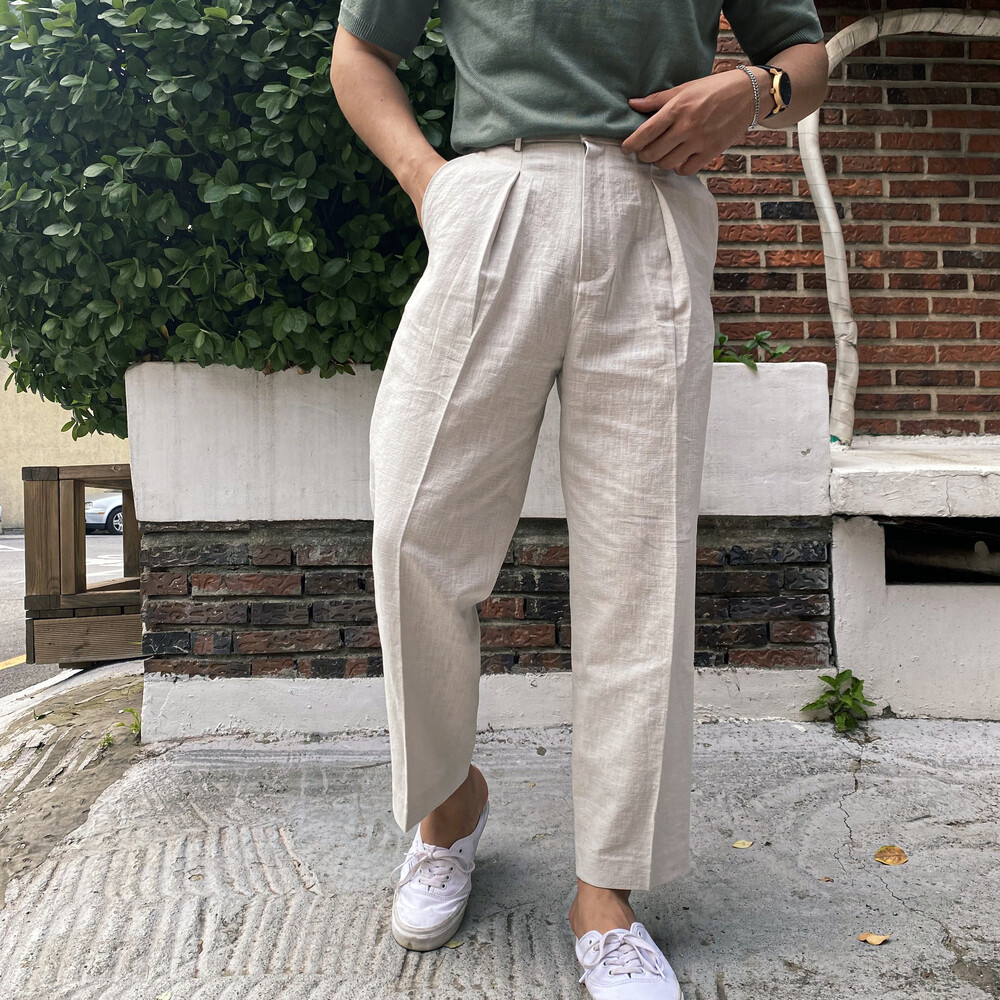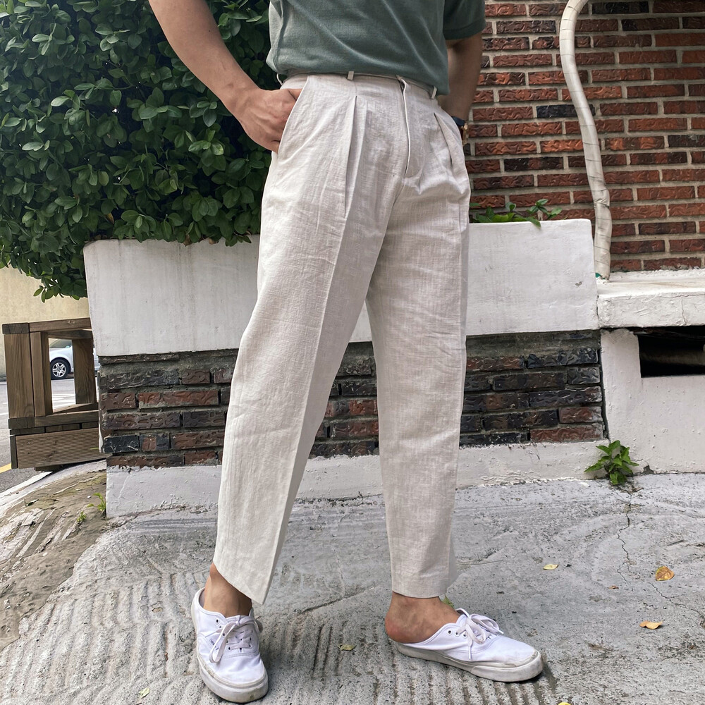 원턱으로 잡혀 발목까지 떨어지는 예쁜 핏의 린넨 슬랙스입니다