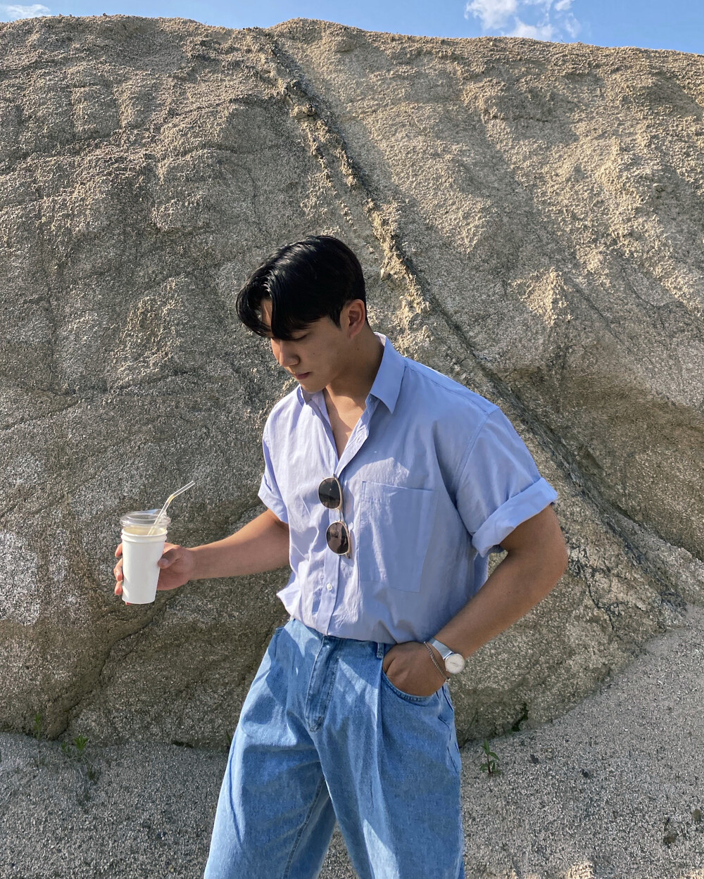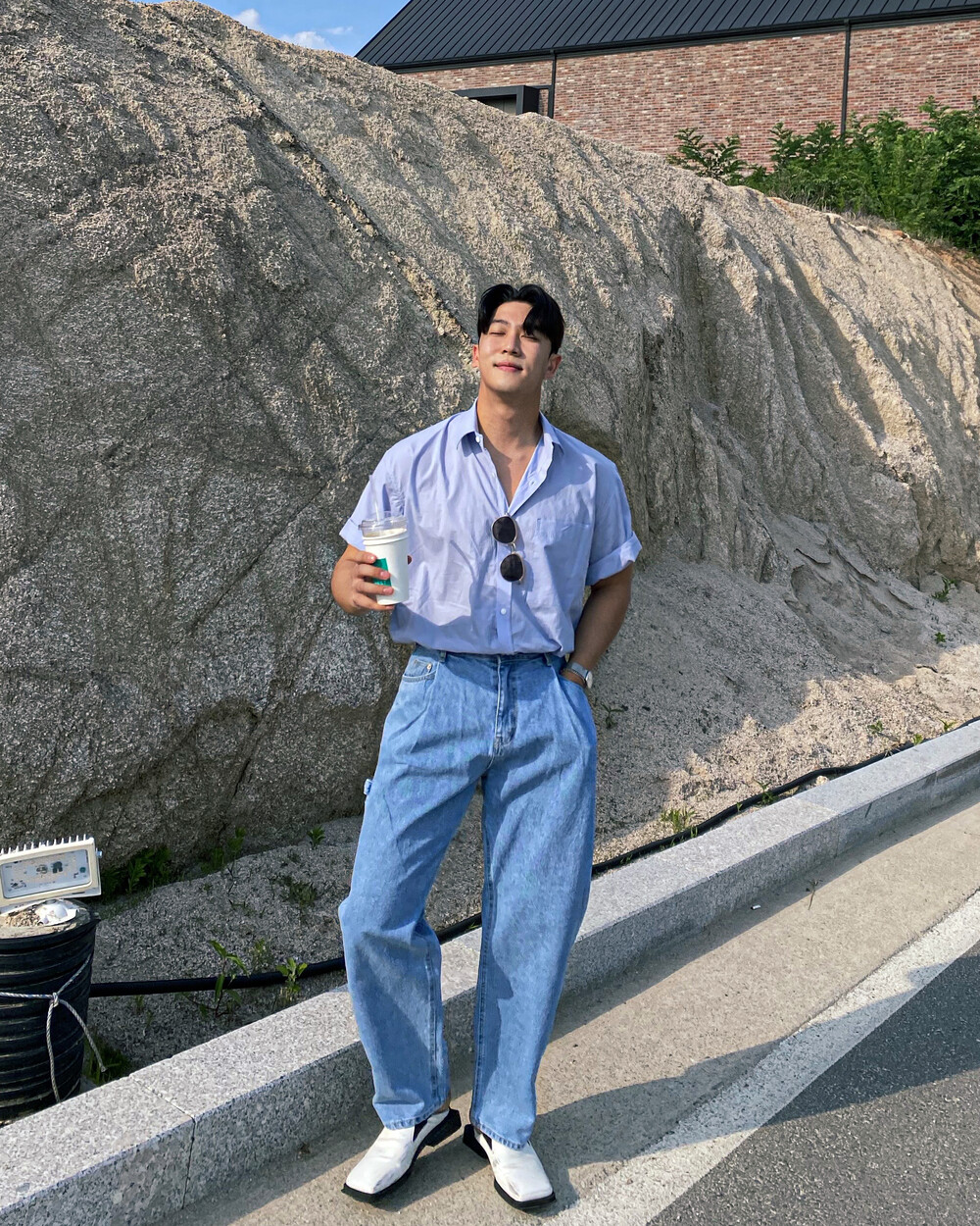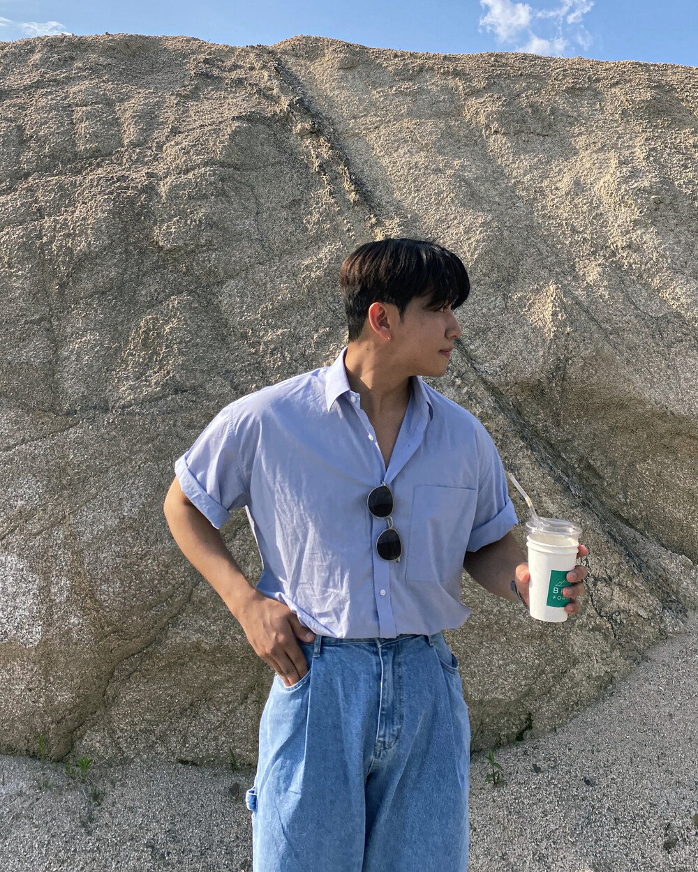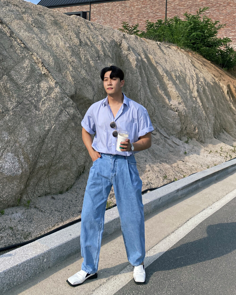 와이드핏 답게 편하지만 꾸민듯 안꾸민듯 한 느낌의 코디를 연출하기 좋은 제품이에요