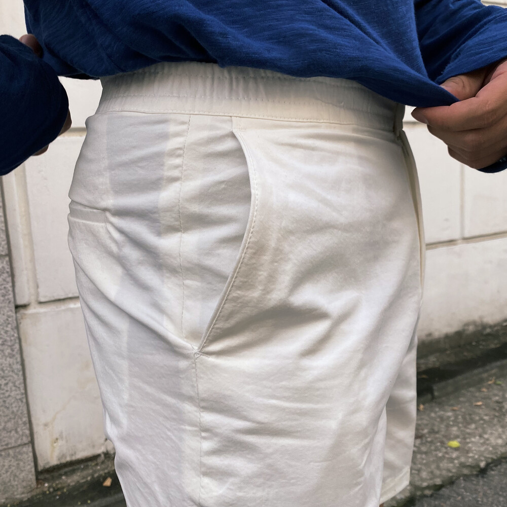 허리 전체에 밴딩이 잡혀있어서, 생활에 편리한 하프팬츠입니다