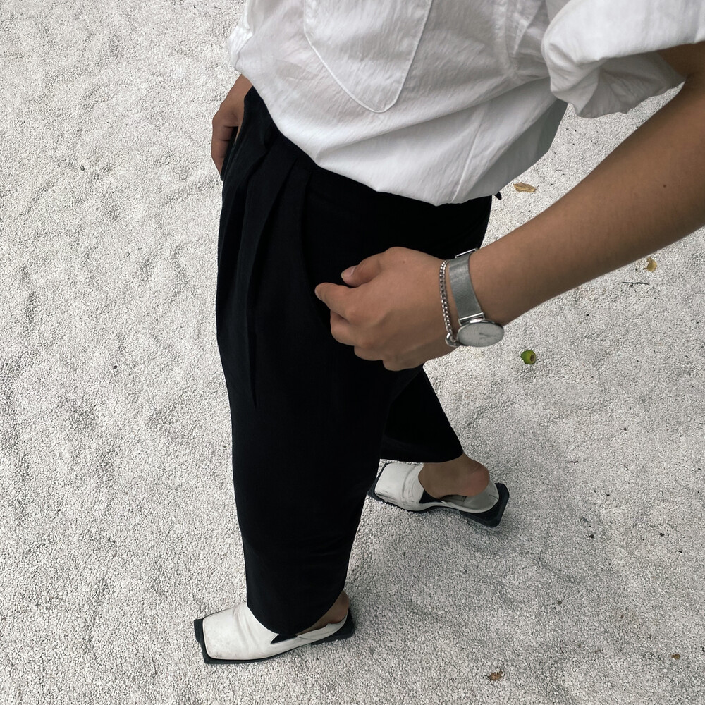 복숭아뼈 위로 떨어지는 핏이 다리를 길어보이게 해주고, 멋을 낸 것 처럼 보여주는 느낌이 들어