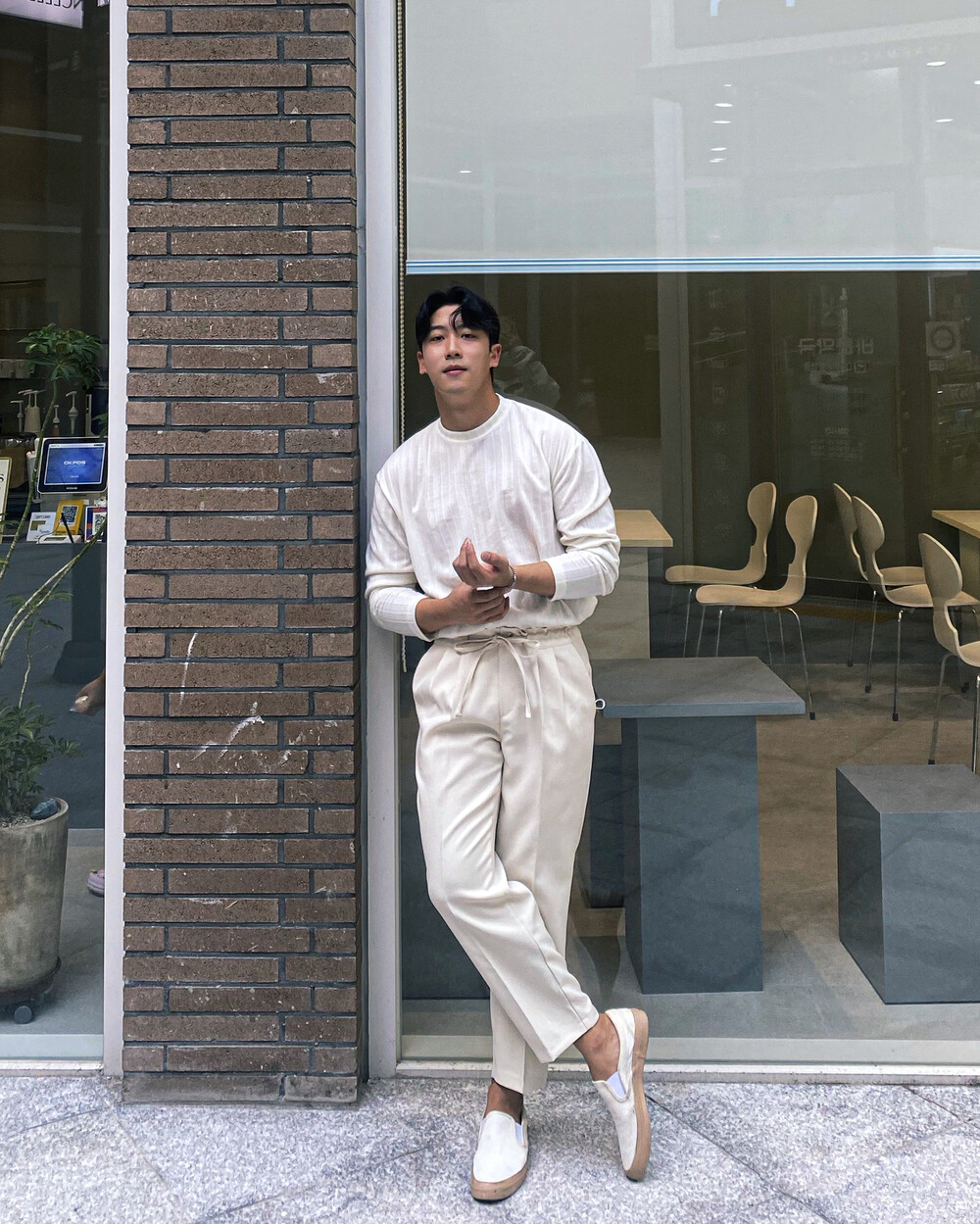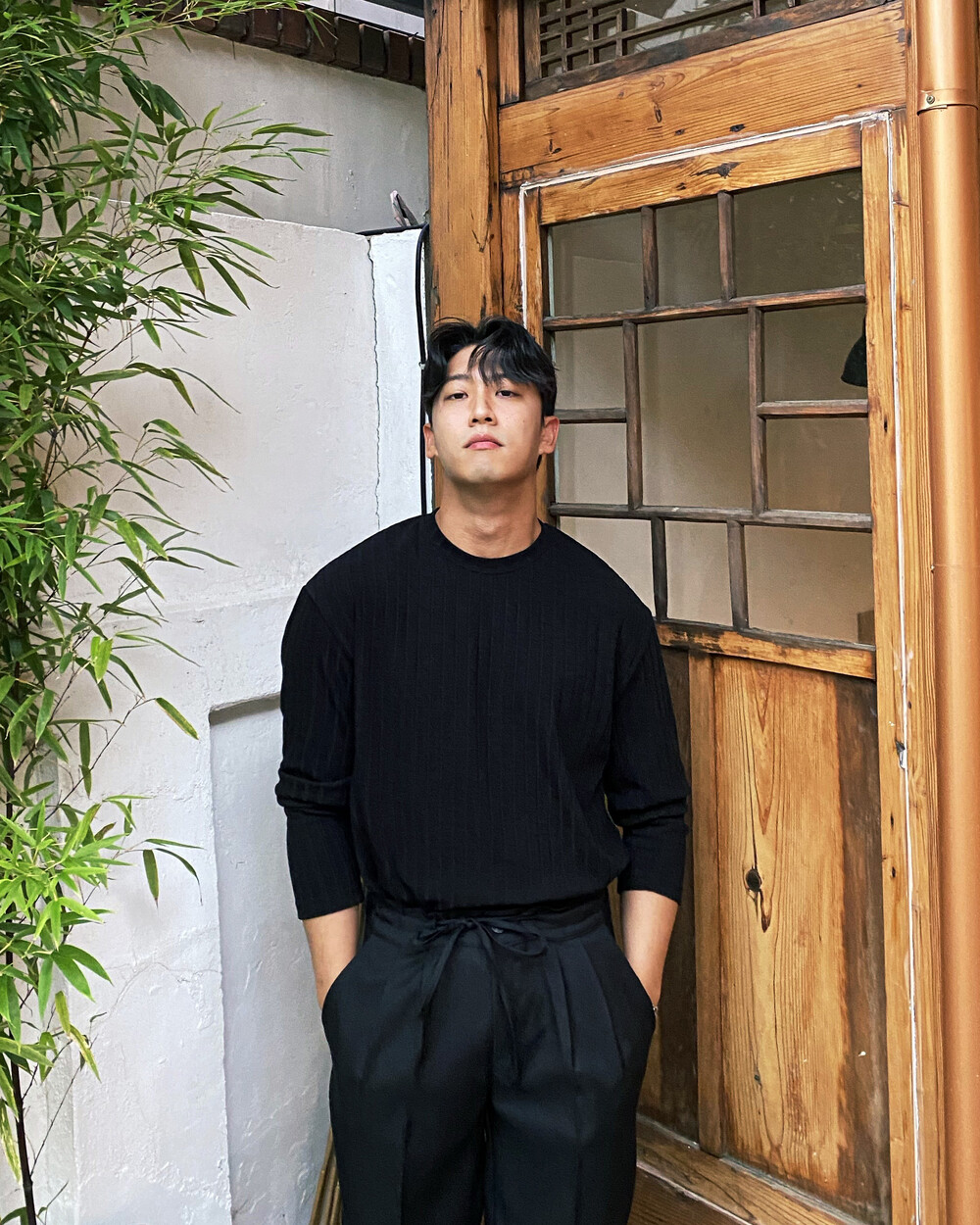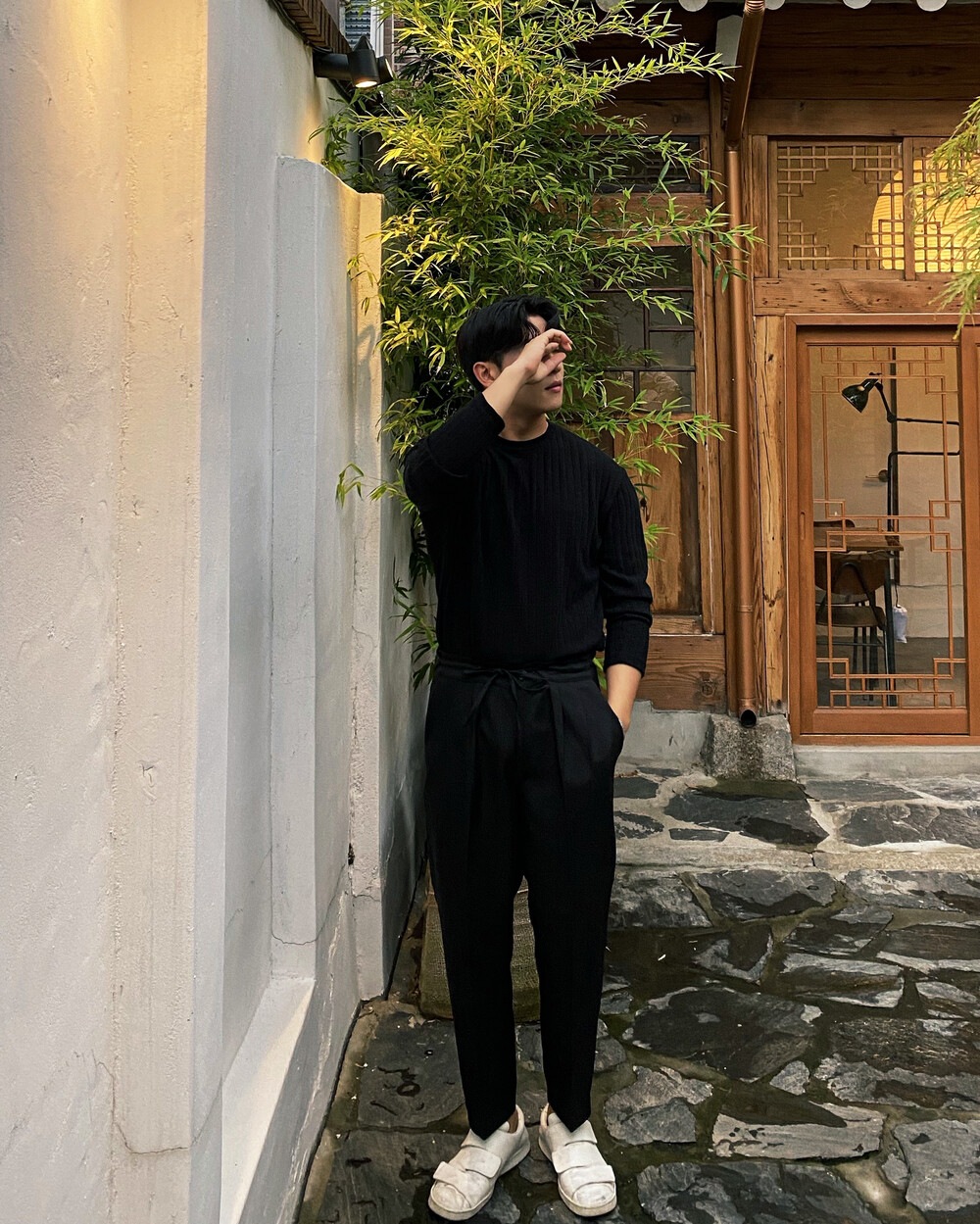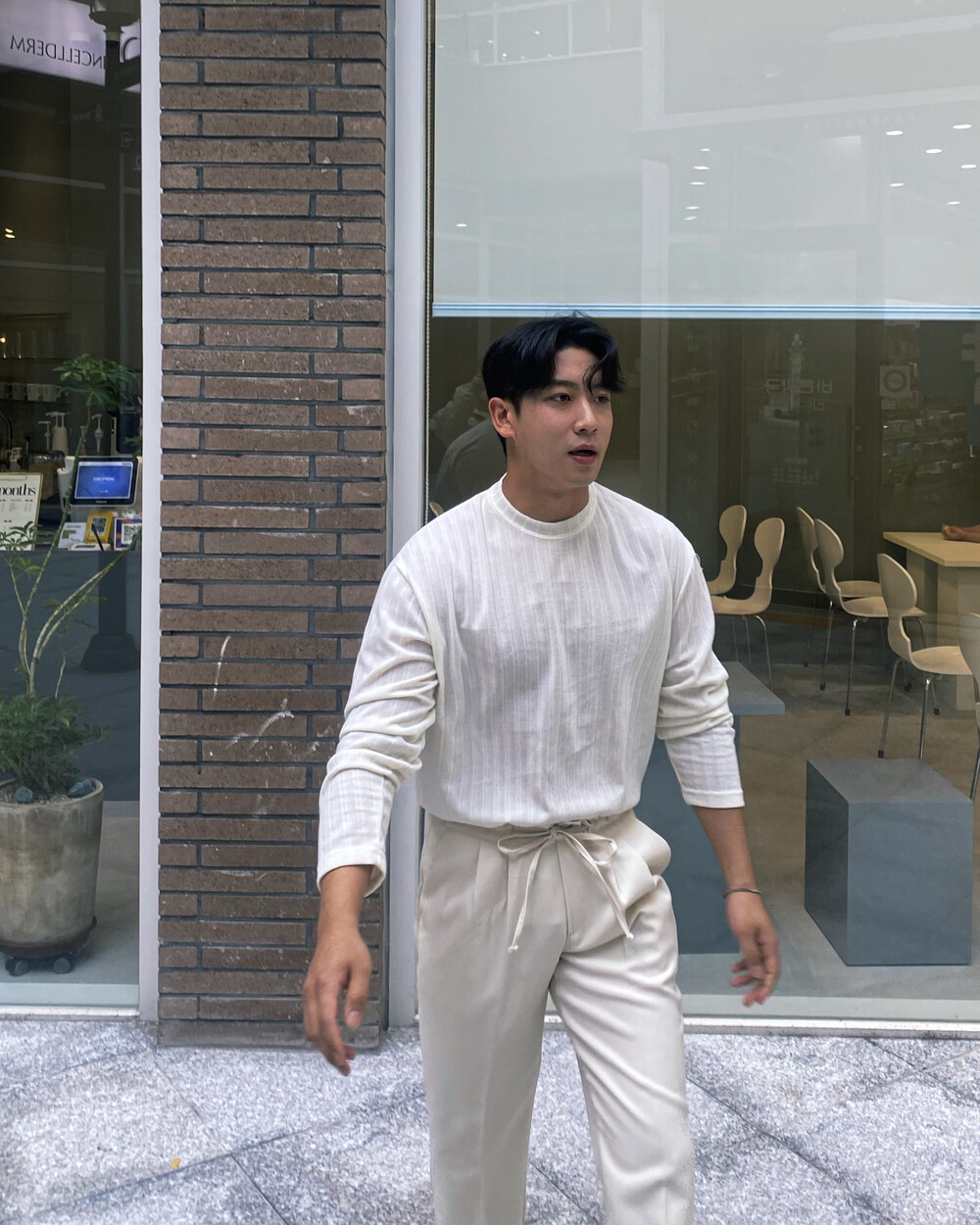 살짝 오버한 사이즈로 나와서 체격이 크신분들은 세미 느낌, 마르신분들은 오버핏으로 입기 좋은 데일리한 제품이예요