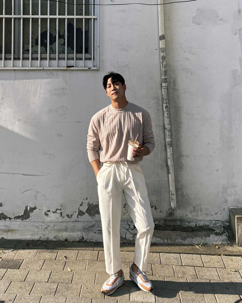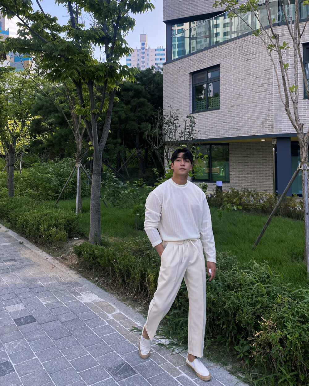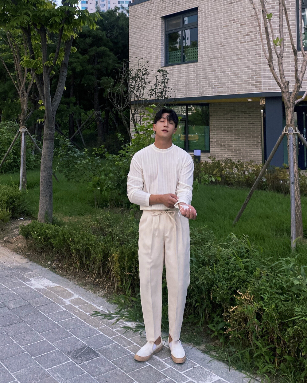 살짝 오버한 사이즈로 나와서 체격이 크신분들은 세미 느낌, 마르신분들은 오버핏으로 입기 좋은 데일리한 제품이예요