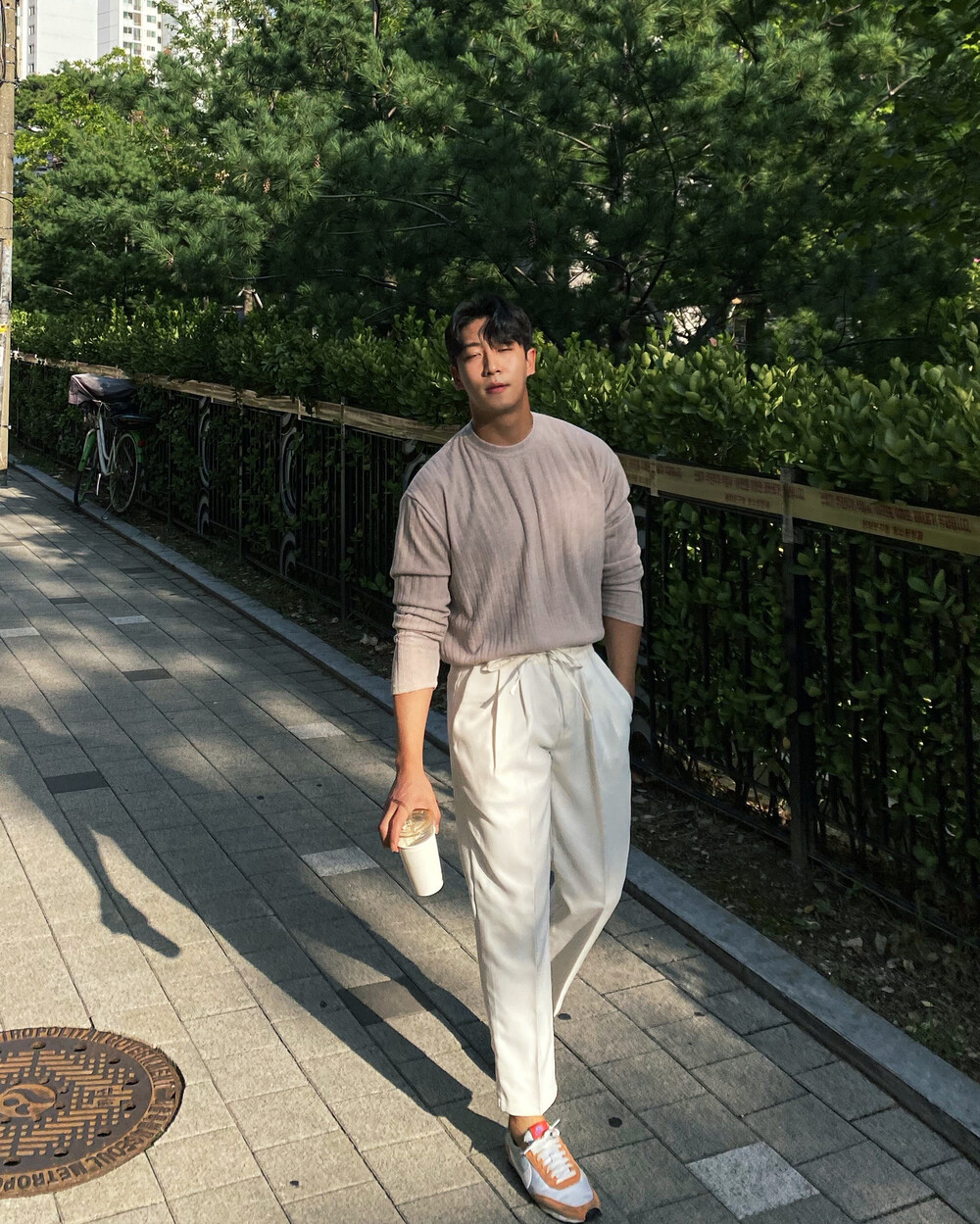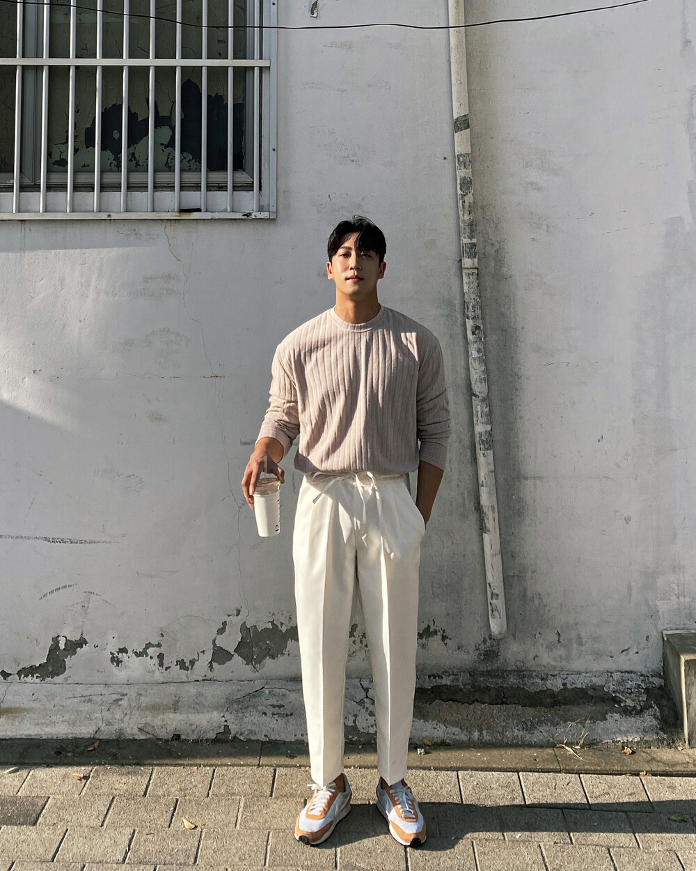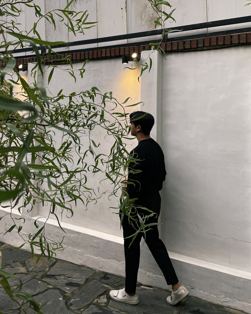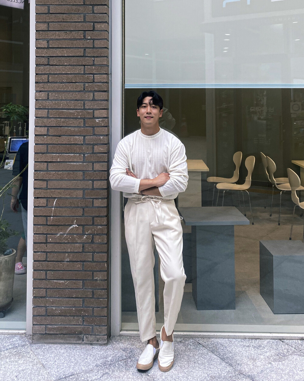 살짝 오버한 사이즈로 나와서 체격이 크신분들은 세미 느낌, 마르신분들은 오버핏으로 입기 좋은 데일리한 제품이예요