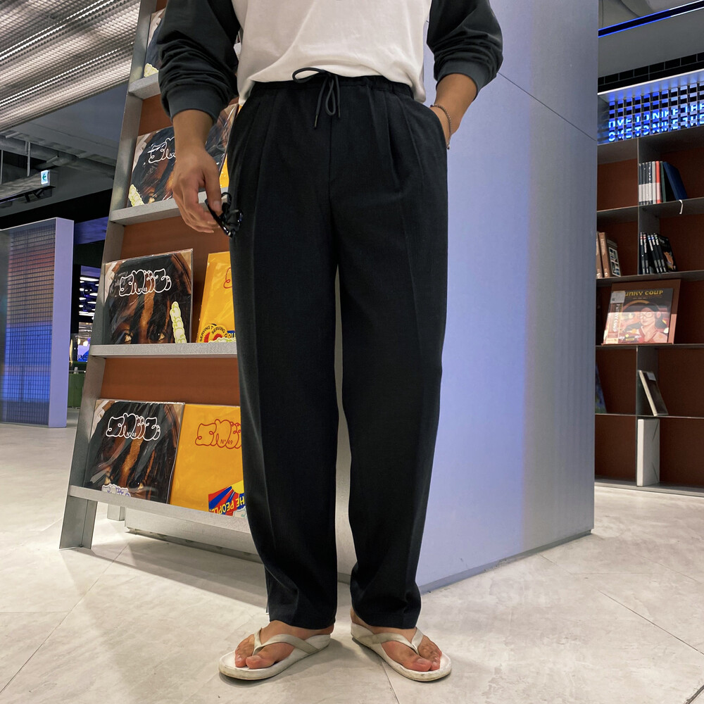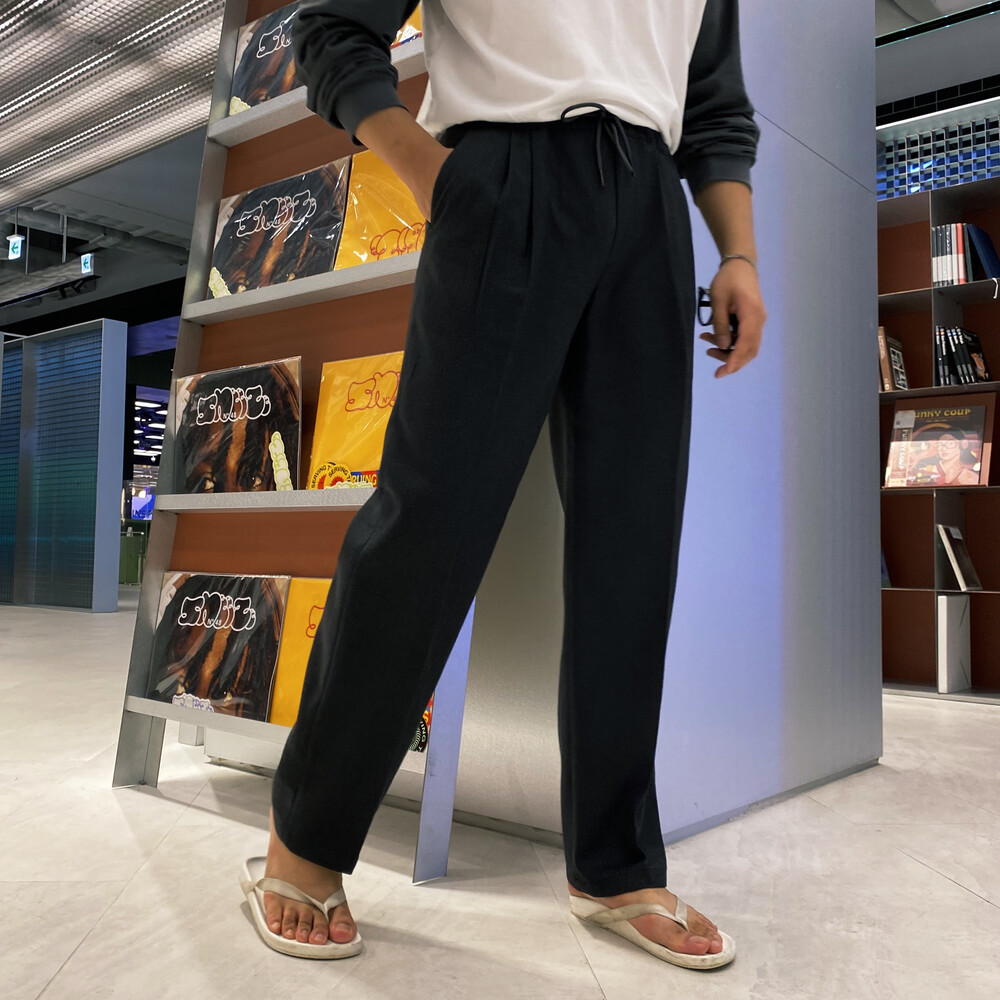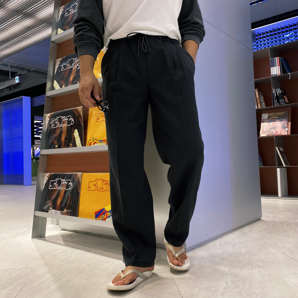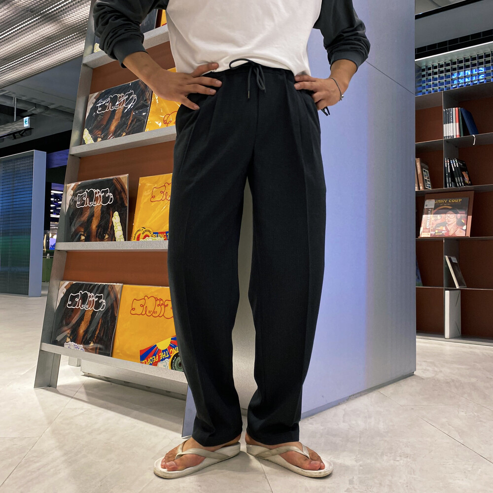 세미 오버핏 슬랙스처럼 보이지만 전체 허리 밴딩처리되어있어, 착용하기에도 편리한 팬츠입니다